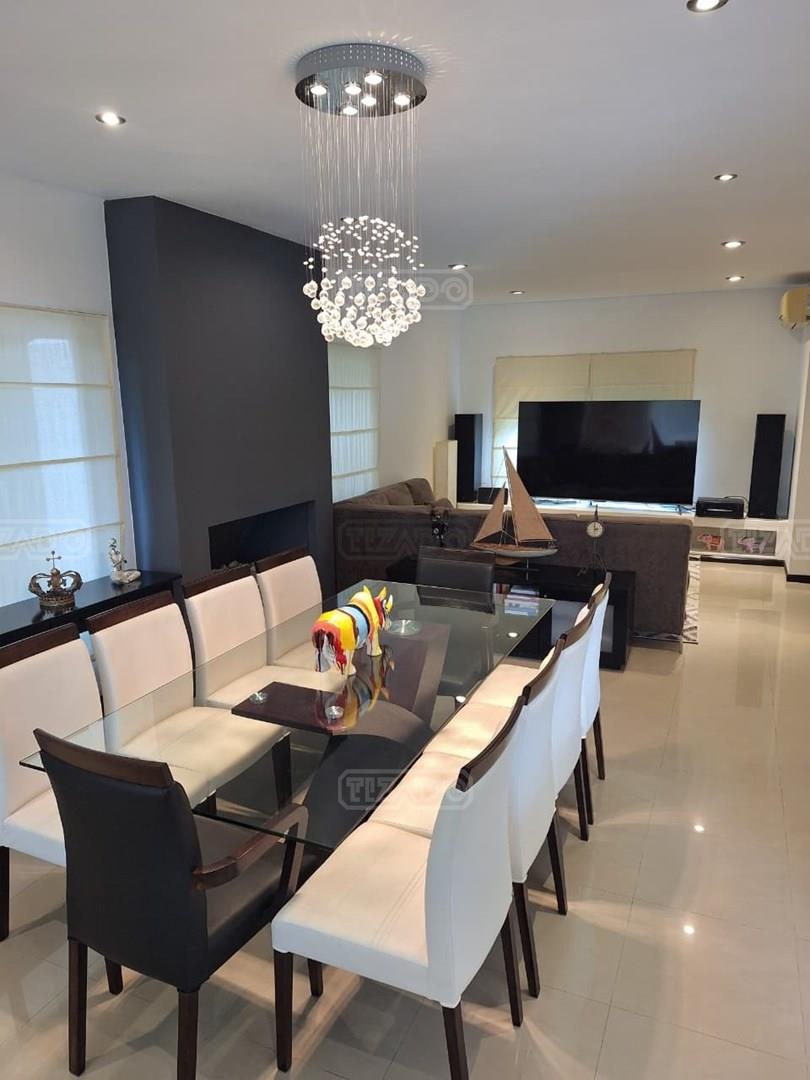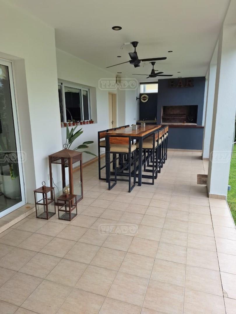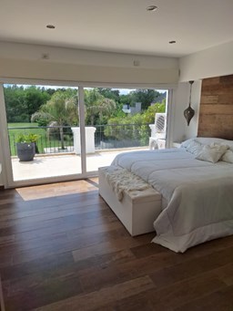 Excelente propiedad en macizo II, muy buena ubicacion dentro del barrio a pocos metros de sector golf. Hall distribuidor doble circulacion. Placard de recepcion, GYM / escritorio. Baño completo. Cocina con isla y comedor diario integrado con vistas al parque y galeria. Living comedor con hogar. Despensa o dependencia, baño completo y lavadero. Playroom o 5to dormitorio con vista al frente. En la planta alta cuenta con 4 comodos dormitorios. uno de ellos en suite con vestidor y baño, los otros 3 con placard. Baño completo. Galeria amplia con casi 20 metros de largo con parrilla y living abierto. Calidad de construccion, y detalles de categoria, DVH, piso flotante y porcelanato, Calefaccion por radiadores y AA. *OPCION SEGUNDO LOTE ADJUNTO AL FONDO SIN UNIFICAR* Precio con lote adjunto u$s 425.000 *Las medidas, metrajes y antigüedad consignados en esta ficha son aproximados*