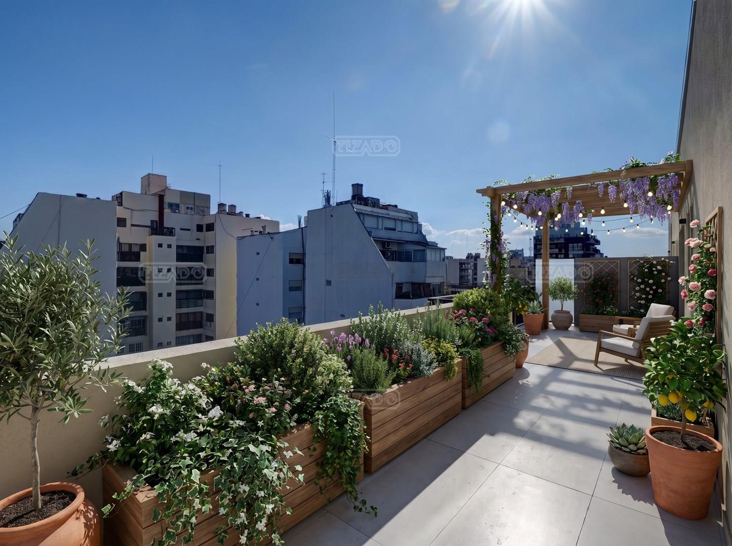- Terraza: 45 m2 rodea todo el departamento