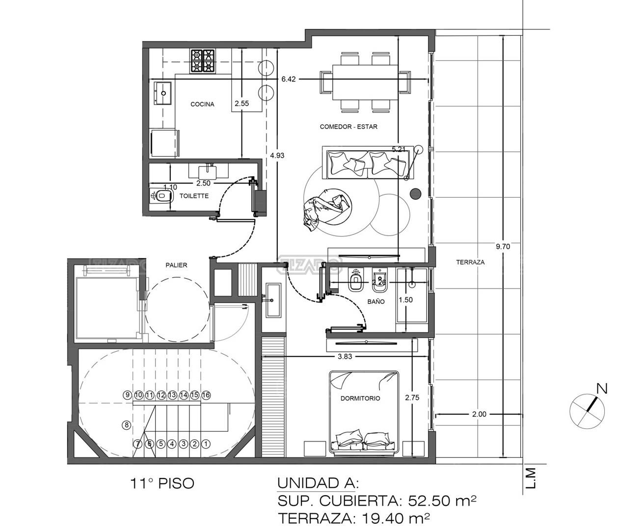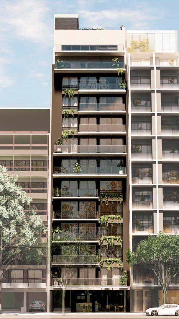 POSESION JULIO DE 2027 CIUDAD DE LA PAZ 2476 25 UNIDADES EN 13 PISOS DE DISEÑO EN EL CORAZÓN DE BELGRANO UBICACIÓN PREFERENCIAL El edificio se ubica en el núcleo central del barrio de Belgrano, un clásico en Buenos Aires. Posee los mejores accesos al transporte público del país, a una cuadra de Av. Cabildo y a media de Av. Monroe. Tiene rápidos accesos en transporte privado hacia el norte y centro de la ciudad. UNIDADES CON EL MEJOR RENDIMIENTO INMOBILIARIO Máxima liquidez + máximo flujo. Esta unidad cuenta con un dormitorio en SUITE, con amplio placard, toilette de recepción y lo mas lindo es la gran terraza propia que tiene con mucha luz y vista, el corazón de Belgrano con amenities. A la vez, en caso de propietarios que no residan en el edificio, las unidades son óptimas para Airbnb por ubicación, prestaciones y tamaño. Todo el edificio poseerá acceso electrónico, tanto en acceso de PB como en unidades funcionales. DISEÑO DE PRIMER NIVEL Diseño innovador con balcones desfazados de vidrio. Semipisos corridos al frente y contrafrente, con excelentes vistas y luz natural. Increible rooftop con parrilla, solarium y piscina TERMINACIONES: FACHADAS Y ALBAÑILERIA La estructura se resolverá con hormigón armado. La fachada tendrá terminaciones con revestimiento tipo tarquini. Los muros perimetrales de las unidades serán de hormigón o mampostería de ladrillo según corresponda, y las paredes interiores de cada unidad funcional serán de mampostería o placa de yeso, revestidas con pintura de obra color blanco. CARPINTERIAS Se utilizarán carpinterías exteriores de PVC negro Rehau Euro Design o similar, o de Aluminio Aluar, a definir con doble vidrio. Para puertas de acceso a unidades se utilizarán hojas tipo placa con enchapado y marcos de chapa doblada para pintar, y para puertas interiores, se utilizarán marcos de chapa doblada y hojas placa de MDF para pintar. Para escaleras de incendio y espacios protegidos se utilizara puertas metálicas F60. Para salas de máquinas se utilizarán puertas metálicas de doble contacto y con ventilaciones si se requiriese. ASCENSOR Tendrá cabina de acero inoxidable y vidrio, puertas automáticas y todos los requerimientos de la norma vigente. SOLADOS Las unidades funcionales contarán con madera prefinished, piso flotante, o piso vinilico simil madera. Las zonas húmedas y balcones contarán con porcelanato Vite Calacata mate 60x60 o similar. La piscina tendrá interior revestido en venecitas o similar. CIELORRASOS Zonas púbicas: cielorraso aplicado de yeso. Dormitorios: cielorraso aplicado de yeso. Baños y Cocinas: hormigón visto o cielorraso suspendido de yeso. ARTEFACTOS SANITARIOS Inodoro largo - Roca The Gap blanco brillante o similar. Bidet 1 agujero europeo - Roca The Gap blanco brillante o similar. Pileta de cocina Johnson Zn52/18a o similar. Bacha ceramica de apoyo - Piazza a082 blanco brillante o similar. GRIFERÍAS Juego monocomando para ducha Hidromet Storm 4805 cromado o similar. Monocomando para lavatorio Hidromet Storm 4815 cromado o similar. Monocomando para bidet importado 11002 o similar. Monocomando para cocina Hidromet 6370 Jockey recto o similar. MESADAS Y MUEBLES Mesada de granito 18mm negro Boreal o similar. Muebles bajo mesada y alacena de aglomerado enchapado en melamina blanco everest. INSTALACIONES La provisión de agua caliente será por medio de termotanques centrales de alta recuperación que alimentarán cada unidad funcional. Las unidades se entregarán con tablero seccional provisto de llaves térmicas y disyuntor diferencial. En las unidades no se proveerán ni instalarán artefactos de iluminación. El 100% del funcionamiento de las unidades será eléctrico, no contemplándose instalación de gas. Cada unidad funcional tendrá instalación para aire acondicionado tipo split en living-comedor y dormitorios.