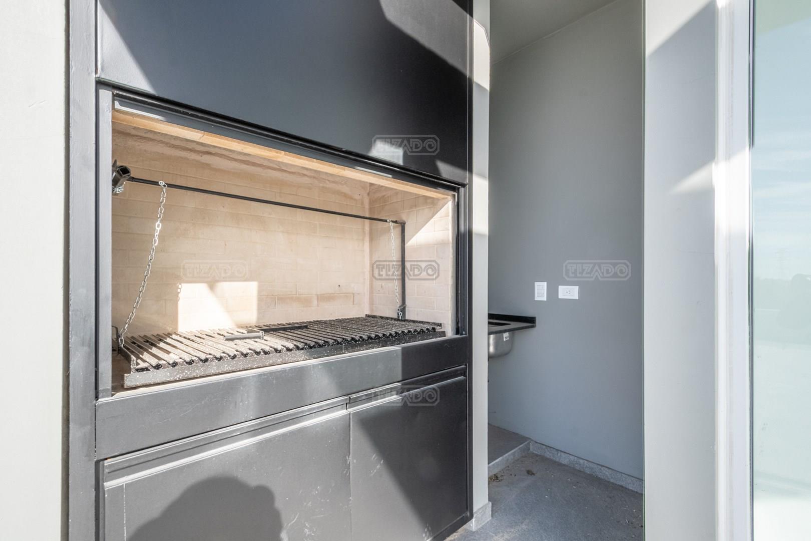 - Balcón: aterrazado en L con parrilla