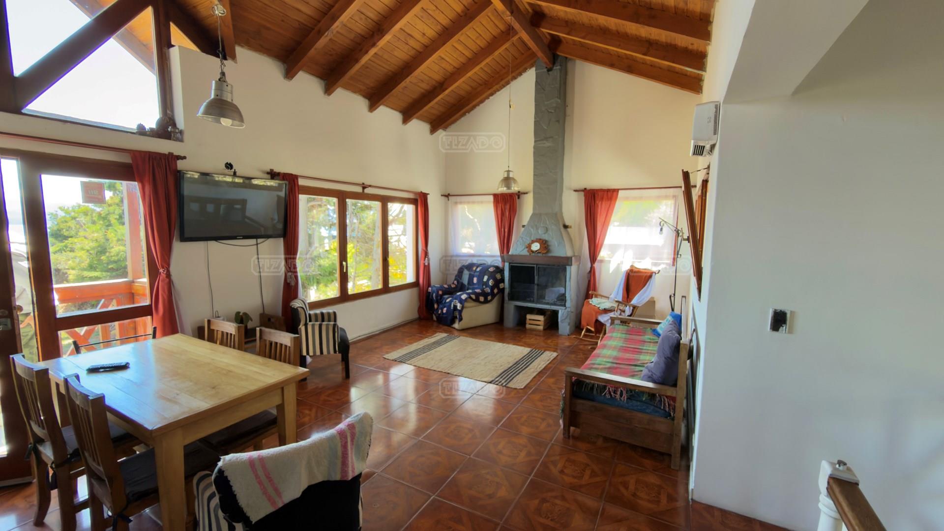 Casa en alquiler permanente – Barrio Costa del Sol, Bariloche Modesta Victoria 5830 Ubicada en un barrio residencial esta casa es ideal para quienes buscan vivir cómodos, a pocos minutos del centro. Construida sobre un lote de 1.200 m², cuenta con estacionamiento semicubierto y un parque totalmente aprovechable. En planta baja dispone de tres dormitorios, dos de ellos con vestidor y baño en suite. En planta alta, un luminoso living comedor con hogar a leña, toilette, cocina con barra desayunadora, lavadero y una galería semicubierta con vistas al Lago Nahuel Huapi. La casa cuenta con todos los servicios (luz, gas, agua, internet y cable) y calefacción por tiro balanceado. Ideal para familias que buscan un hogar confortable en uno de los barrios más lindos de Bariloche. Ni Tizado Propiedades (M&G Inmuebles Patagonia SRL), ni el Martillero a cargo son responsables de los indicadores urbanísticos, factibilidades de construcción, ni usos permitidos sobre el inmueble objeto del presente. Corredor y Martillero Matriculado: Sebastián Caretta - Matricula N.333-RP-20 F.412 T.Il