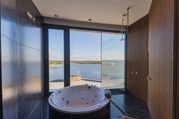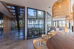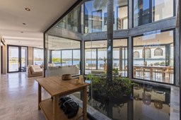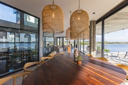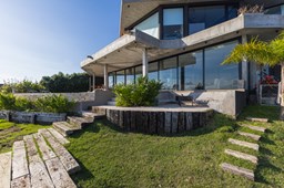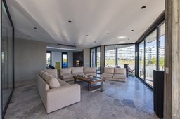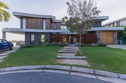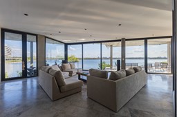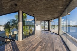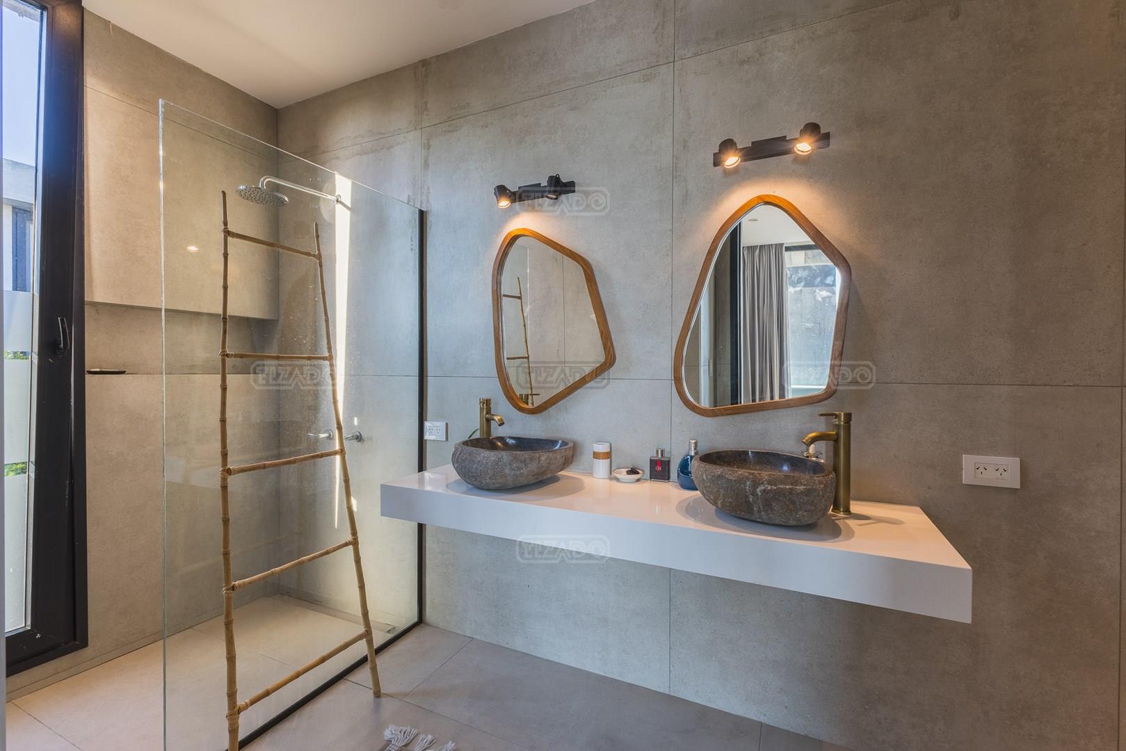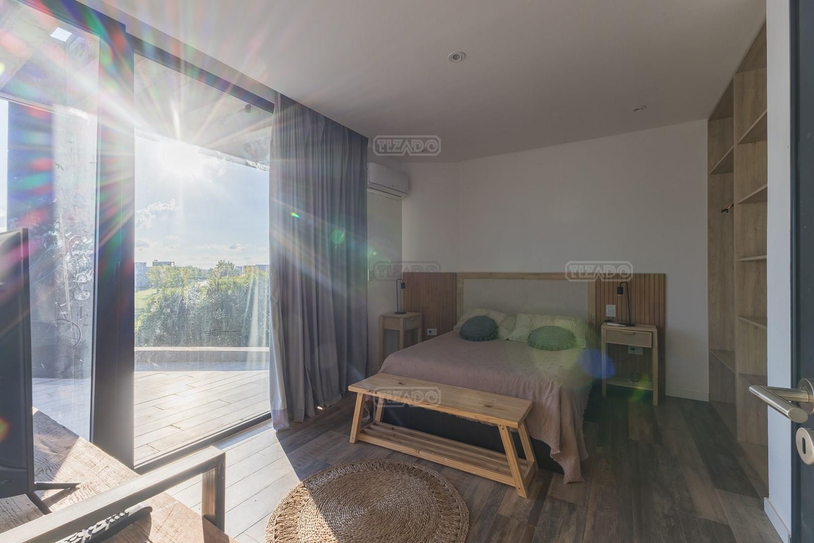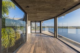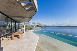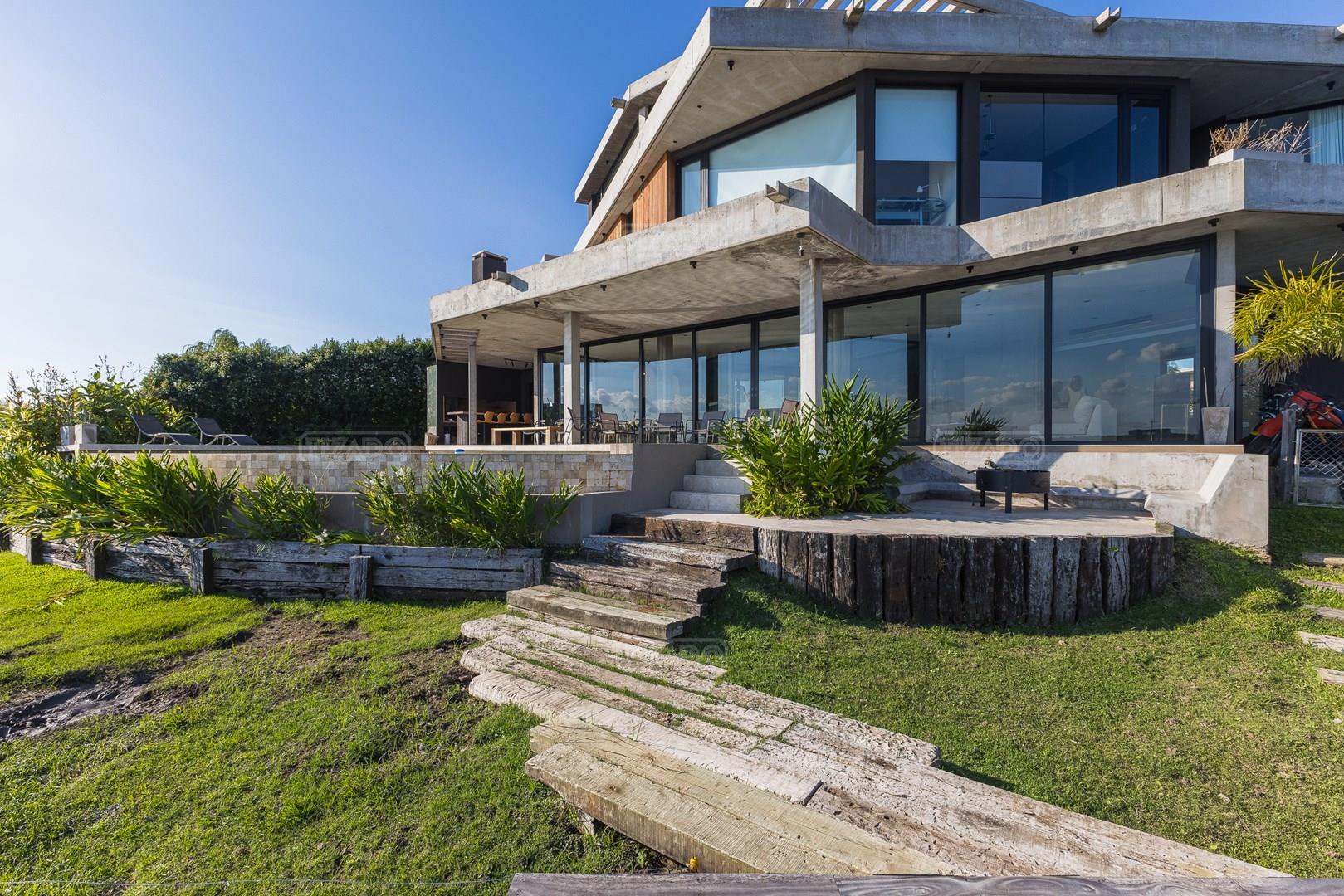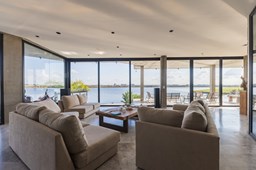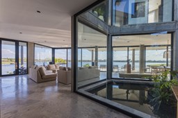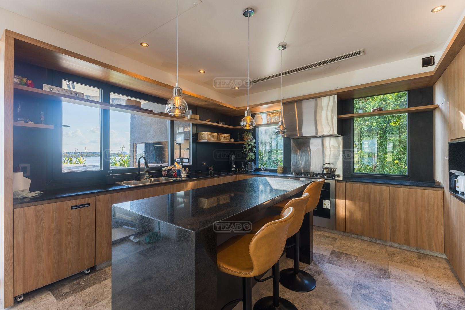 Es una casa de diseño exclusivo moderna, es como si flotara, rodeada por fuentes de agua y canteros verdes, implantada en un lote en esquina con 34 metros de costa sobre el lago central de Nordelta con increíble espejo de agua de 400 mtrs. . Con una calidad constructiva excelente en hormigón visto y madera de lapacho, donde desde cada uno de sus ambientes se ve el agua. El Living Comedor con amplísimos ventanales en esquina al estar construido sobre terreno elevado y aterrazado genera la sensación de estar en un barco con una visión panorámica del lago central. y puesta de sol. En el interior impacta un luminoso estanque verde central a cielo abierto. Ubicada al final de calle en cul de sac. PB: al ingreso te da una cálida bienvenida una fuente de agua vertical inclinada de pierda con un manantial oxigenando en forma natural el agua de los dos estanques externos con canteros verdes sus dos palmeras de 50 años, hall de recepción, amplio placard de visitas y cava para 150 vinos tras un muro de madera ranurada, patio interno vidriado a cielo abierto con cantero con palmera. Amplio home theatre separado por muro corredizo de tarquini. Living rodeado de ventanales piso a techo con imponente vista al lago central y salida a la galería y a amplia cochera sobre el lago con techo de hormigón visto y espacio para motos y bicicletas. Comedor con salida a la galería y vista al lago. Cocina en esquina con vista al lago con isla con mesada de marmol, anafe y 3 hornos empotrados: horno a gas con alzada en pared de acero inoxidable con extractor, microhondas y horno electrico. La cocina es semi integrada separada por puerta corrediza de madera embutidas y salida a la parrilla de leña con sistema de elevación electrica con brasero con puerta de vidrio templado y chapa doble de hierro y parrilla a gas. Despensa. Toilet con piso de porcelanato tundra. lavadero on mesada de granito negro, con entrada independiente. dependencia en suite con baño con ducha con entrada independiente. Amplia cochera sobre el lago con techo de hormigón visto y espacio para motos y bicicletas. Estacionamiento para 6 autos. PA: escalera flotante de madera de lapacho con baranda de hierro y vidrio. Estar con salida a la terraza con vista al lago. Suite principal hall con doble puerta, con gran ventanal con salida a terraza con vista al lago, baño completo en travertino italiano con doble bacha y doble ducha con jacuzzy con vista al lago y al stanque interno. amplio vestidor Segundo cuarto en suite con baño con ducha con ventadna con salida a la terraza con vista al lago. Tercer cuarto en suite con baño con doble bacha y ducha con salida a terraza con vista al frente. Cuarta suite con baño con ducha y ventana con salida a la terraza lateral y vista al lago. SEGUNDO PISO: gran altillo o 5to dormitorio con rincon para kitchenette, con ventanal a galería rodeado de luz, verde y agua con vista al lago central y al estanque interno. Baño completo con porcelanato mate con ducha. Todos los ventanales son de doble vidrio laminado con doble seguridad de 12 mm. Piso de piedra natunal Tundra pulido mate importada de Turquía. puertas de doble espesor super aislantes. Amplio muelle elevado con pergola diseño 3D en lapacho con iluminación. Pileta de 12 metros con borde infinity revestida de marmol travertino y piso de galería de marmol travertino. Doble solarium seco y húmedo con yacuzzi integrado. Centro de fuego separado con bancon de hormigón visto y fogón de hierro. Carpinterías PVC negras. Aire central dos equipos York. Calefacción por piso radiante a gas, electrico o por aire con dos equipos York. Muy buena iluminación de exterior en fachada, jardines y muelle. Central de domótica. Riego por asperción dividido en 5 circuitos. Cerco electrico.