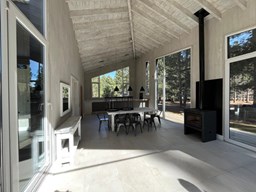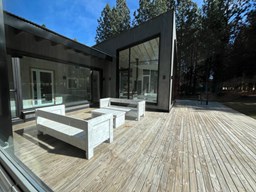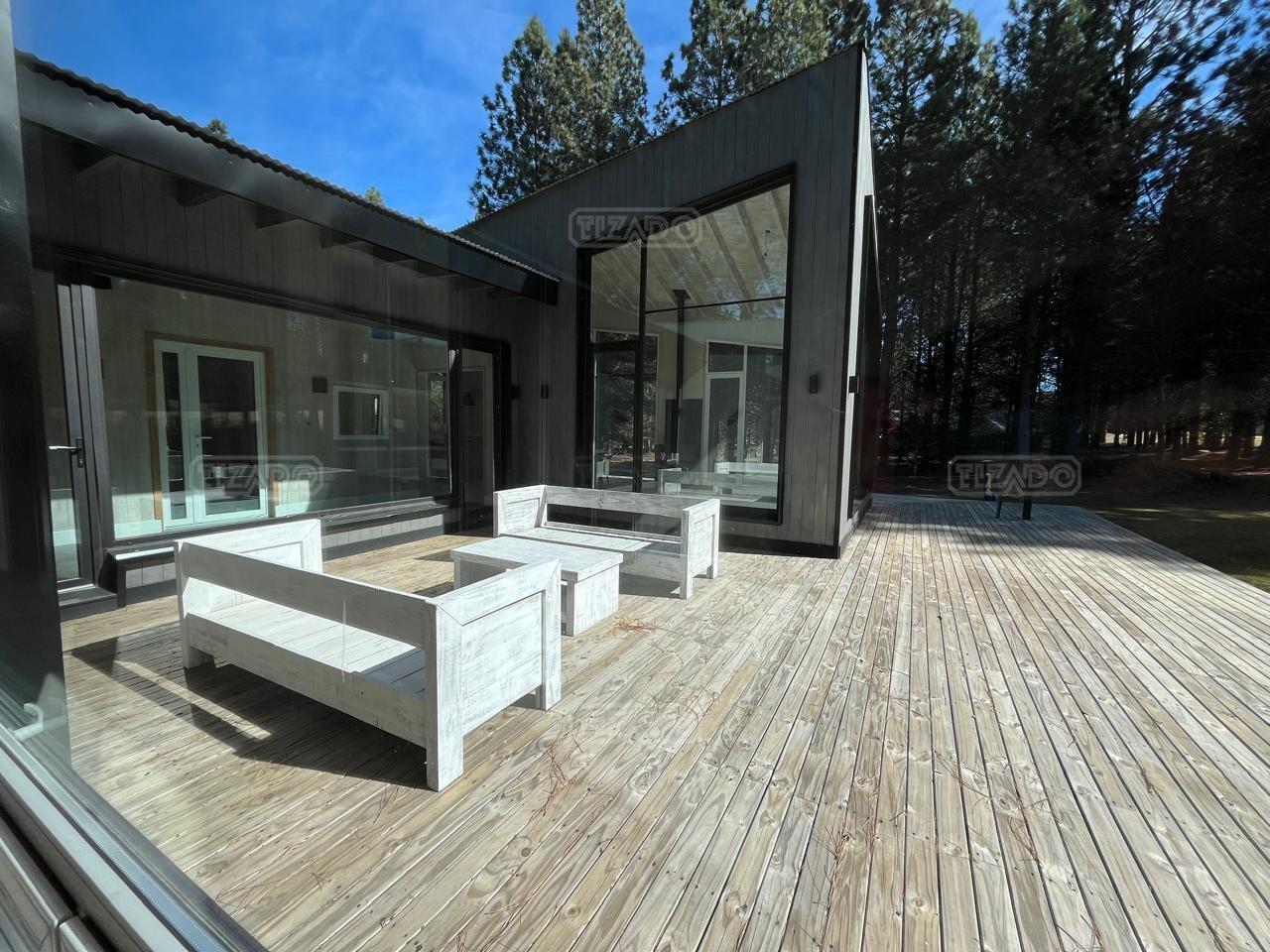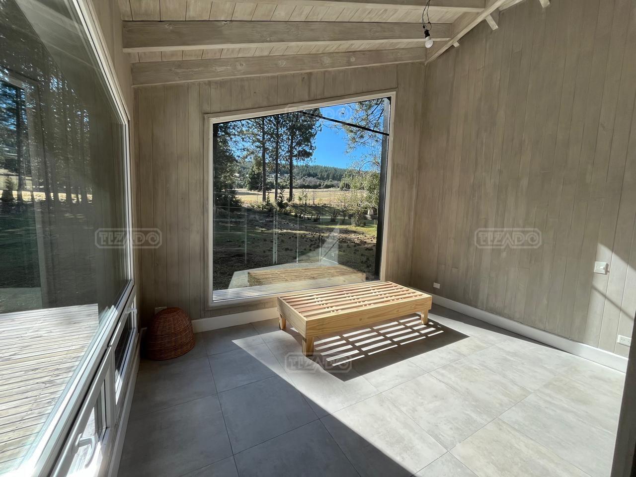Moderna y funcional casa distribuida en una planta con tres dormitorios, uno de ellos en suite, amplio living comedor con cocina y jardín parquizado. La casa se encuentra en muy lindo lote ubicado sobre el green del hoyo 10 de la cancha de Golf. Con muy lindas vistas sobre el cordón del Chapelco. El terreno es prácticamente plano y tiene un bosque de pinos. Recibe muy buen sol y está protegido del viento. Cuenta con todos los servicios. Realmente se siente el estar en la naturaleza, pero a la vez muy cerca (20 min. en auto) del centro de la ciudad. El country cuenta con club house con cafetería, canchas de tenis y un río con playa abierto a todos los propietarios.