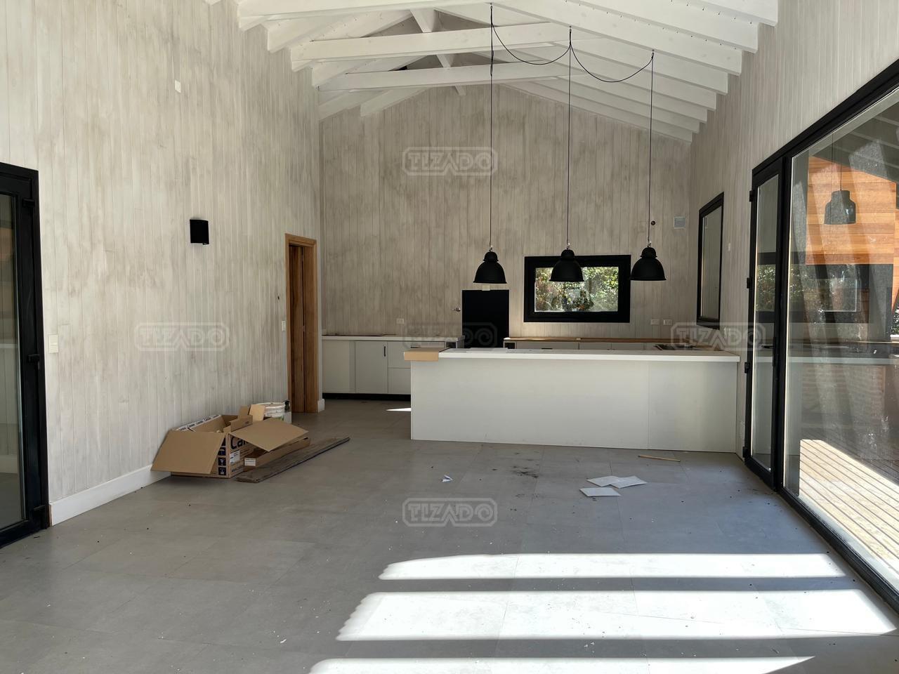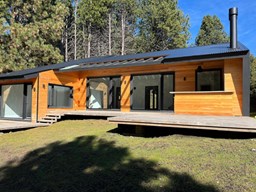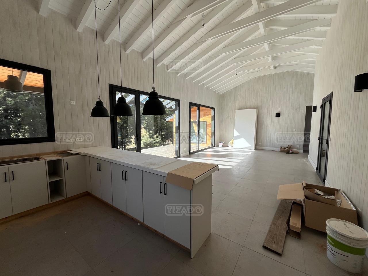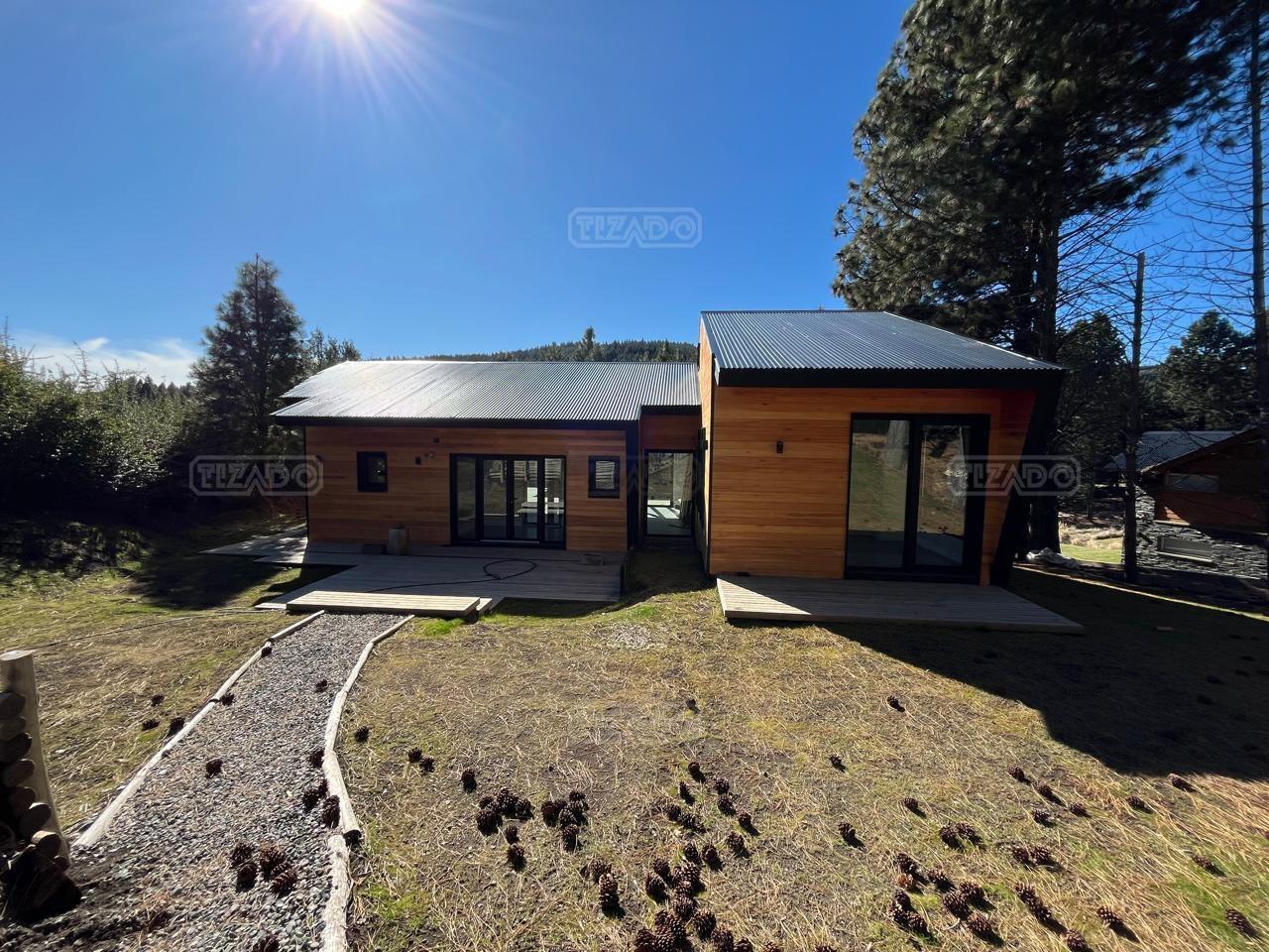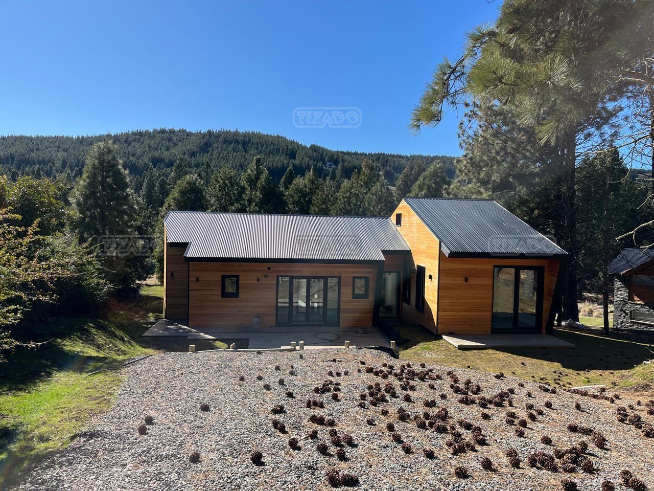 Moderna y funcional casa distribuida en una planta con tres dormitorios, uno de ellos en suite, amplio living comedor con cocina , jardín parquizado, y quincho. La casa se encuentra dentro del barrio cerrado Chapelco Golf & Resort con muy linda vista sobre el cordón del Chapelco. El terreno es prácticamente plano y tiene un bosque de pinos. Recibe muy buen sol y está protegido del viento. Cuenta con todos los servicios. Realmente se siente el estar en la naturaleza, pero a la vez muy cerca (20 min. en auto) del centro de la ciudad. El country cuenta con club house con cafetería, canchas de tenis y un río con playa abierto a todos los propietarios.