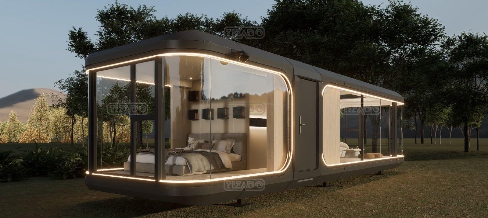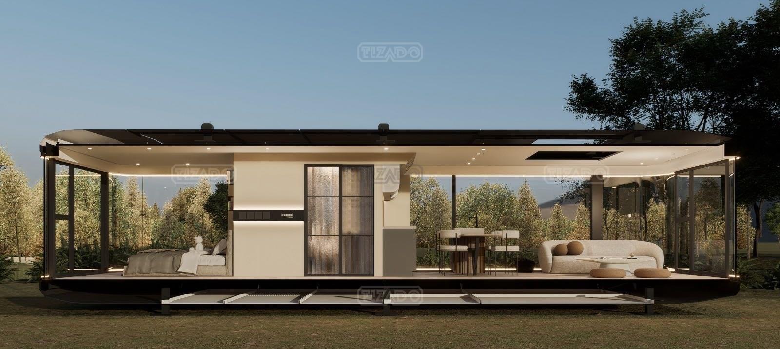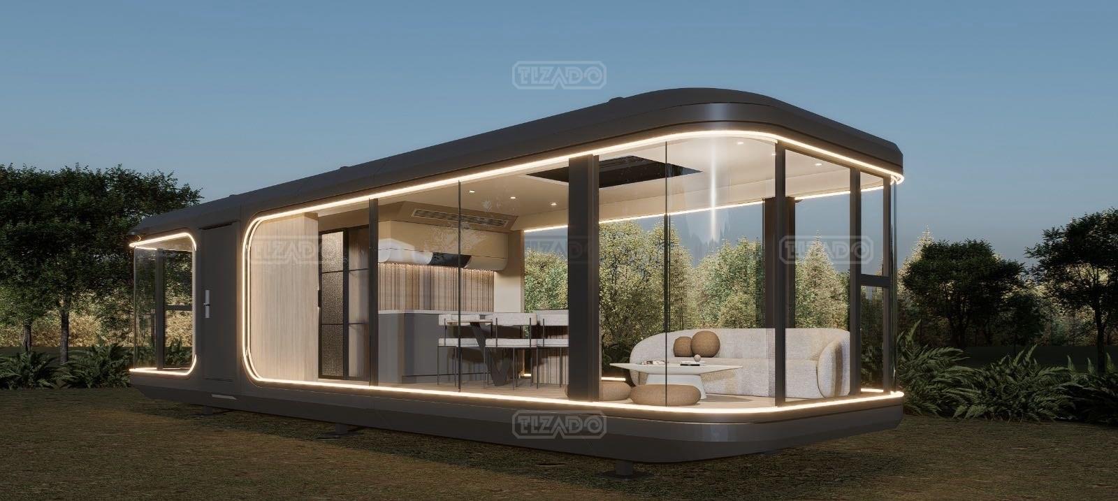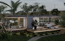 Casa cápsula totalmente equipada. Este modelo cuenta con espacio para dormitorio, baño, cocina y living. En el caso de querer usarlo como oficina el espacio de dormitorio puede ser utilizado para sala de reuniones. La casa tiene pisos simil madera, calefacción por piso radiante eléctrico con circuitos independientes y también dos equipos de aire acondicionado frío-calor bajo silueta. El baño con vanitory, estante, toallero, espejo touch, amplio espacio de ducha con mampara e inodoro inteligente. La cocina se encuentra equipada con anafe, extractor y espacio para heladera bajo mesada. Dormitorio con cortinas y placard. Las aberturas son doble vidrio con mosquitero y se pueden encargar con triple vidrio y caños calefaccionados para las bajas temperaturas. Toda la casa se encuentra revestida por lo tanto es muy fácil de mantenerla limpia. Cortinas electricas de tela Black out, y cortina eléctrica en el techo. Incluye pantalla y proyector. La estructura es de Acero Galvanizado y el revestimiento exterior es de aleación de Aluminio Carbonatado. La casa para su instalación necesita un suelo firme y nivelado, se apoya sobre sus 6 patas. No necesita platea. Se requiere conexión eléctrica, agua y conexión a desagüe . El transporte desde el puerto al terreno no está incluido. Visitanos en nuestro showroom en Nordelta Centro Comercial. Solo tenes que pensar donde la querés instalar! El precio incluye 10,5% de IVA.