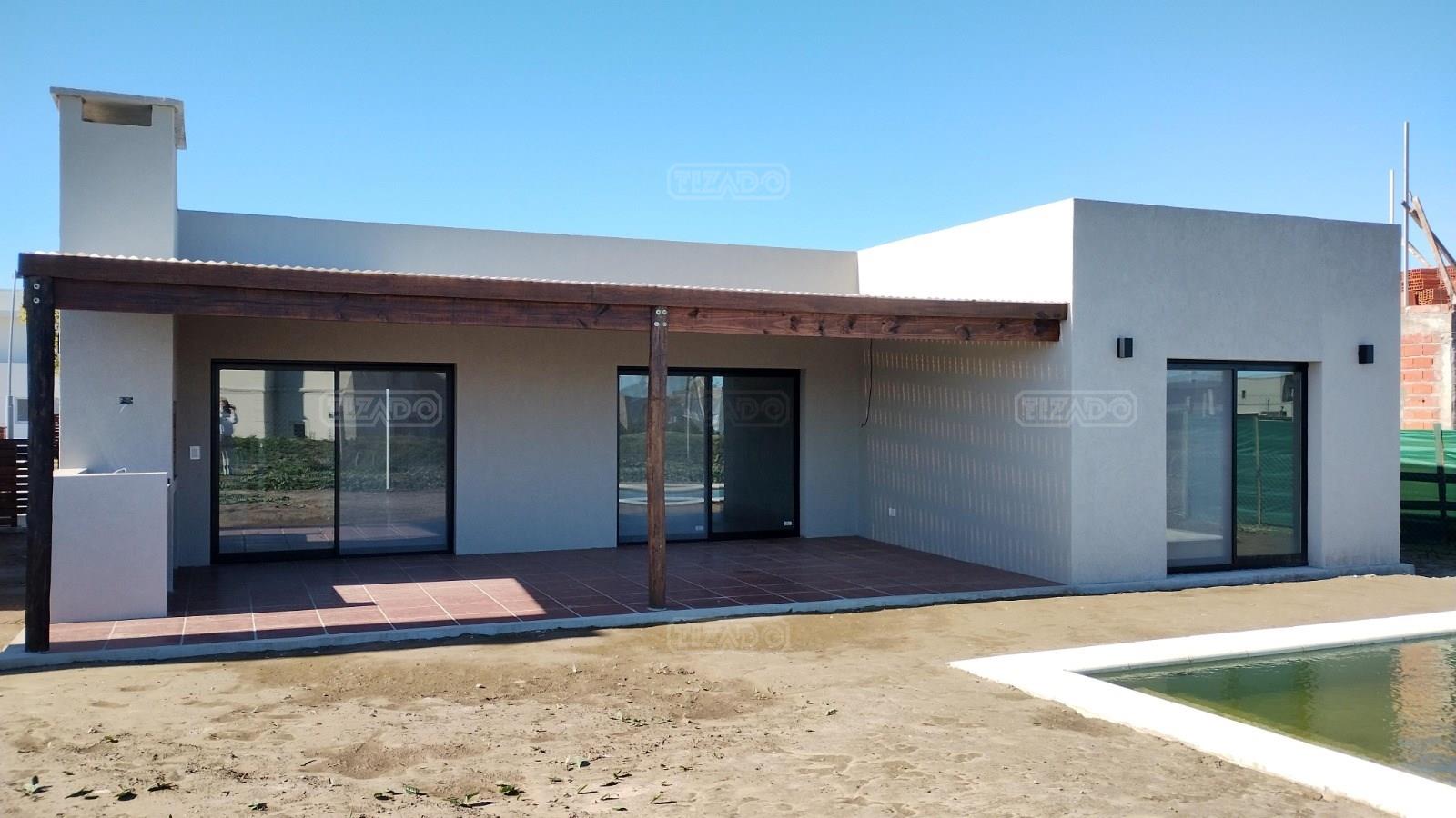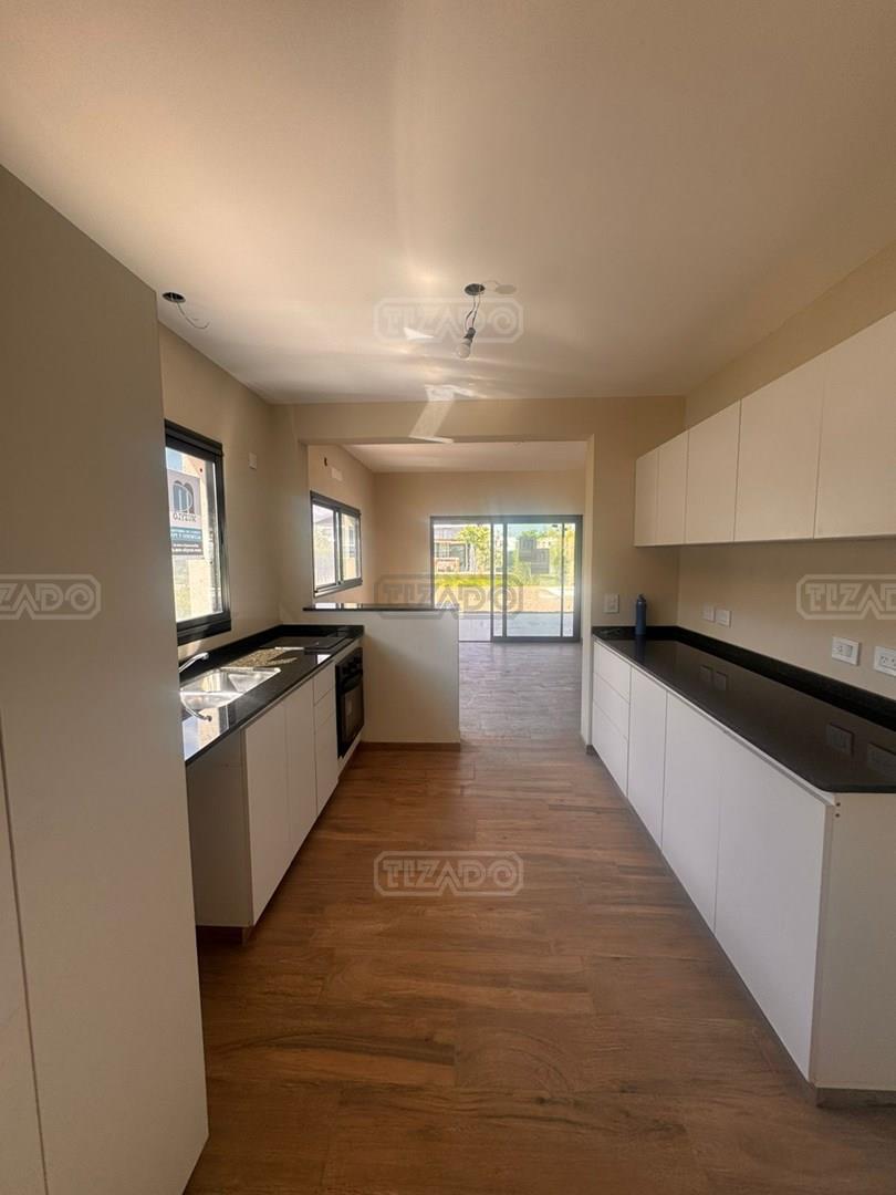 Hermosa casa de 1 planta a estrenar en el Barrio de Acacías Puertos Escobar Casa desarrollada en una planta, Super Luminosa. Estacionamiento para 4 autos, Galeria en el frente, hall de entrada, toilette de recepcion, 3 dormitorios ( 1 en suite con vestidor), bano completo que comparten dos dormitorios, living comedor, cocina semi integrada al comedor con barra desayunadora, lavadero, tender, galeria cubierta muy amplia con parrilla y pileta mesada, pileta Construccion tradicional, Platea de hormigon calculada para 2 plantas, paredes de ladrido portante de 18, techo de losa, (apta para construir segunda planta) Aislacion maxima en el techo con ladrillos de telgopor debajo de losa, Ventanas DVH doble vidrio con mosquitero Piso interior de porcelanato Calefaccion central por piso radiante de bajo consumo con termostatos individuales en todos los ambientes Pre instalacion de aire acondicionado en dormitorios, living comedor y cocina Conexion para bajada de fibra optica en todas las habitaciones, Instalacion en pared enchufes y fibra optica para tv. Dormitorios con placares completos con interior de placard Bomba de agua Rowa, y cisterna reglamentaria