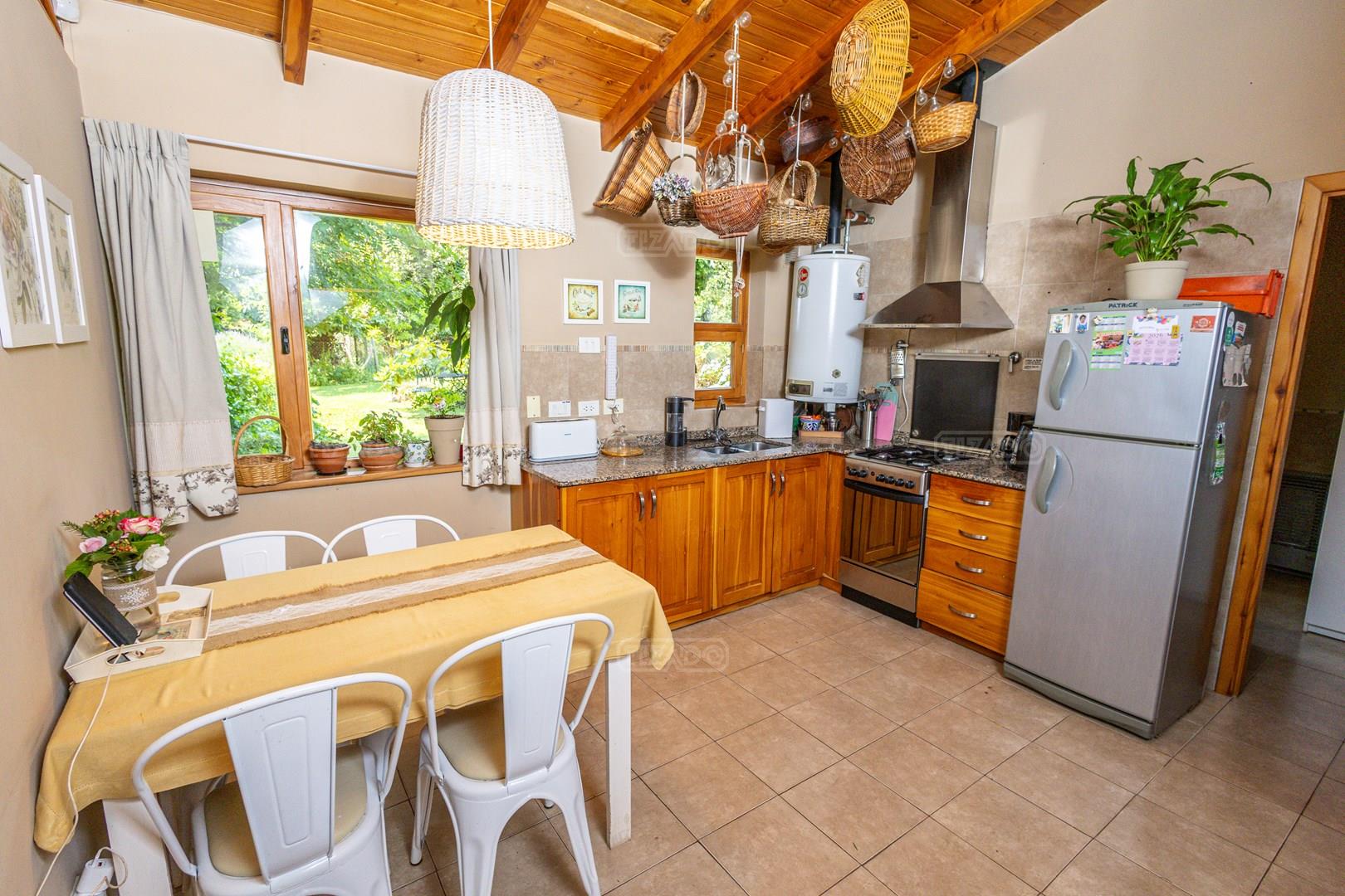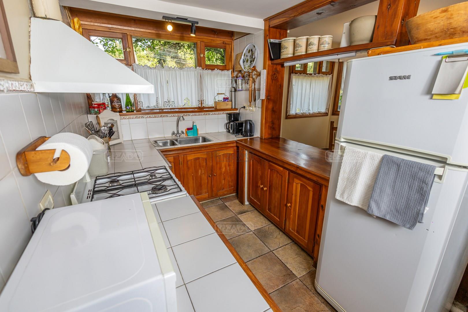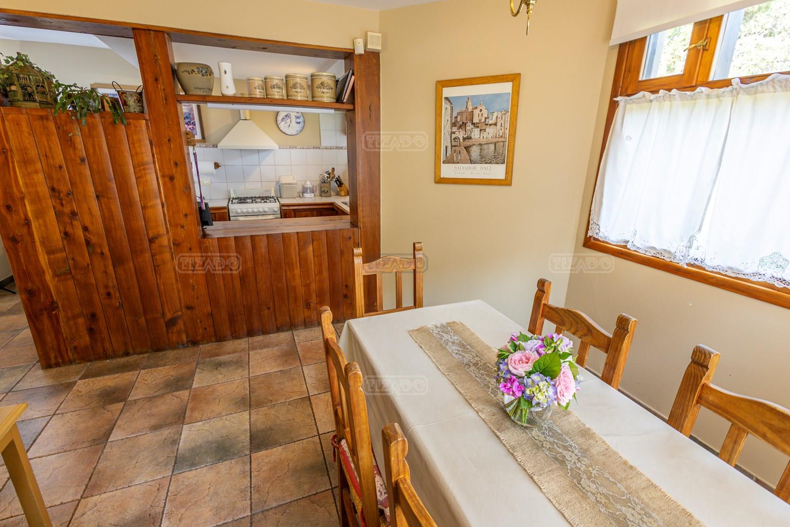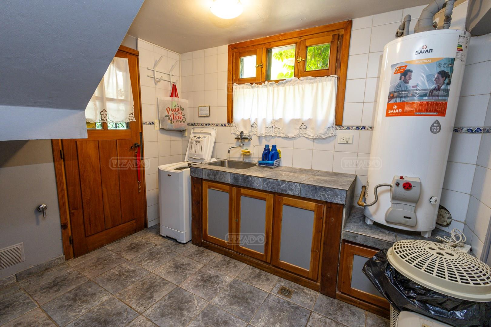 Propiedad de gran calidad situada en excelente ubicación a solo una cuadra de la Av Bustillo altura Km 6, una zona de propiedades de buen nivel con excelente conectividad al centro de la ciudad de Bariloche. Cuenta con un amplio terreno de 1.504,74m2 de superficie con buen frente de 26 mts sobre calle Mirador y 62 mts de fondo, con orientación Oeste. En cuanto a su geografía no presenta pendientes relevantes y se encuentra parquizado en su totalidad, cercado y con riego por aspersión. Cuenta con la casa principal de 102.45m2 de superficie, de construcción 100% en mampostería y desarrollada en dos plantas. Dispone de los siguientes ambientes: en su planta baja cuenta con hall recibidor, área de comedor diario con cocina semi integrada por barra. La cocina cuenta con buen equipamiento y bajo mesadas. Área de living con hogar a leña revestido en piedra natural. Baño de tipo toilette y un dormitorio. Lavadero con acceso independiente desde la cochera semi cubierta. En planta alta cuenta palier distribuidor, un dormitorio con placares de ciprés y sector de escritorio, con vista al parque, baño compartimentado en 3 (vanitory, ducha y sanitario) y dormitorio principal de grandes dimensiones con doble placard todos en cipres y techos con hermosa carpintería. Los pisos en Planta baja son cerámicos y en Planta alta tipo vinilicos simil madera de alta calidad. Las aberturas son de carpintería en madera con vidrio simple. Calefacción por sistema de radiadores con caldera y agua caliente por termotanque. También cuenta con un tiro balanceado entre plantas. Sistema de alarma inalámbrica. Portón de acceso automatizado y jardín al frente con acceso peatonal. Conectadas mediante una galería semicubierta se accede a la segunda vivienda de 59.46m2 de superficie, también en construcción en mampostería y desarrollada en dos plantas. Dispone de área de living con hermosa carpintería en techos y pisos artesanales con rodajas de cipres, sector de cocina comedor completamente equipada y amplio baño completo con bañera y con conexión de lavadero. En la planta alta cuenta con un dormitorio con pequeño baño tipo toilette. Dispone de su propio acceso con portón automatizado, espacio de estacionamiento y con jardin al frente. La calefacción es por tiro balanceado y el agua caliente por termotanque. El parque se encuentra parquizado con frutales, flores y arboles autóctonos. Cuenta con riego por aspersión. Sector de terraza con baldosones Área de piscina pequeña de material. Y finalmente en el sector trasero del jardín cuenta con una construcción nueva en un 50/60% de avance de obra aproximadamente la cual tiene una superficie total de 55m2, desarrollada en construcción en seco, revestida en chapa negra y con aberturas de pvc simil madera colocadas. Faltan los interiores. En su disposición contará con área de cocina comedor, baño con ducha y conexión de lavadero y 1 dormitorio, con posibilidades de ampliación para generar un buen living. Tendrá calefacción por tiro balanceado y agua caliente por termotanque. Tiene plano aprobado y permiso de obra Municipal. Detrás hay un pequeño galpón para guardado. (las medidas de ambientes publicadas son de la casa principal) Ni Tizado Propiedades (M&G Inmuebles Patagonia SRL), ni el Martillero a cargo son responsables de los indicadores urbanísticos, factibilidades de construcción, ni usos permitidos sobre el inmueble objeto del presente. Corredor y Martillero Matriculado: Sebastián Caretta - Matricula N.333-RP-20 F.412 T.Il