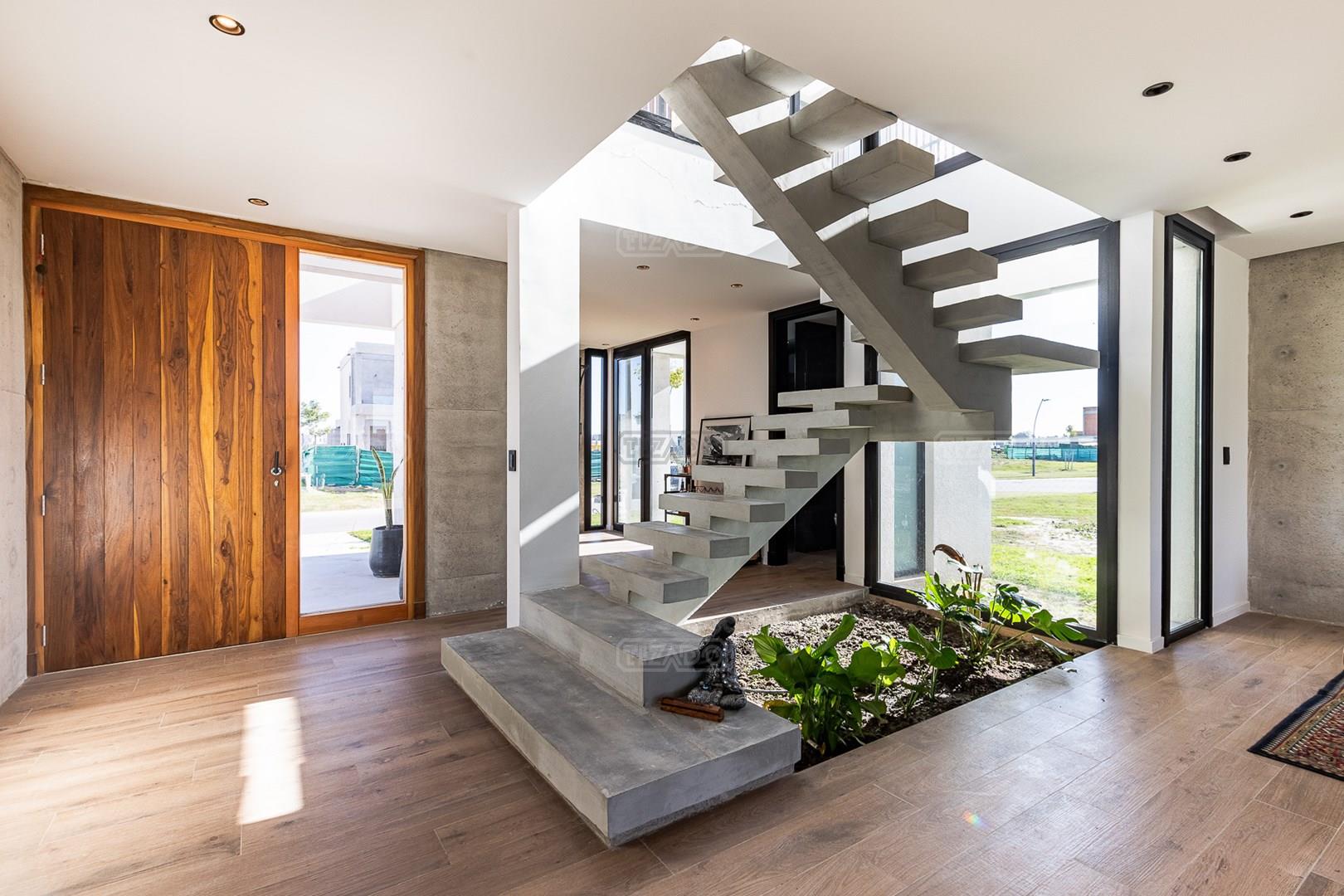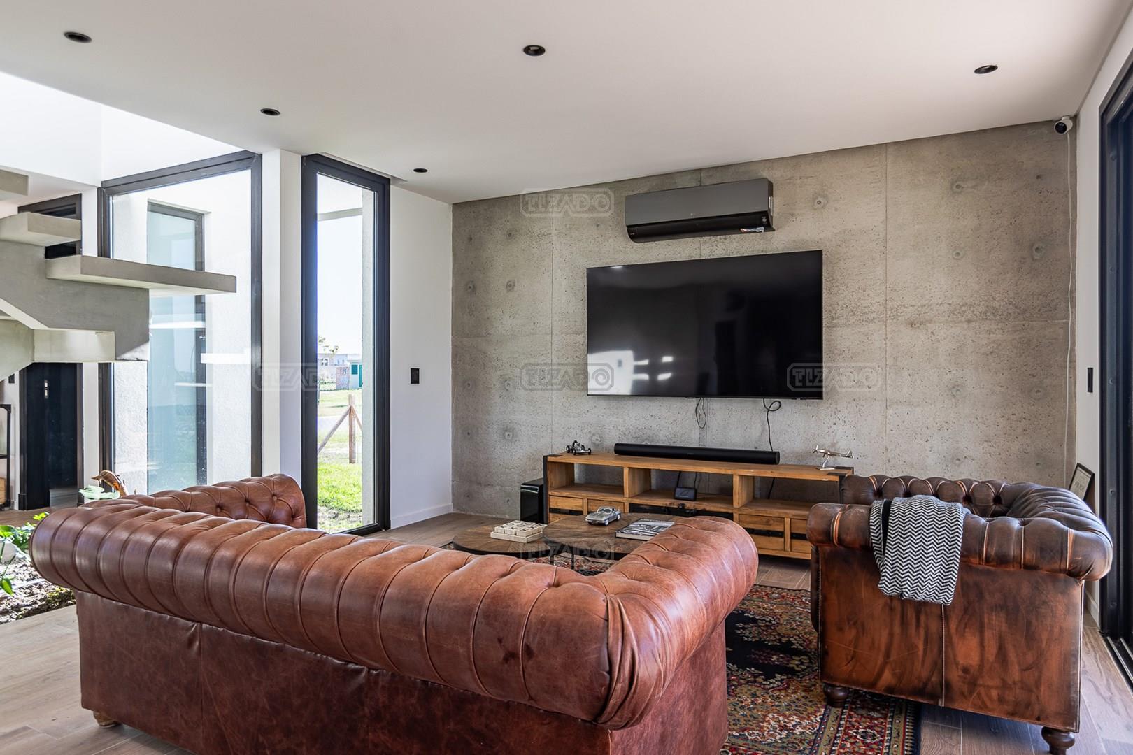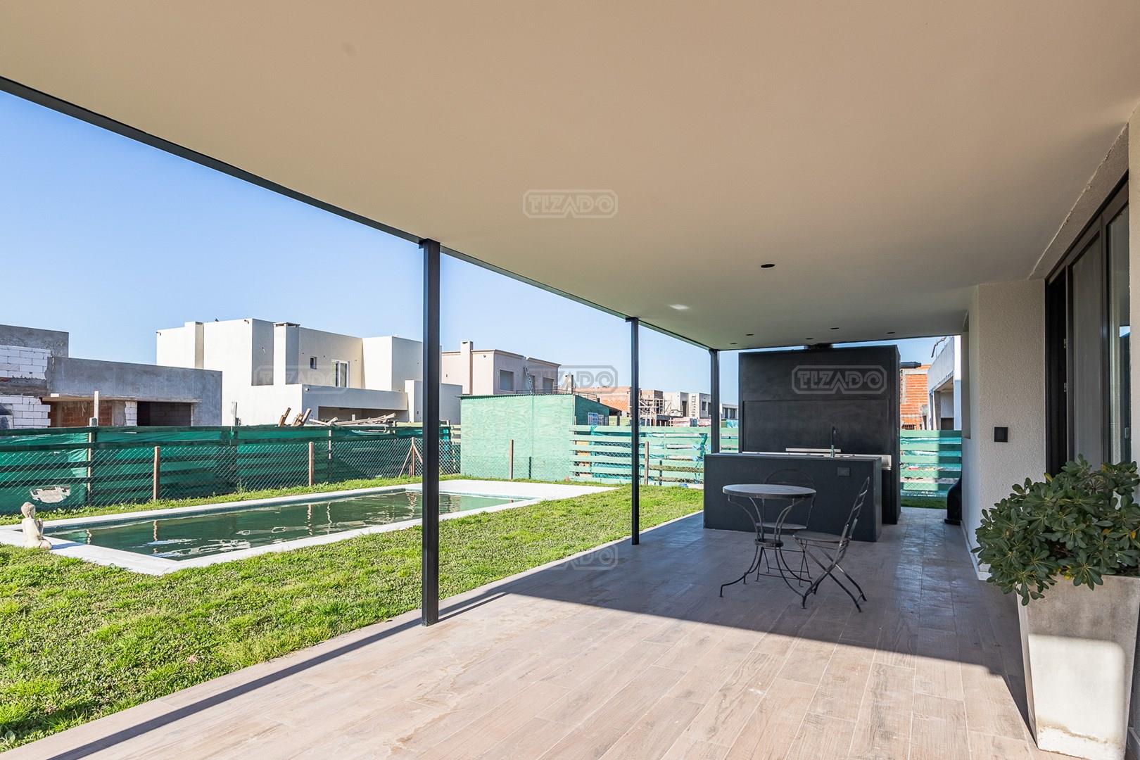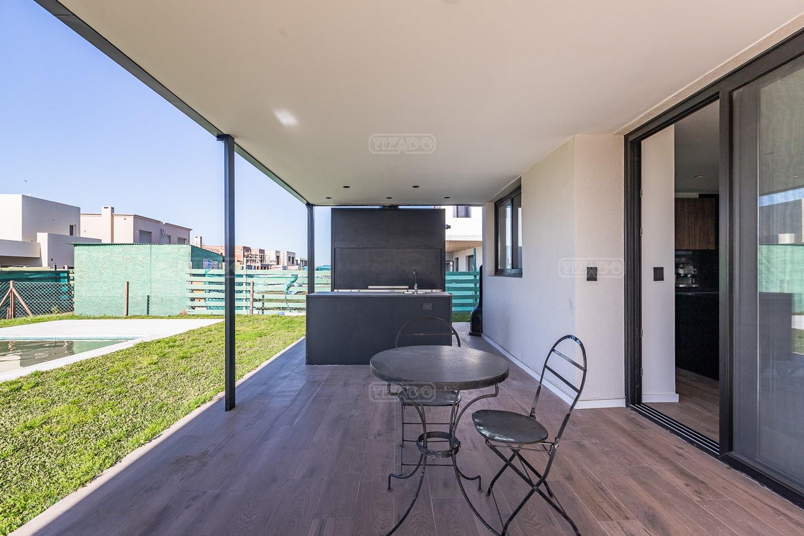 Hermosa casa de diseño ubicada en el barrio Riberas. Alquiler temporal: -Diciembre U$ 3500 -Enero U$4000 -Febrero U$3200 Amplios espacios, cocina con isla integrada al living comedor, horno whirlpool, anafe samsung y microondas empotrable samsung, espacio de escritorio, baño completo en pb. Lavadero con acceso a la cochera cubierta y a la galería. 2 Aires acondicionados frío calor en planta baja marca Lg art cool y 3 aires acondicionados frío calor marca Samsung en la PA, calefacción por losa radiante. La PA cuenta con 1 dormitorio principal en suite con vestidor y baño, 2 dormitorios con placard y baño en semi suite. Amplia terraza en el frente. Galería con parrilla completa, jardín parquizado, pileta con playa húmeda y solarium revestida con venecitas. Los pisos son de porcelanato, las aberturas de PVC doble vidrio. Las expensas incluyen club puertos, agua de riego, agua de red. Aparte se abonan los impuestos municipales y la proporcion correspondiente al ARBA. (Valores sujetos a modificacion). Coordinar visita para verla. Tizado Puertos.