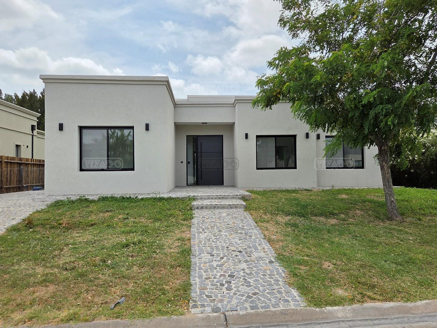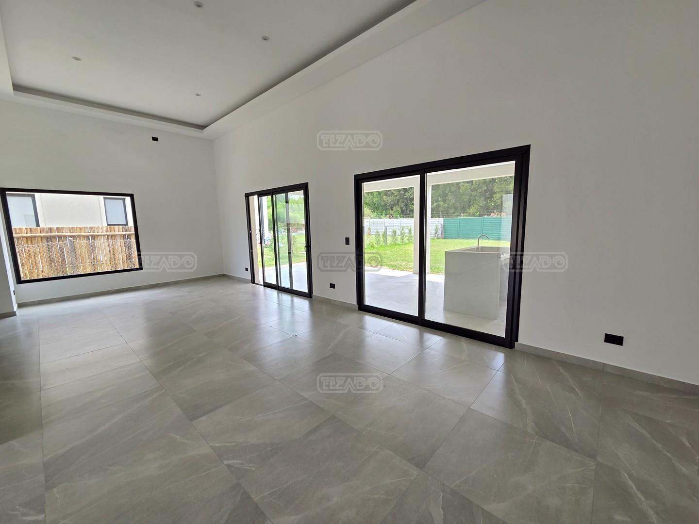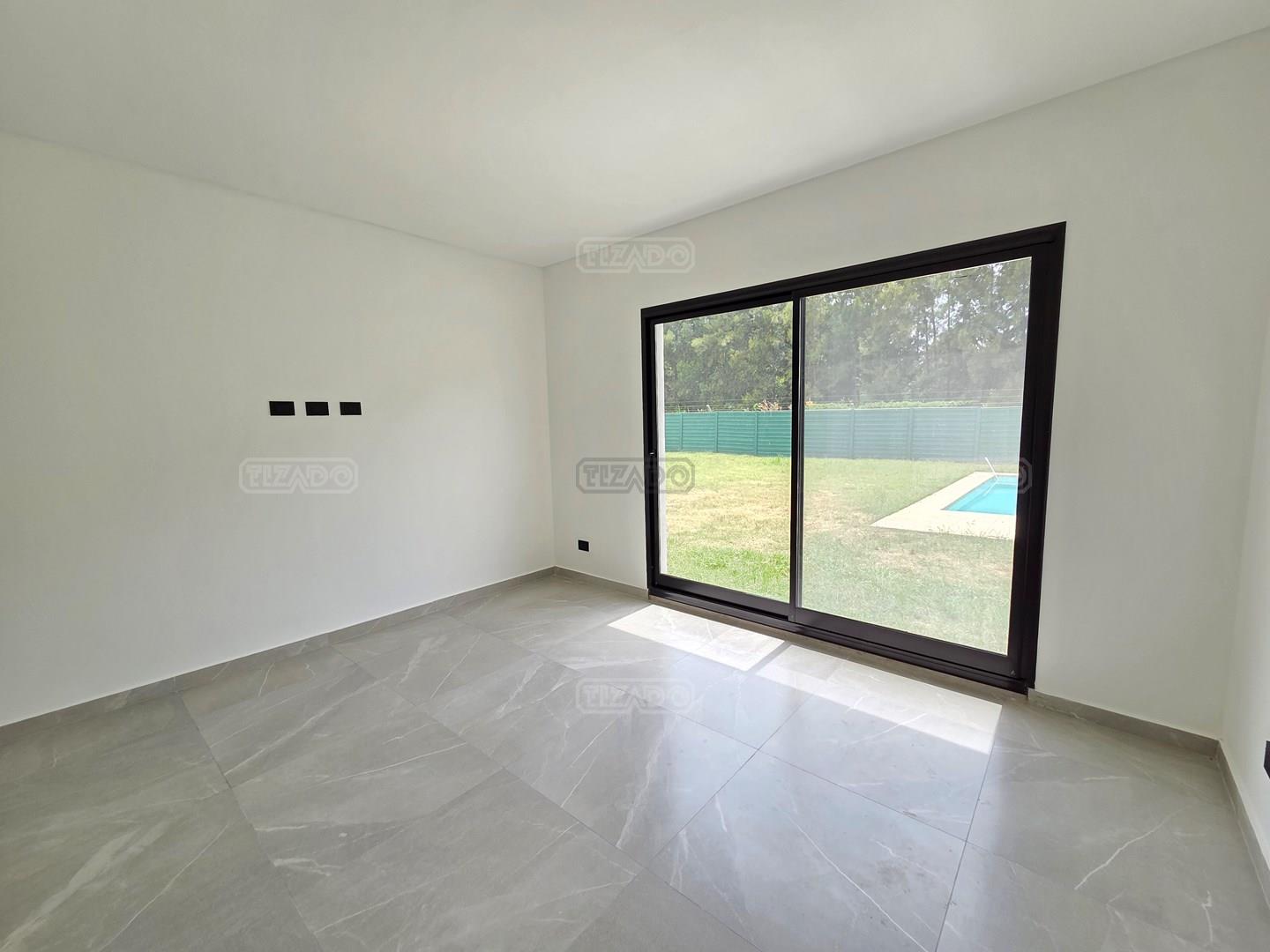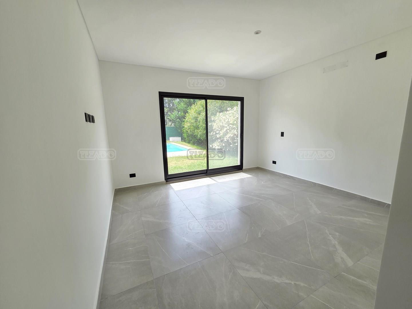 Casa sobre lote de 746m2 desarrollada en una planta con orientación NORESTE. Distribución: acceso principal con puerta pivoteante PVC Oblak, estudio o cuarta habitación, baño completo, amplio living-comedor en doble altura, con molduras para luminarias embutidas y salida directa a galería, cocina integrada de generosas dimensiones, lavadero con entrada independiente, dormitorio principal con salida al parque, baño en suite y vestidor completo, dos dormitorios al frente con placares terminados, baño completo compartido, galería semicubierta con parrilla, isla con mesada y bacha, baño completo en galería más ducha exterior de cortesía, piscina de hormigón 7 x 3 m con equipo de filtrado. Entrada de adoquines con rampa para dos vehículos. Detalles Constructivos: Construcción tradicional sobre platea de hormigón y techo de losa, revestimiento exterior impermeable texturado pisos de porcelanato de primera marca, mesadas de mármol con muebles bajo mesada y alacenas, aberturas de aluminio negro con DVH (A30) y mosquiteros, calefacción sectorizada por piso radiante con caldera dual italiana Baxi, preinstalaciones para equipos de aire acondicionado en ambientes principales, cocina con anafe a gas y horno eléctrico empotrable, iluminación interna y externa instalada. SAN MATIAS Se trata de una fracción de 202 ha, con 1261 lotes y una superficie promedio de 830 m2, en una zona de antiguas quintas residenciales, sobre las barrancas que anteceden al río Luján, con añosas arboledas y magníficas vistas. Cuenta con más de 2.000 árboles distribuidos en 120 diferentes especies entre las que se destacan Cipreses, Álamos, Pinos, Liquidámbares, Eucaliptos, Fresnos, Robles, Casuarinas y Ombúes. UBICACIÓN San Matías se encuentra a la altura del kilómetro 44 de la Panamericana (ramal Escobar), a menos de 2 km de la autopista, de los centros comerciales, recreativos y de salud, y en la entrada de otros importantes emprendimientos residenciales de la zona, que actualmente están en proyecto o construcción. Para estos emprendimientos se proyecta un acceso en común, que incluirá una nueva salida desde la panamericana. (Coordenadas GPS: S 34• 21.296 // W 058•45.438 ) INFRAESTRUCTURA Y SERVICIOS El proyecto está conformado por cinco áreas sobre una barranca alta con magníficas vistas, con zonas comunes atractivas, lagunas y parques arbolados. • calles asfaltadas • redes subterráneas de agua potable • electricidad • gas y cloacas • alambrados perimetrales • parquización de los espacios comunes • edificios administrativos y de acceso • canchas de tenis • SUM