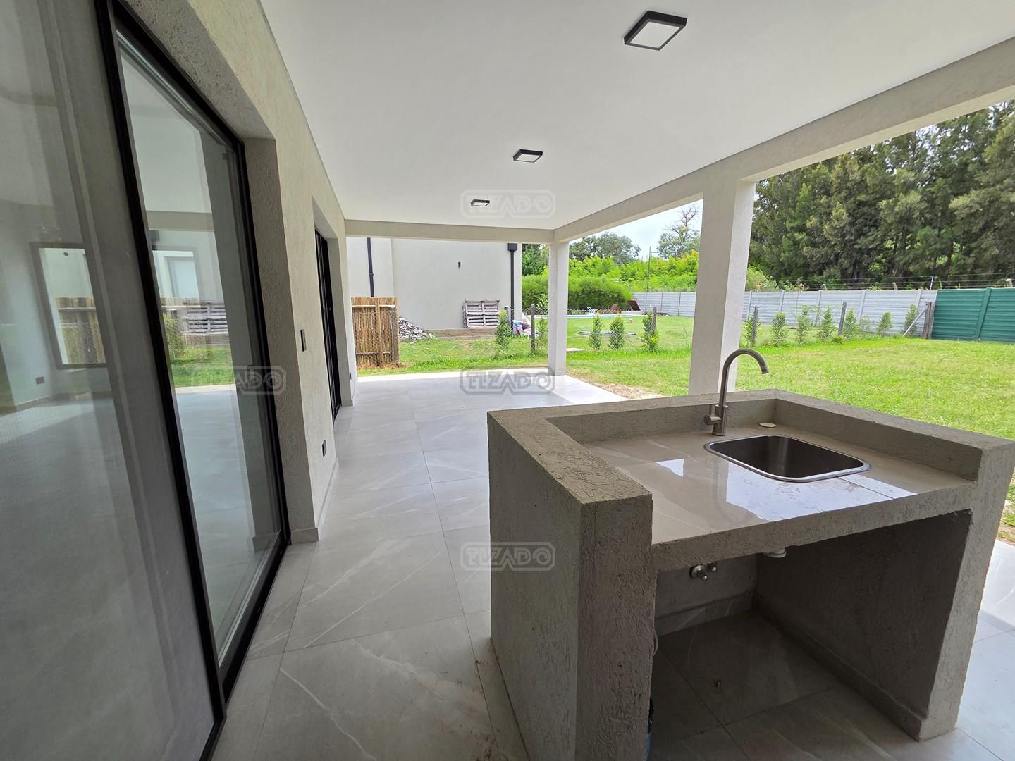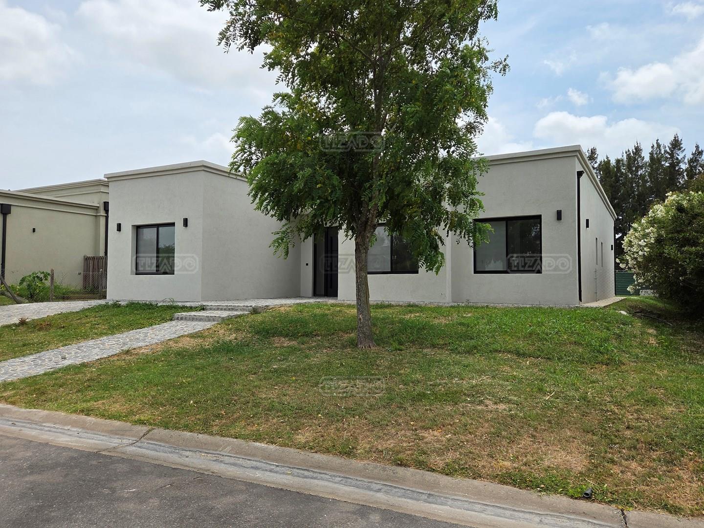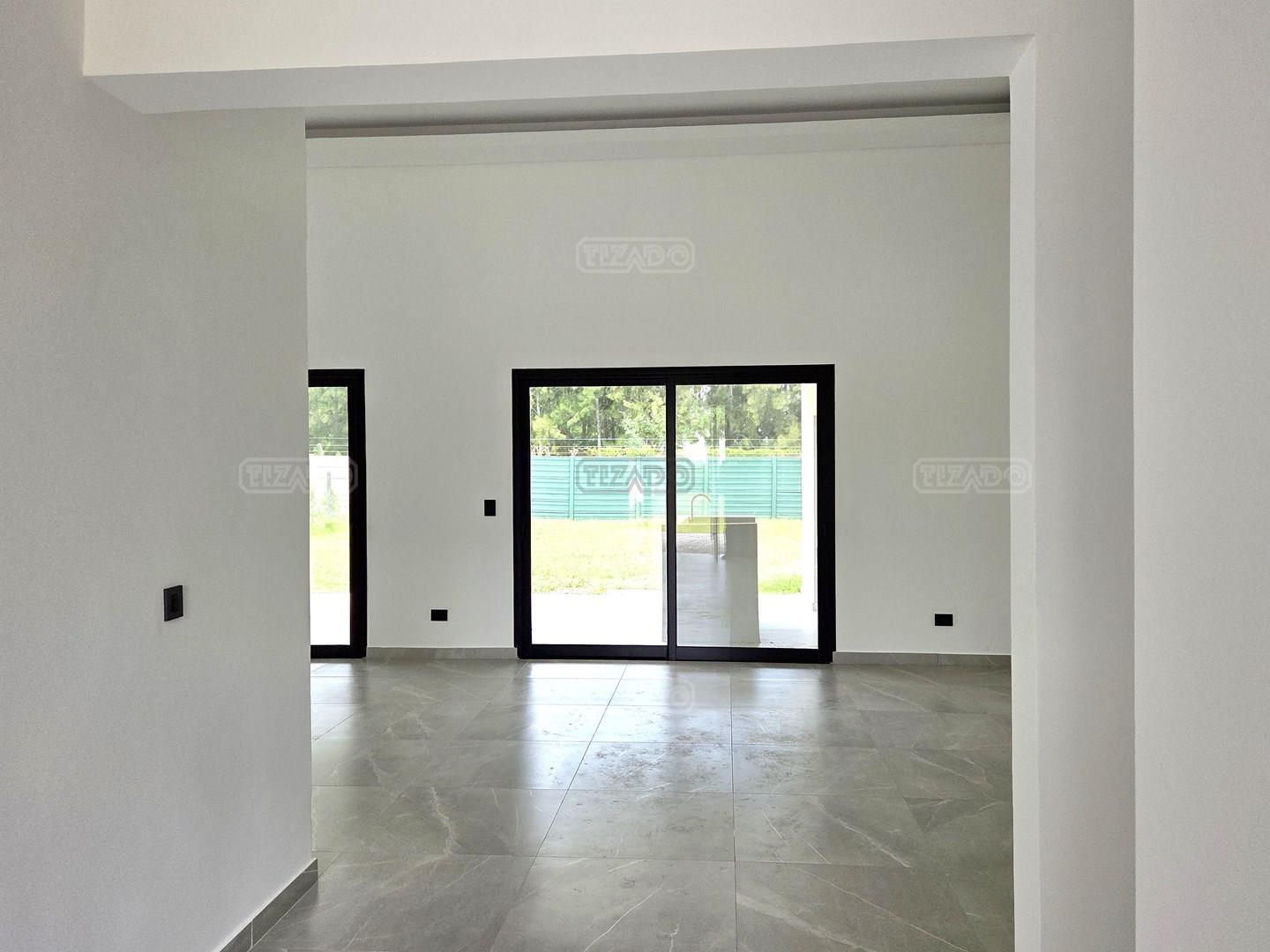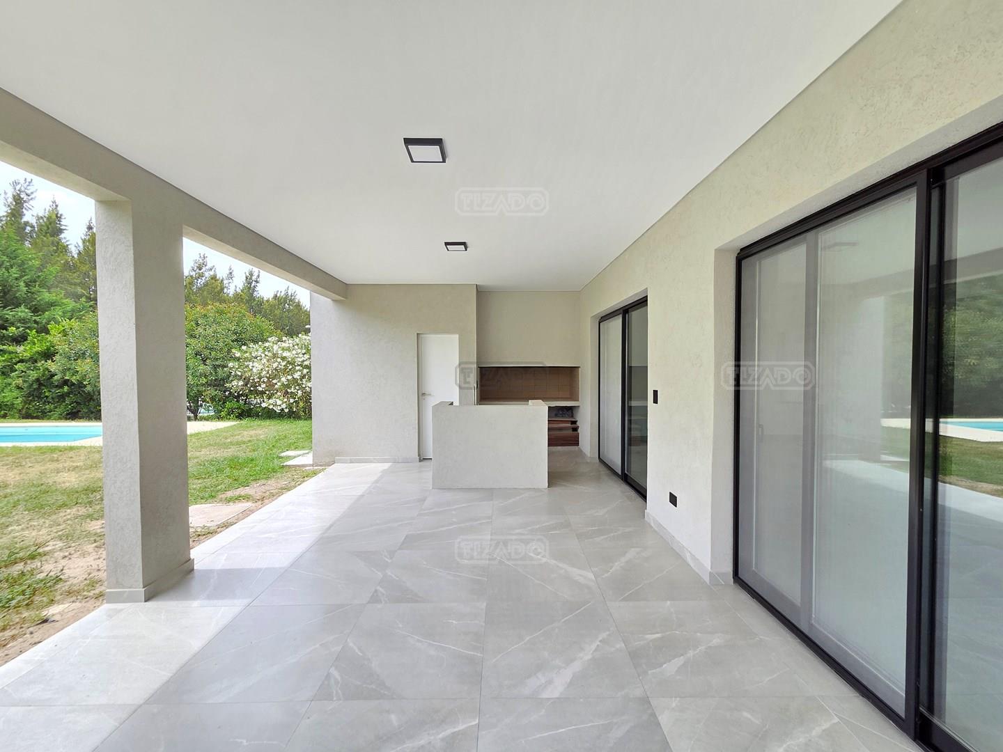 Casa sobre lote de 746m2 desarrollada en una planta con orientación NORESTE. Distribución: acceso principal con puerta pivoteante PVC Oblak, estudio o cuarta habitación, baño completo, amplio living-comedor en doble altura, con molduras para luminarias embutidas y salida directa a galería, cocina integrada de generosas dimensiones, lavadero con entrada independiente, dormitorio principal con salida al parque, baño en suite y vestidor completo, dos dormitorios al frente con placares terminados, baño completo compartido, galería semicubierta con parrilla, isla con mesada y bacha, baño completo en galería más ducha exterior de cortesía, piscina de hormigón 7 x 3 m con equipo de filtrado. Entrada de adoquines con rampa para dos vehículos. Detalles Constructivos: Construcción tradicional sobre platea de hormigón y techo de losa, revestimiento exterior impermeable texturado pisos de porcelanato de primera marca, mesadas de mármol con muebles bajo mesada y alacenas, aberturas de aluminio negro con DVH (A30) y mosquiteros, calefacción sectorizada por piso radiante con caldera dual italiana Baxi, preinstalaciones para equipos de aire acondicionado en ambientes principales, cocina con anafe a gas y horno eléctrico empotrable, iluminación interna y externa instalada. SAN MATIAS Se trata de una fracción de 202 ha, con 1261 lotes y una superficie promedio de 830 m2, en una zona de antiguas quintas residenciales, sobre las barrancas que anteceden al río Luján, con añosas arboledas y magníficas vistas. Cuenta con más de 2.000 árboles distribuidos en 120 diferentes especies entre las que se destacan Cipreses, Álamos, Pinos, Liquidámbares, Eucaliptos, Fresnos, Robles, Casuarinas y Ombúes. UBICACIÓN San Matías se encuentra a la altura del kilómetro 44 de la Panamericana (ramal Escobar), a menos de 2 km de la autopista, de los centros comerciales, recreativos y de salud, y en la entrada de otros importantes emprendimientos residenciales de la zona, que actualmente están en proyecto o construcción. Para estos emprendimientos se proyecta un acceso en común, que incluirá una nueva salida desde la panamericana. (Coordenadas GPS: S 34• 21.296 // W 058•45.438 ) INFRAESTRUCTURA Y SERVICIOS El proyecto está conformado por cinco áreas sobre una barranca alta con magníficas vistas, con zonas comunes atractivas, lagunas y parques arbolados. • calles asfaltadas • redes subterráneas de agua potable • electricidad • gas y cloacas • alambrados perimetrales • parquización de los espacios comunes • edificios administrativos y de acceso • canchas de tenis • SUM