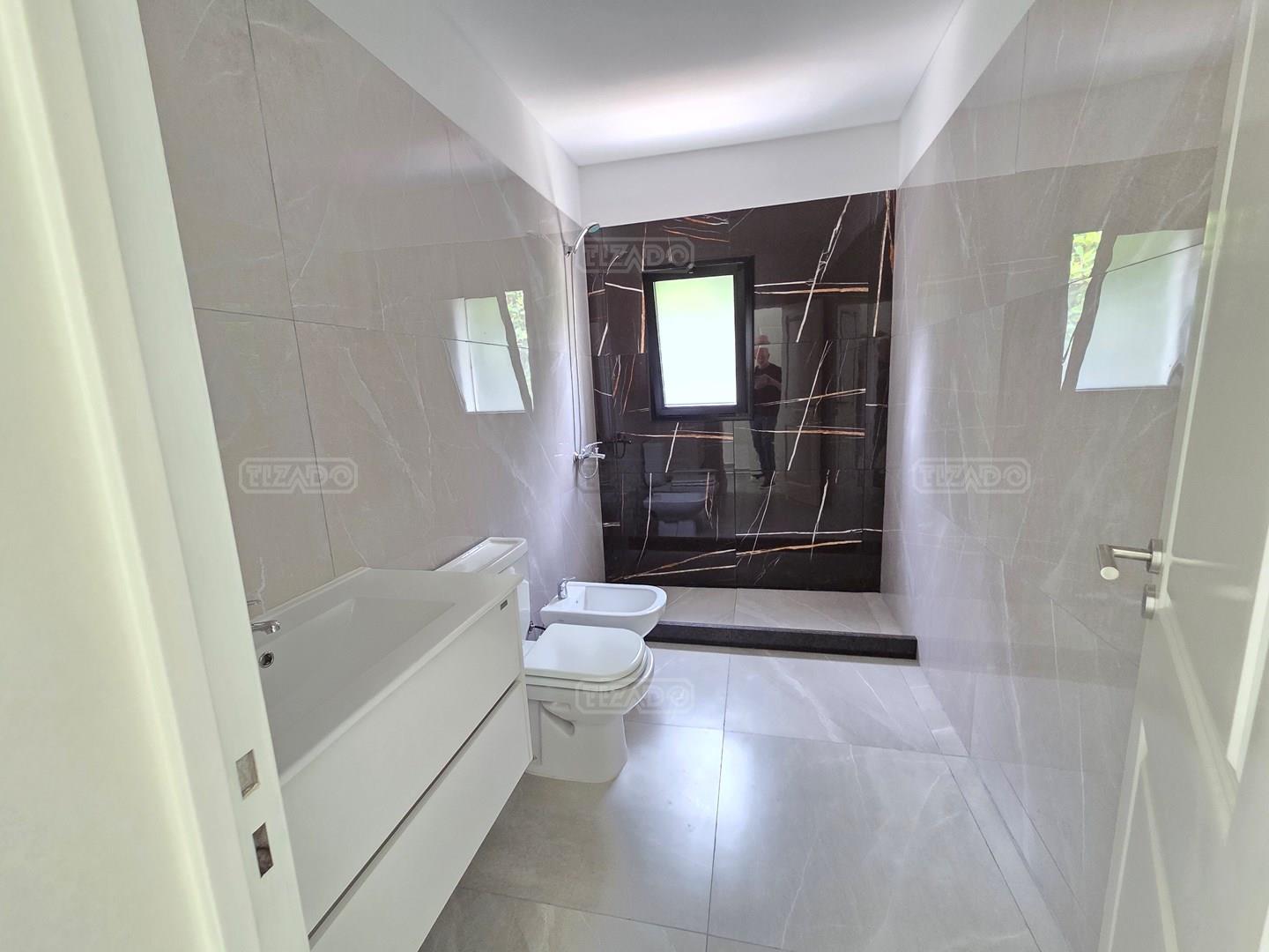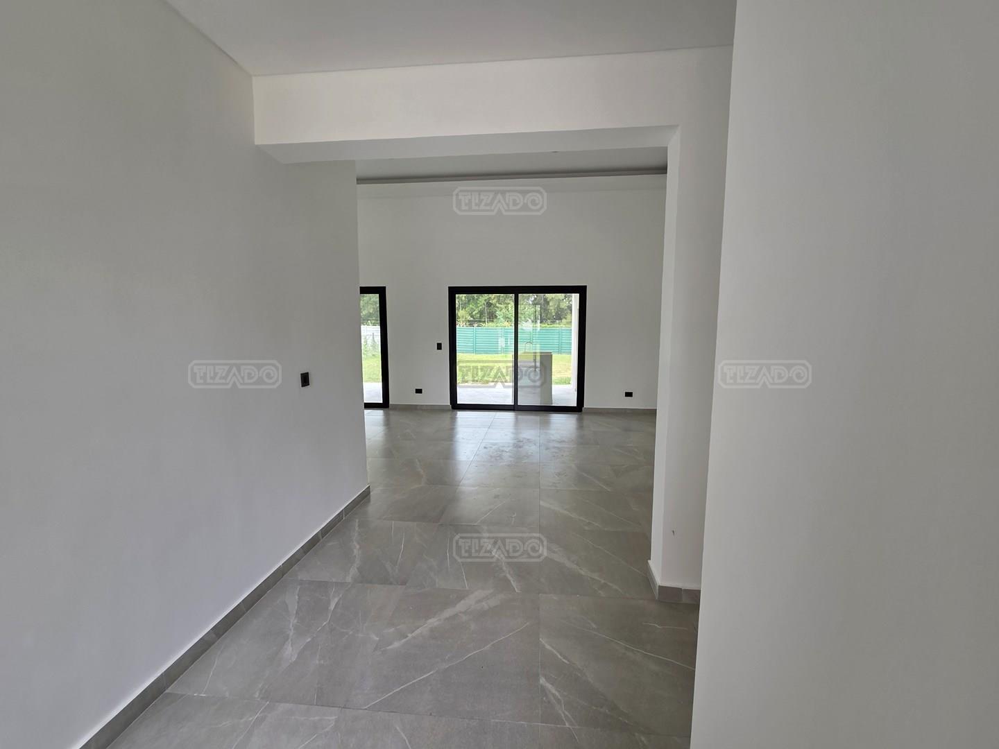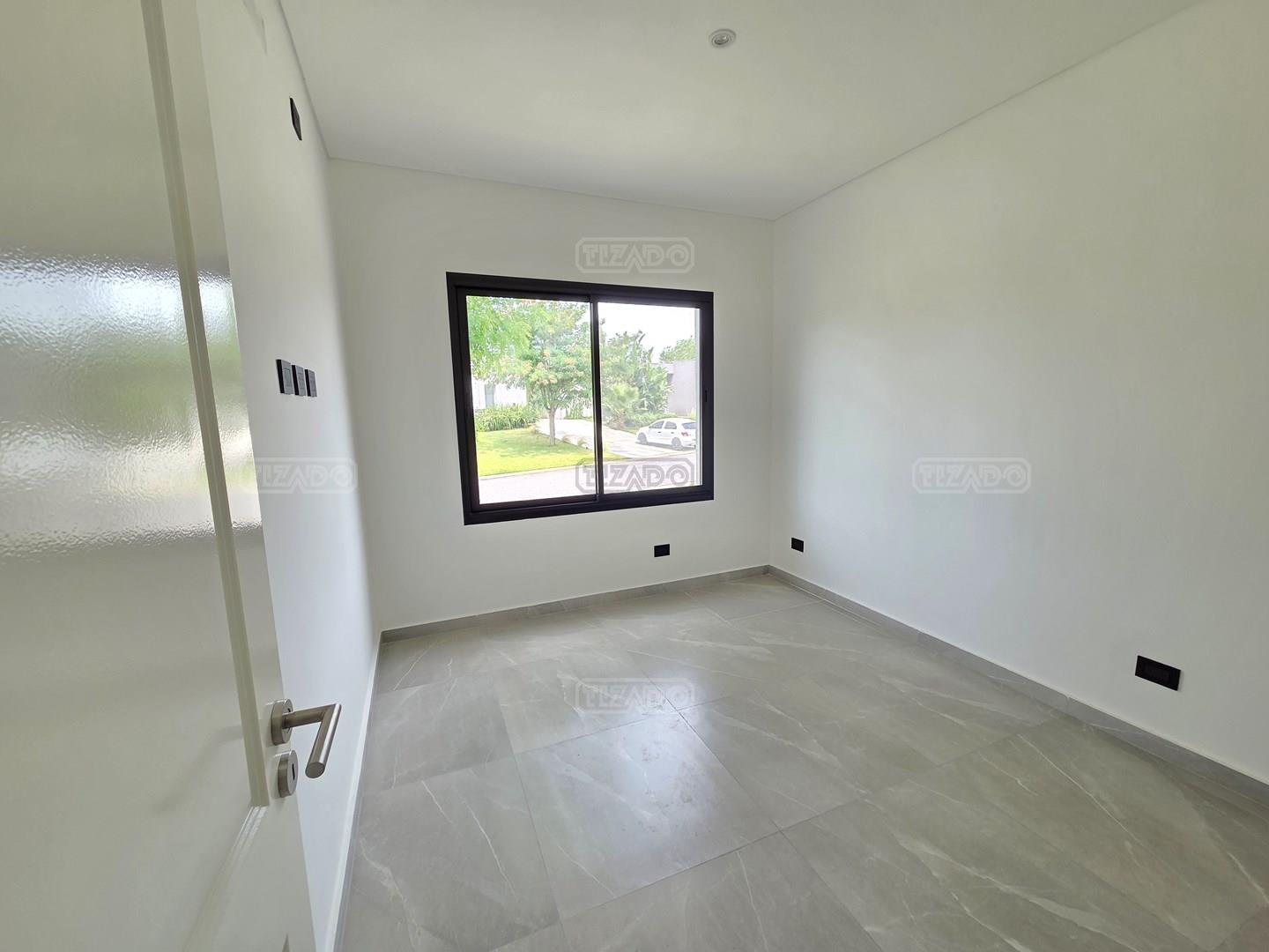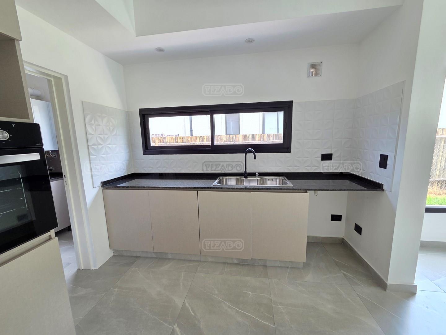 Casa sobre lote de 746m2 desarrollada en una planta con orientación NORESTE. Distribución: acceso principal con puerta pivoteante PVC Oblak, estudio o cuarta habitación, baño completo, amplio living-comedor en doble altura, con molduras para luminarias embutidas y salida directa a galería, cocina integrada de generosas dimensiones, lavadero con entrada independiente, dormitorio principal con salida al parque, baño en suite y vestidor completo, dos dormitorios al frente con placares terminados, baño completo compartido, galería semicubierta con parrilla, isla con mesada y bacha, baño completo en galería más ducha exterior de cortesía, piscina de hormigón 7 x 3 m con equipo de filtrado. Entrada de adoquines con rampa para dos vehículos. Detalles Constructivos: Construcción tradicional sobre platea de hormigón y techo de losa, revestimiento exterior impermeable texturado pisos de porcelanato de primera marca, mesadas de mármol con muebles bajo mesada y alacenas, aberturas de aluminio negro con DVH (A30) y mosquiteros, calefacción sectorizada por piso radiante con caldera dual italiana Baxi, preinstalaciones para equipos de aire acondicionado en ambientes principales, cocina con anafe a gas y horno eléctrico empotrable, iluminación interna y externa instalada. SAN MATIAS Se trata de una fracción de 202 ha, con 1261 lotes y una superficie promedio de 830 m2, en una zona de antiguas quintas residenciales, sobre las barrancas que anteceden al río Luján, con añosas arboledas y magníficas vistas. Cuenta con más de 2.000 árboles distribuidos en 120 diferentes especies entre las que se destacan Cipreses, Álamos, Pinos, Liquidámbares, Eucaliptos, Fresnos, Robles, Casuarinas y Ombúes. UBICACIÓN San Matías se encuentra a la altura del kilómetro 44 de la Panamericana (ramal Escobar), a menos de 2 km de la autopista, de los centros comerciales, recreativos y de salud, y en la entrada de otros importantes emprendimientos residenciales de la zona, que actualmente están en proyecto o construcción. Para estos emprendimientos se proyecta un acceso en común, que incluirá una nueva salida desde la panamericana. (Coordenadas GPS: S 34• 21.296 // W 058•45.438 ) INFRAESTRUCTURA Y SERVICIOS El proyecto está conformado por cinco áreas sobre una barranca alta con magníficas vistas, con zonas comunes atractivas, lagunas y parques arbolados. • calles asfaltadas • redes subterráneas de agua potable • electricidad • gas y cloacas • alambrados perimetrales • parquización de los espacios comunes • edificios administrativos y de acceso • canchas de tenis • SUM