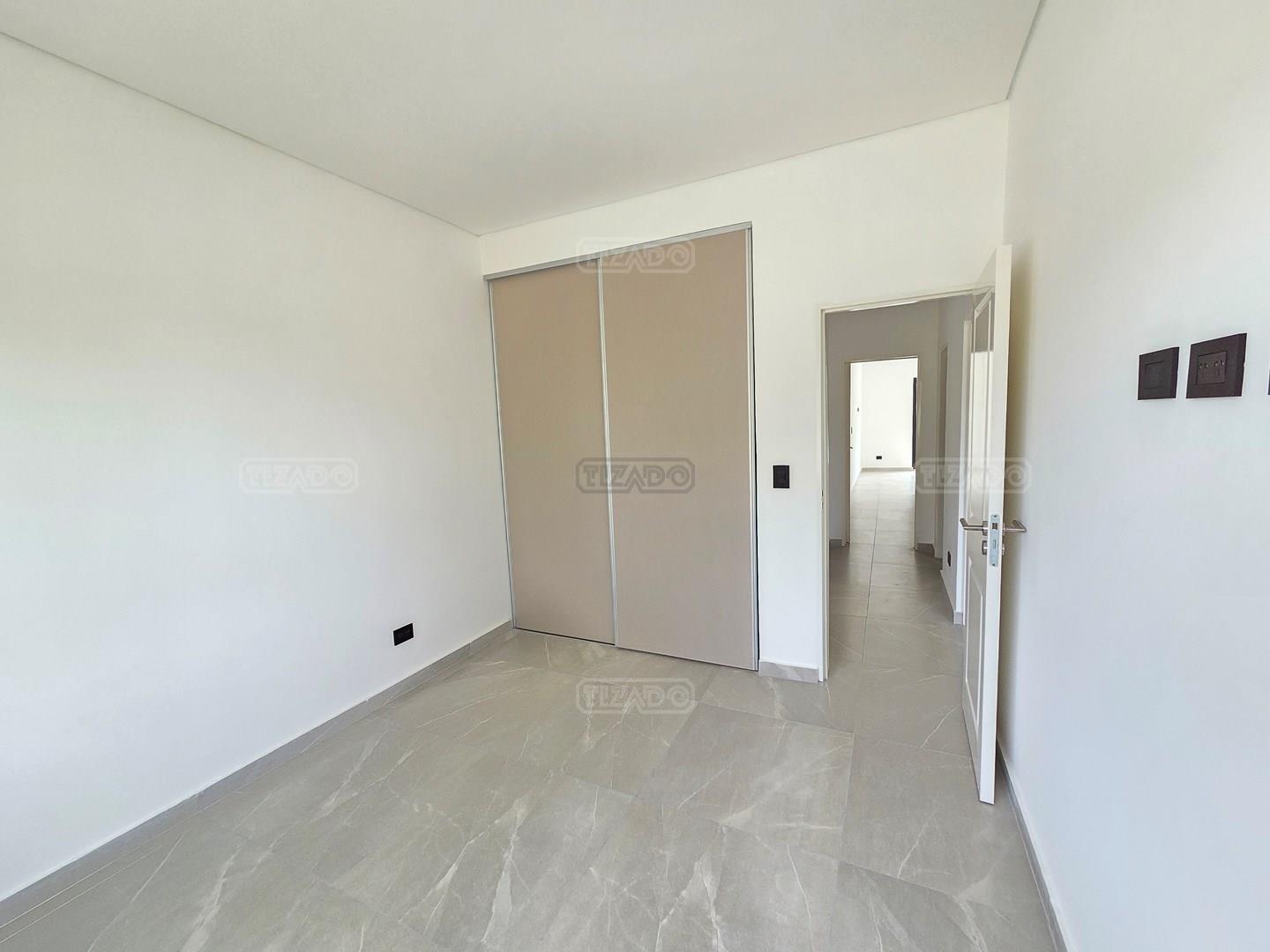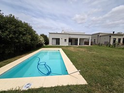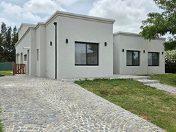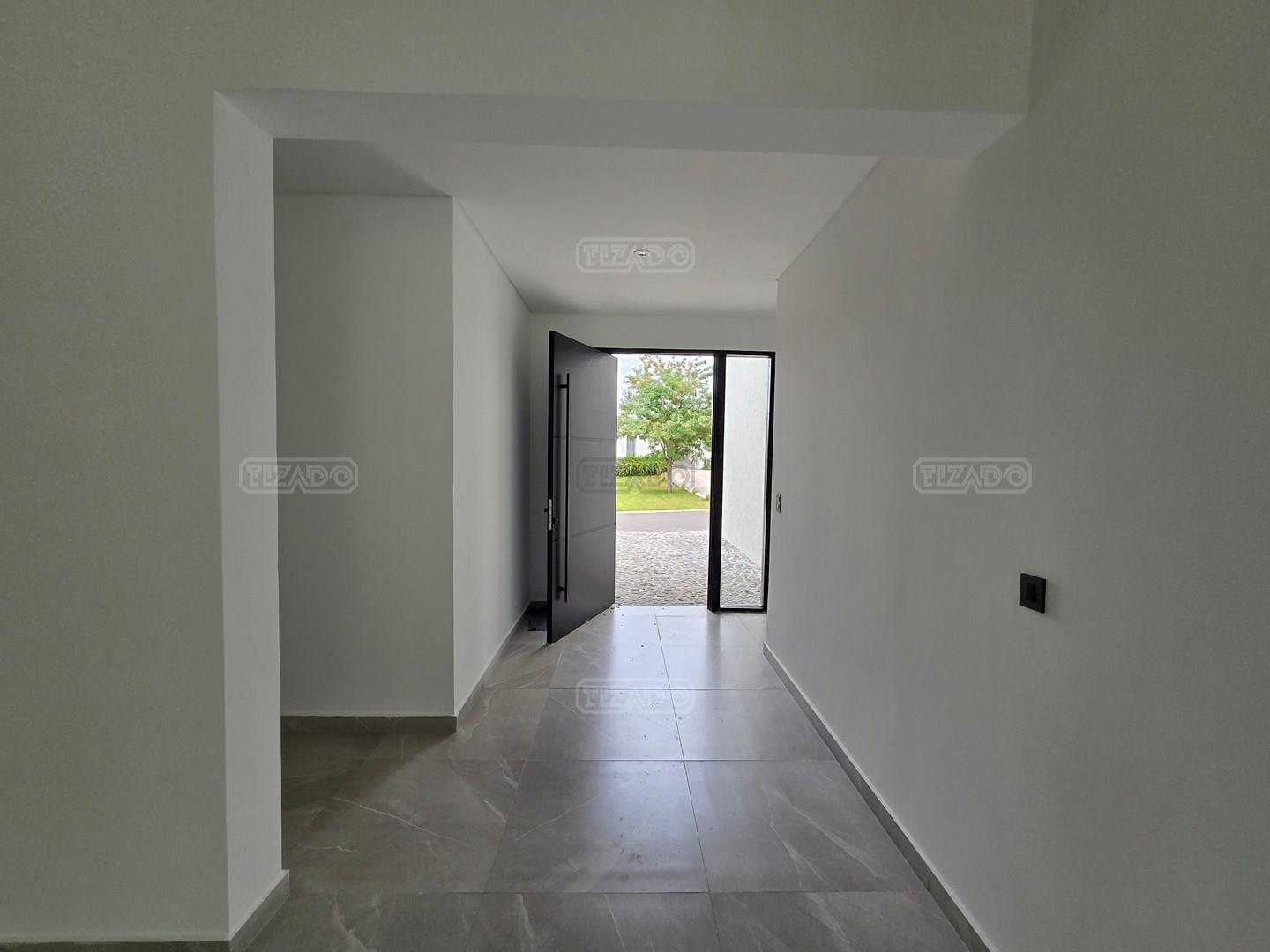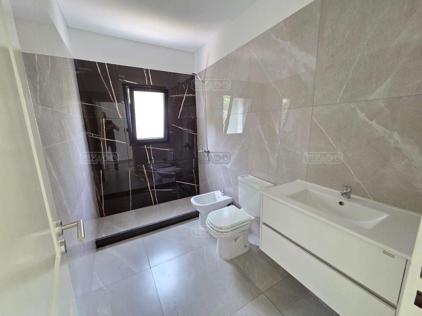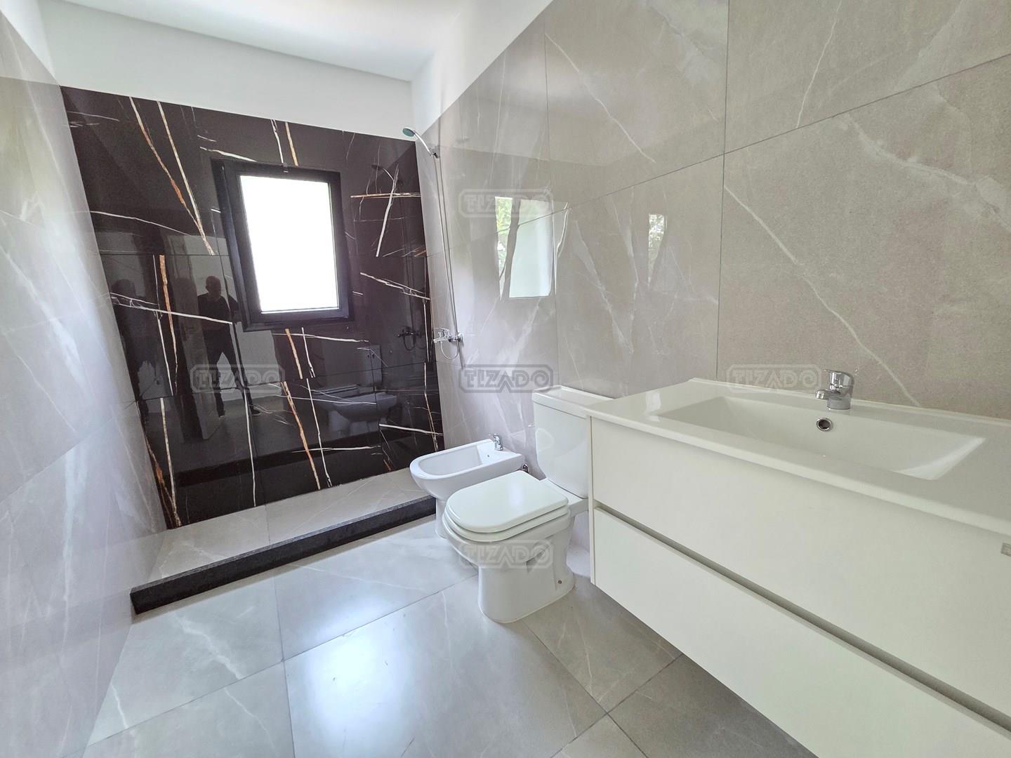 Casa sobre lote de 746m2 desarrollada en una planta con orientación NORESTE. Distribución: acceso principal con puerta pivoteante PVC Oblak, estudio o cuarta habitación, baño completo, amplio living-comedor en doble altura, con molduras para luminarias embutidas y salida directa a galería, cocina integrada de generosas dimensiones, lavadero con entrada independiente, dormitorio principal con salida al parque, baño en suite y vestidor completo, dos dormitorios al frente con placares terminados, baño completo compartido, galería semicubierta con parrilla, isla con mesada y bacha, baño completo en galería más ducha exterior de cortesía, piscina de hormigón 7 x 3 m con equipo de filtrado. Entrada de adoquines con rampa para dos vehículos. Detalles Constructivos: Construcción tradicional sobre platea de hormigón y techo de losa, revestimiento exterior impermeable texturado pisos de porcelanato de primera marca, mesadas de mármol con muebles bajo mesada y alacenas, aberturas de aluminio negro con DVH (A30) y mosquiteros, calefacción sectorizada por piso radiante con caldera dual italiana Baxi, preinstalaciones para equipos de aire acondicionado en ambientes principales, cocina con anafe a gas y horno eléctrico empotrable, iluminación interna y externa instalada. SAN MATIAS Se trata de una fracción de 202 ha, con 1261 lotes y una superficie promedio de 830 m2, en una zona de antiguas quintas residenciales, sobre las barrancas que anteceden al río Luján, con añosas arboledas y magníficas vistas. Cuenta con más de 2.000 árboles distribuidos en 120 diferentes especies entre las que se destacan Cipreses, Álamos, Pinos, Liquidámbares, Eucaliptos, Fresnos, Robles, Casuarinas y Ombúes. UBICACIÓN San Matías se encuentra a la altura del kilómetro 44 de la Panamericana (ramal Escobar), a menos de 2 km de la autopista, de los centros comerciales, recreativos y de salud, y en la entrada de otros importantes emprendimientos residenciales de la zona, que actualmente están en proyecto o construcción. Para estos emprendimientos se proyecta un acceso en común, que incluirá una nueva salida desde la panamericana. (Coordenadas GPS: S 34• 21.296 // W 058•45.438 ) INFRAESTRUCTURA Y SERVICIOS El proyecto está conformado por cinco áreas sobre una barranca alta con magníficas vistas, con zonas comunes atractivas, lagunas y parques arbolados. • calles asfaltadas • redes subterráneas de agua potable • electricidad • gas y cloacas • alambrados perimetrales • parquización de los espacios comunes • edificios administrativos y de acceso • canchas de tenis • SUM
