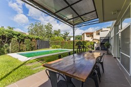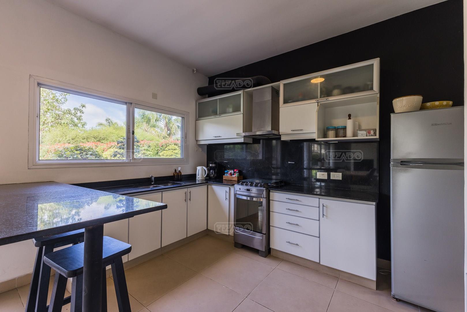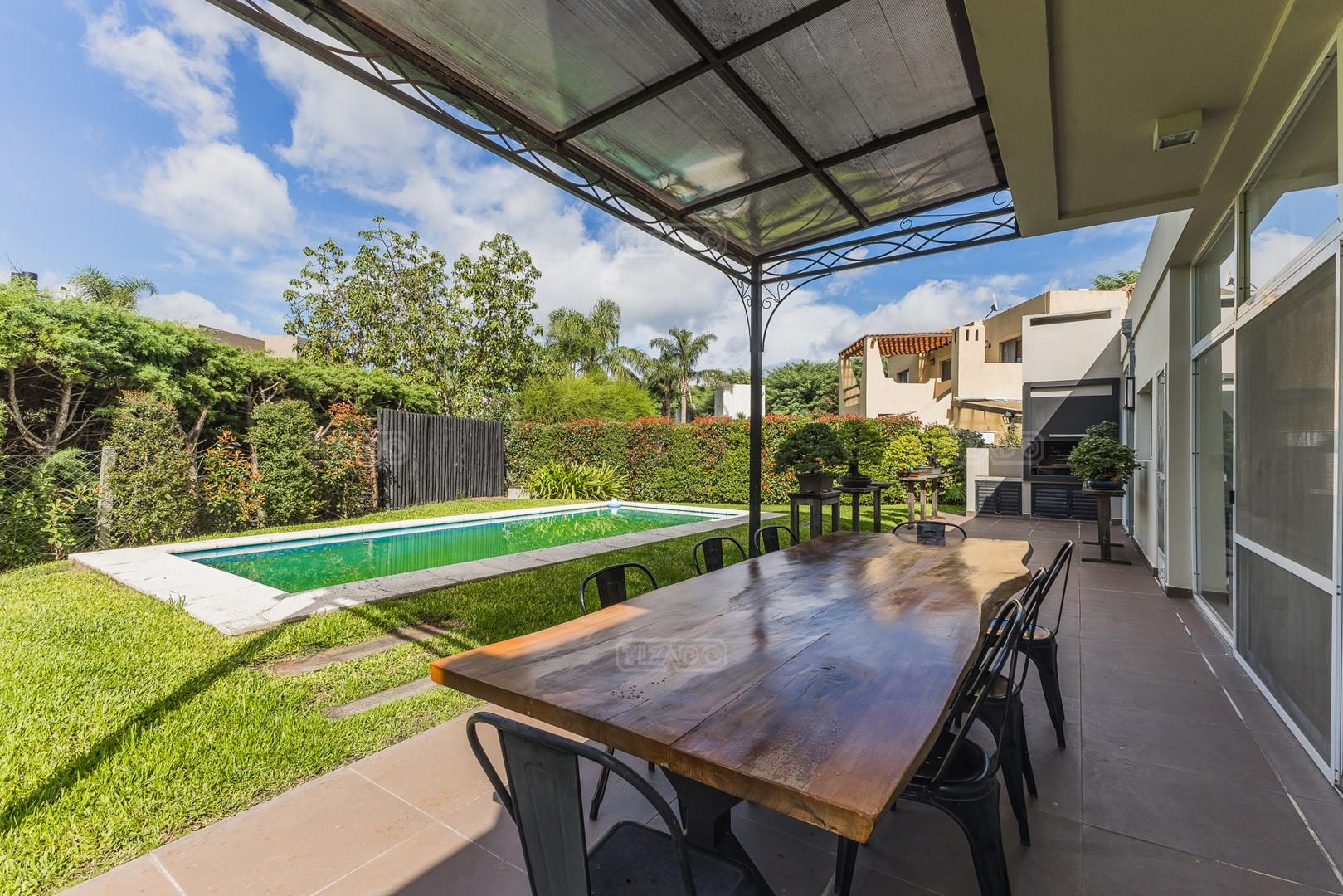 Es una casa apto crédito, muy bien ubicada a pasos de la entrada del Barrio Sta. Clara Puerta 1, en frente al Shoping Vila Terra, Estación Shell y Supermercado Jumbo. El Barrio cuenta con canchas de tenis, padle, voley y futbol. Dos plazas con juegos para chicos. Bajada nautica y muelle a una de las lagunas más grandes de la zona de 42 has. En la PB: tiene living con hogar y comedor con salida a la galería con parrilla. Cocina integrada con barra con anafe y horno a gas, estractor. Dos cuartos en esquina con placard con un baño completo con ante baño con doble bacha con bañadera y ventana. Toilet. Lavadero en el garage con porton corredizo. Dependencia con baño completo. En la PA: suite principal con vestidor con baño con bañadera y ventana. Está la losa preparada como opcióna para agrandar la casa. Pileta y jardín con grama bahiana. Riego automático. Calefacción losa radiante sectorizado por ambiente. Mosquiteros y cortinas rolers en ventanas. piso de porcelanato. Un aire frio/calor en cada cuarto y en el living. Las expensas incluyen agua. Vecino al Club Newman y también a el pintoresco Paseo Mendoza, en Maschwitz, con su precursor el Mercado de Maschwitz. Torrepueblo, en Benavídez, también ofrece lugares donde comer, pero su oferta es amplia. Desde shows, hasta suites y locales de distintos rubros. Maschwitz Mall, sobre la colectora Este, casi a la entrada de Maschwitz, es otra opción. La zona de compras y gastronomía se combina con área de juegos para niños. Además, hay servicios de salud, financieros y cuenta con un gimnasio. Supermercado Mayorista Yaguar, por su parte, en el km 42,5 de la Panamericana, es el más cercano en su tipo, a escasos 10 minutos de Villa Nueva. A solo 2 kilometros de la ruta Panamericana, ramal Escobar a través de la calle La Bota; por la calle Dean Funes o por Acceso Tigre, tomando el Camino de los Remeros, luego Ruta 27 hasta la Calle Italia, desembocando en el Boulevard principal “Todos los Santos”. Tiene rapidos y variados accesos, a 15 minutos del centro de Tigrea y a 35 min. de Capital Federal. En Benavídez, se cuentan, entre otras instituciones, los siguientes colegios: Del Faro, Instituto Estrada, San Isidro Delta School, Almafuerte, Northfield School, El Portal del Norte, Santa Teresa, Tigre Montessori School En Maschwitz también la oferta es variada. Entre otros colegios, están los siguientes: Los Álamos College, San Pablo, Carlos Maschwitz, Domingo Faustino Sarmiento, Instituto Superior Dr. Nicolás Avellaneda, Waldorf Clara de Asís, San Francisco, Farmingdale, San Antonio de PaduaY del otro lado de la Panamericana, en Garín, se destacan los colegios Arrayanes y Saint Francis. A estos se suman la sede de la UCES y el Centro Universitario Tigre (ambos en ese partido). Y asimismo el Polo de Educación Superior Escobar, donde se puede cursar el CBC de la UBA. Salud: El avance de los servicios de salud también se multiplicó en paralelo con Villa Nueva. Hoy, a no más de 15 minutos, se encuentran las sedes, en Escobar, del Hospital Universitario Austral y del Fleni. Pero, además, hay otros grupos médicos que atienden distintas prepagas y obras sociales. Grupo Médico Maschwitz, Prevent Instituto de Cardiología, Centro Médico Villanueva. Servicios: Agua Corriente Cloaca, Gas Natural, Internet, Electricidad, Pavimento, Cable, Agua Potable, WiFi 24 Hours, Security Seguridad privada y nocturna, Televisión - Satelital.