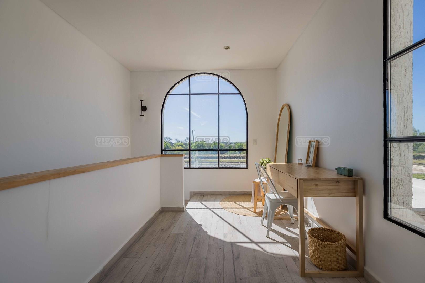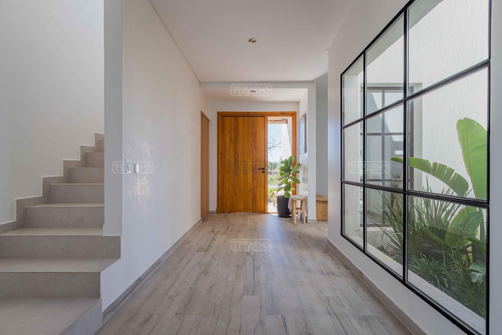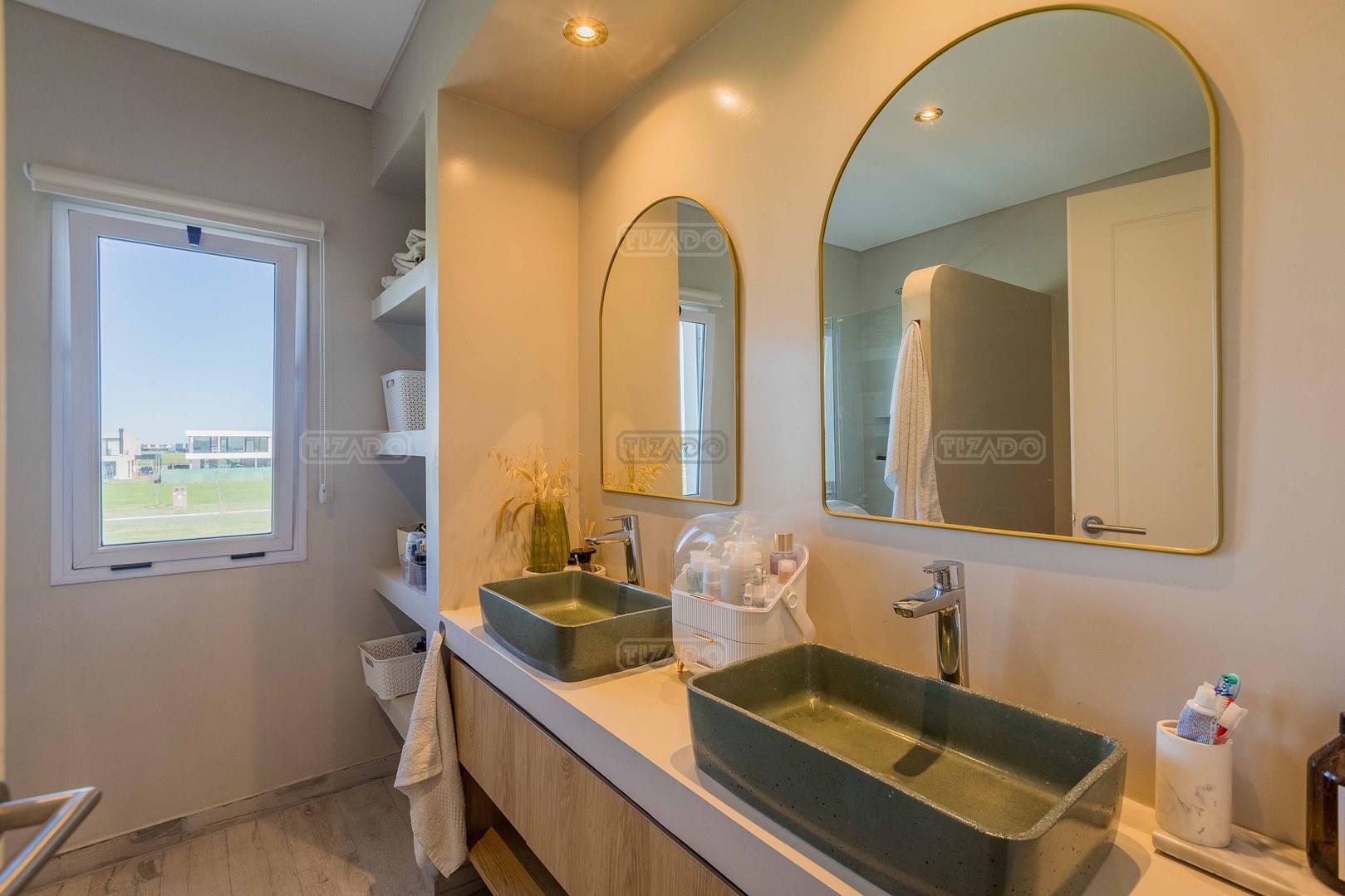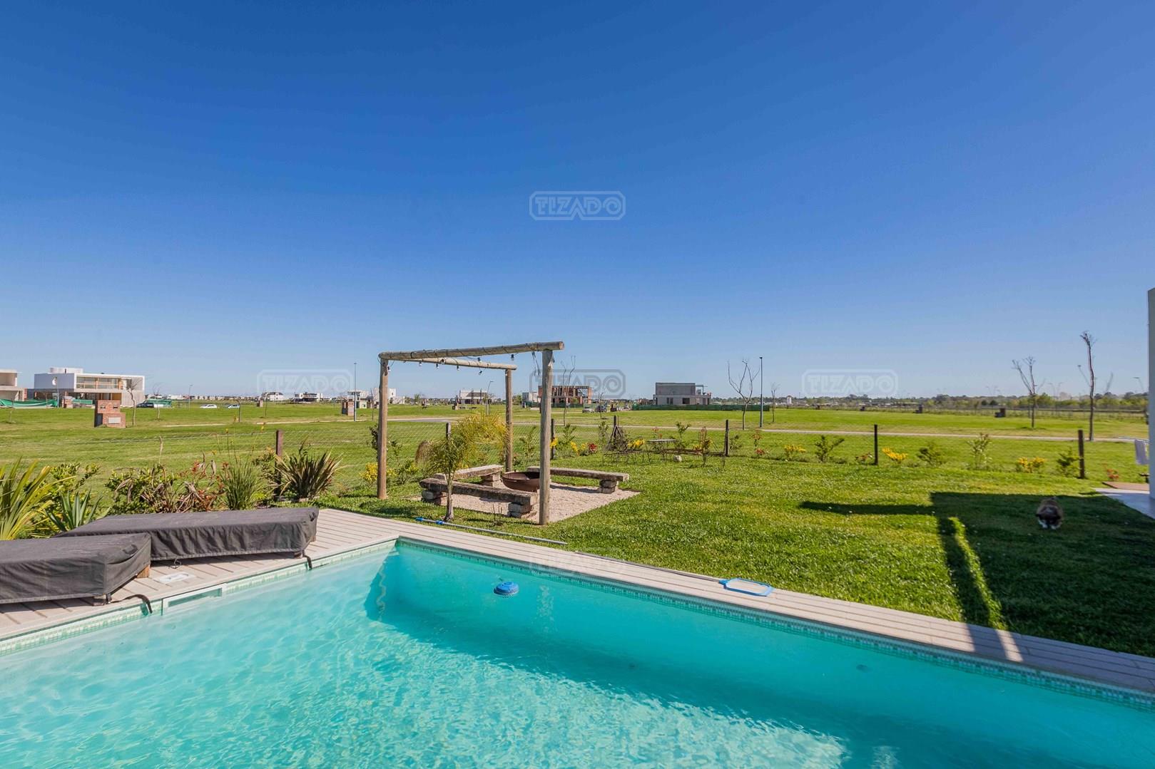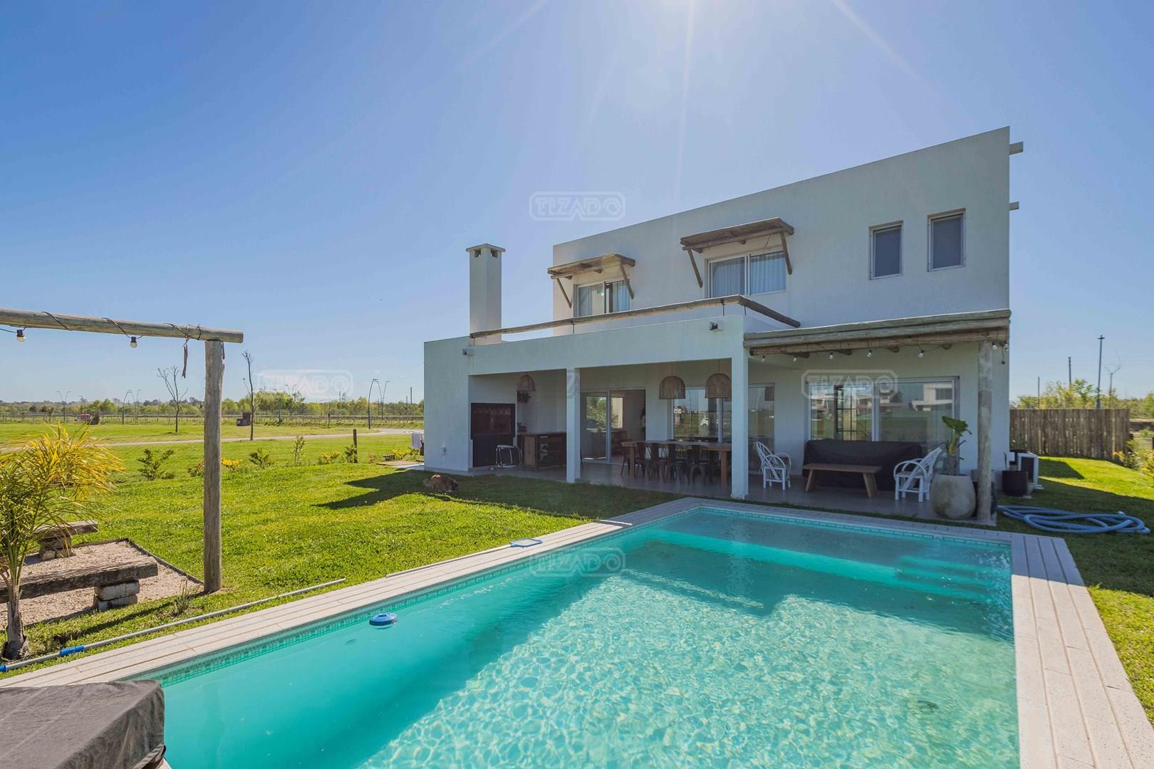 Muy linda casa ubicada en el barrio Amarras. La casa se despliega en dos plantas que separan perfectamente las áreas sociales de las privadas. -En planta baja, te recibe un hall con puerta de pinotea, seguido por un living comedor amplio y luminoso, con salida directa al jardín. La cocina, equipada con muebles completos, se conecta de forma práctica con el área social. Además, cuenta con un toilette y un espacio versátil que puede funcionar como playroom o dormitorio de huéspedes, con baño con ducha. -En planta alta: una master suite con vestidor y baño privado, más dos dormitorios con placard que comparten un baño completo con bañera. Todo distribuido desde un hall que organiza los espacios con lógica y comodidad. Exterior: Amplia galeria con barra, equipada con parrilla para grandes encuentreos. El jardín con riego automático. La pileta con solarium y baño exterior con ducha suma practicidad para el uso diario. Además, la cochera techada para dos autos y espacio descubierto para dos más resuelve la logística sin complicaciones. La pileta se entrega revestida, todos los ambientes tienen aire acondicionado. Coordinar visita para verla, Tizado Puertos.