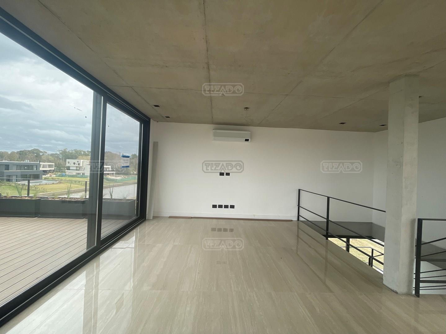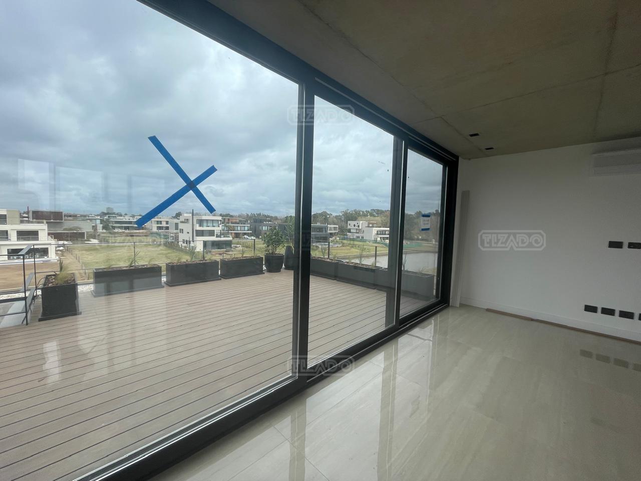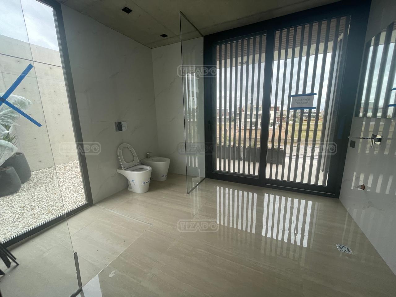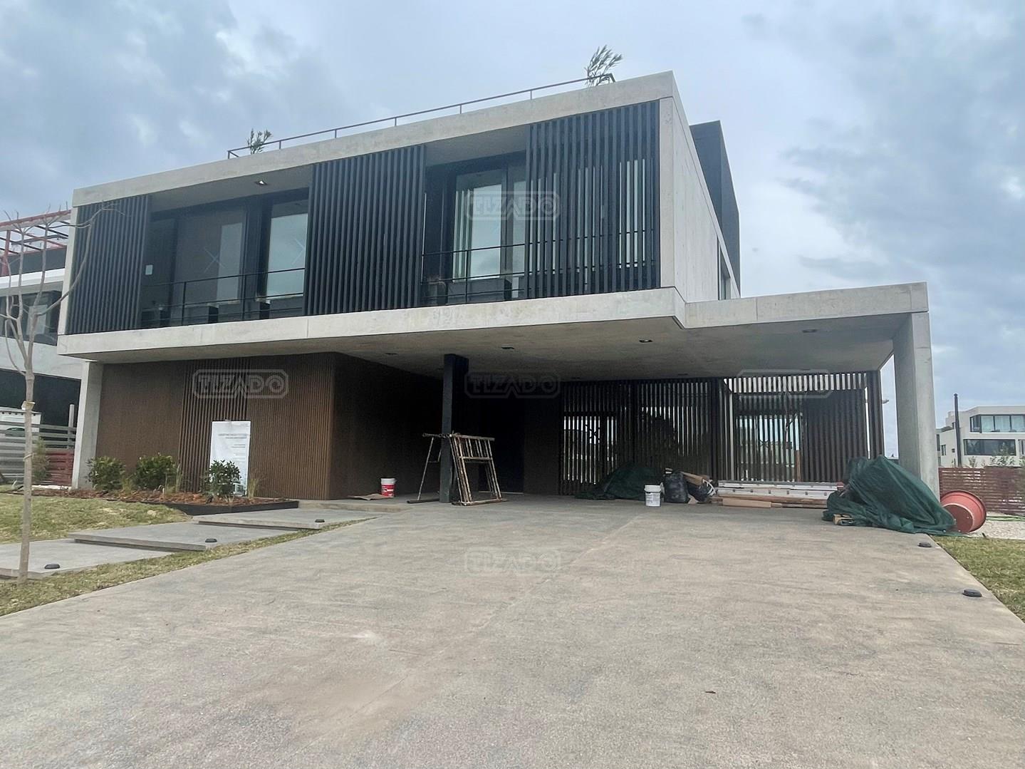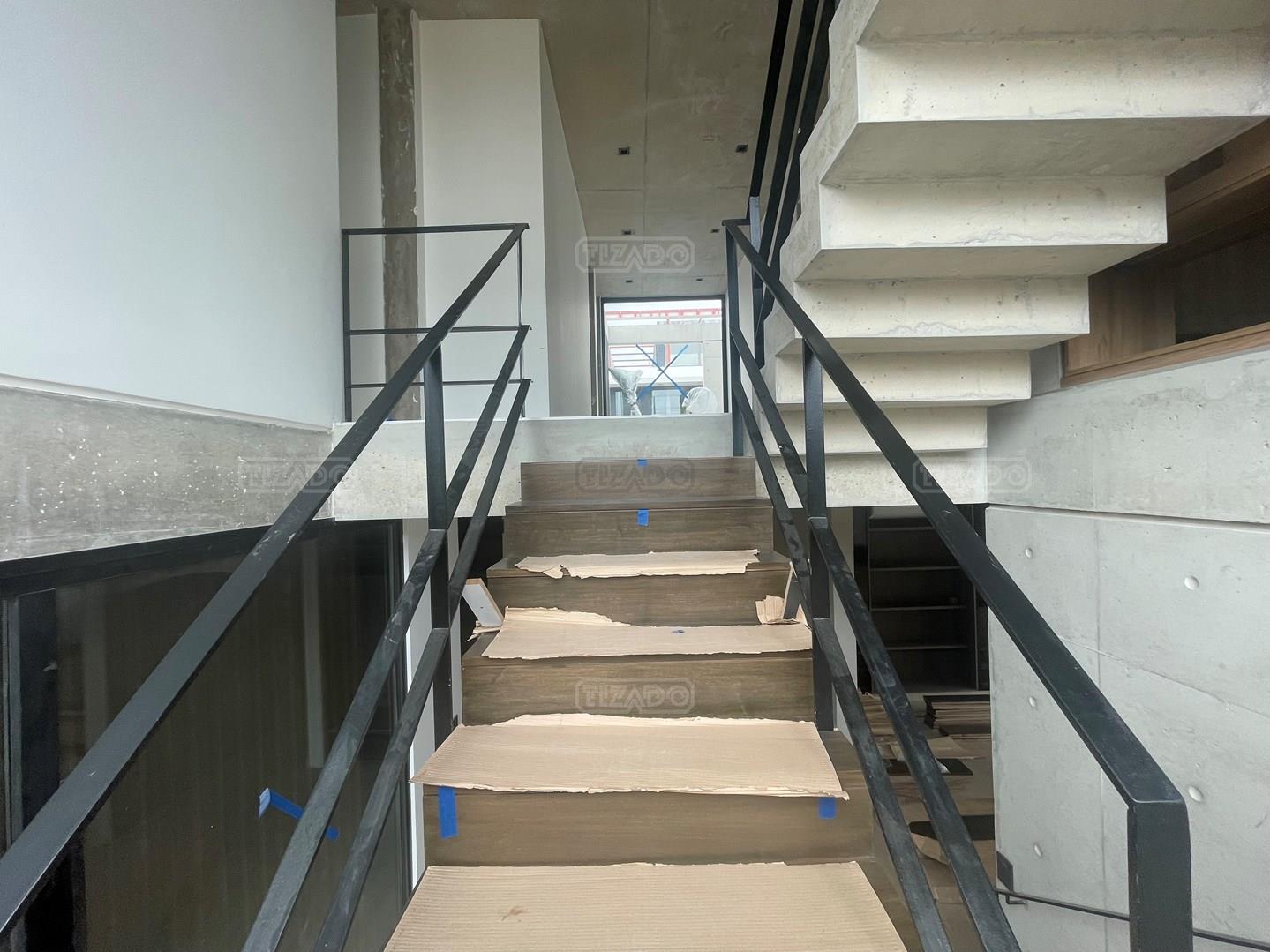 Plana baja: - Hall de entrada con placard de recepción. - Living / Comedor con salida a la galería. - Toilette. - Cocina con isla semi-integrada al living comedor. Salida a la galería. - Family integrado a la cocina - Lavadero independiente con salida al exterior. - Dependencia de servicio con baño completo con ducha. Primer planta: Acceso por escalera. - Hall de distribución. - Dormitorio principal en suite con vestidor. Baño completo con doble bacha y box de ducha. Salida a terraza privada. - 3 habitaciones en suite con placard y baño completo. - Escritorio o playroom Segunda planta: Acceso por escalera. - Sum con gran vista y salida a la terraza. - Cocina. - Baño completo. Exterior: - Galería cubierta con parrilla y barra. - Baño exterior con ducha. - Jardín parquizado con riego automático. - Pileta con revestimiento de venecitas y borde infinito. - Garaje cubierto para tres autos. MEMORIA DESCRIPTIVA: Hormigón visto en tabiques exteriores y cielorrasos. Revestimientos interiores y muebles de madera enchapada lustrada. Puertas de madera a medida. Aberturas en P.V.C. negro con DVH (doble vidrio). Calefacción por piso radiante mediante calderas Aire acondicionado sistema VRV