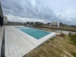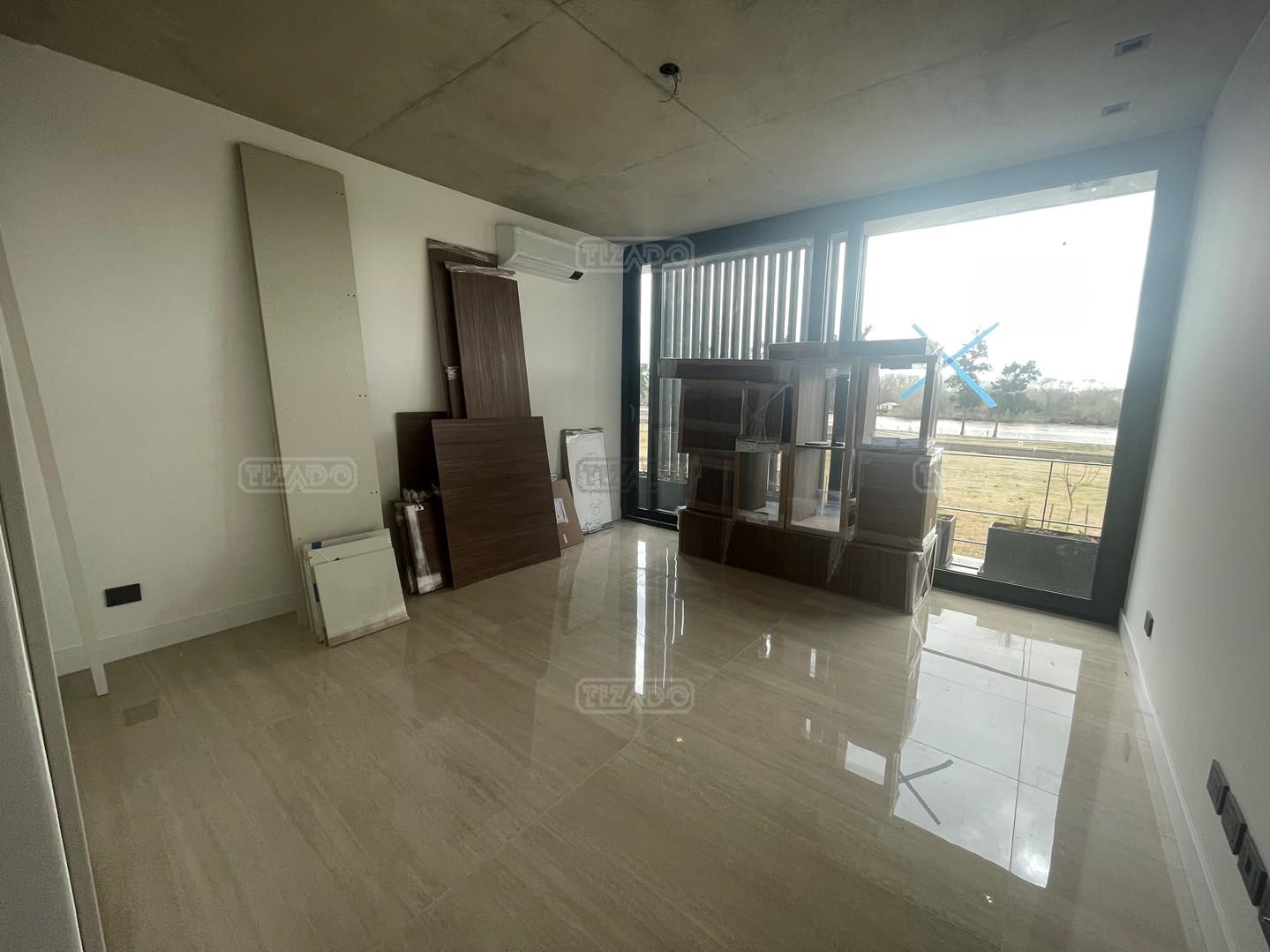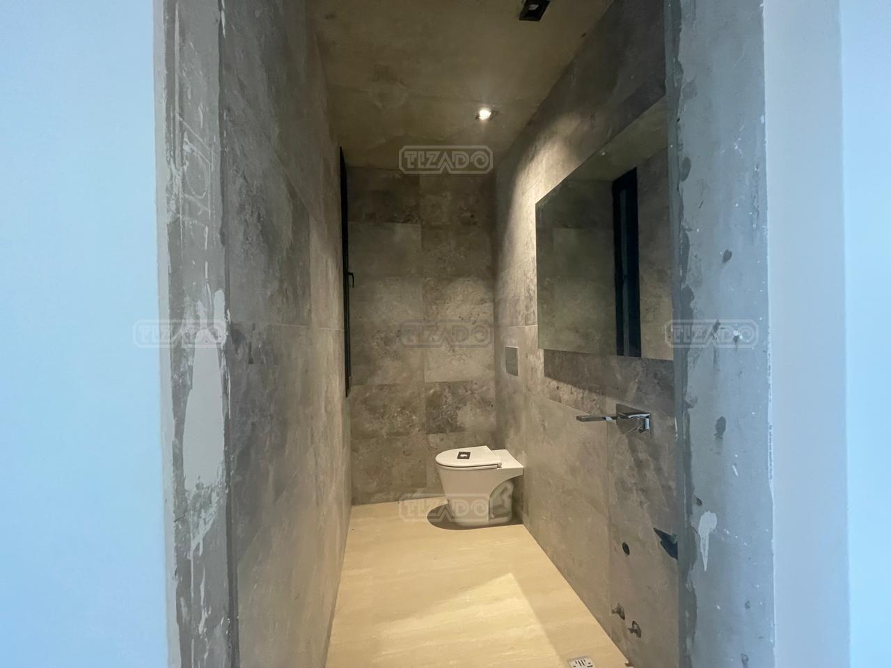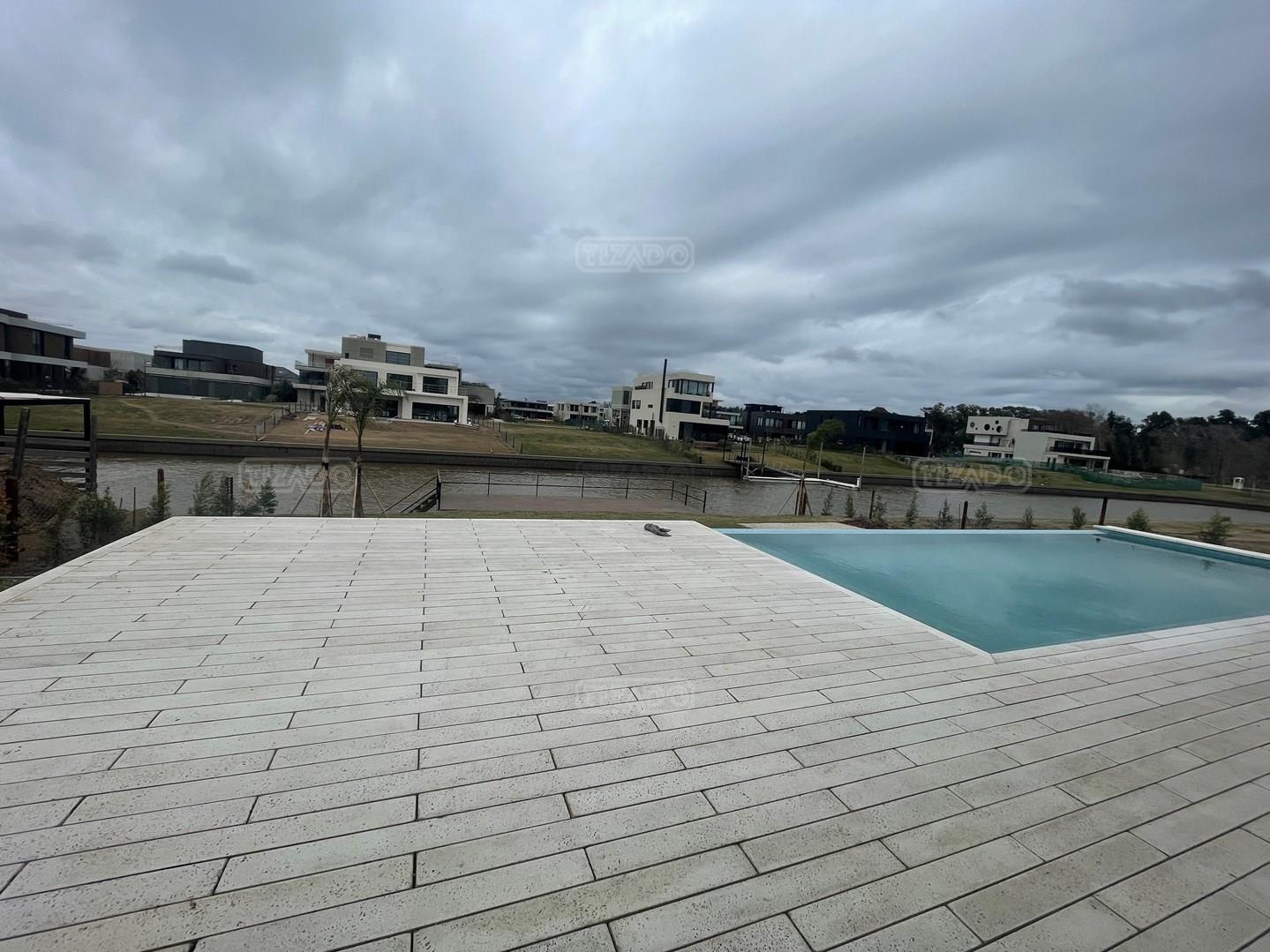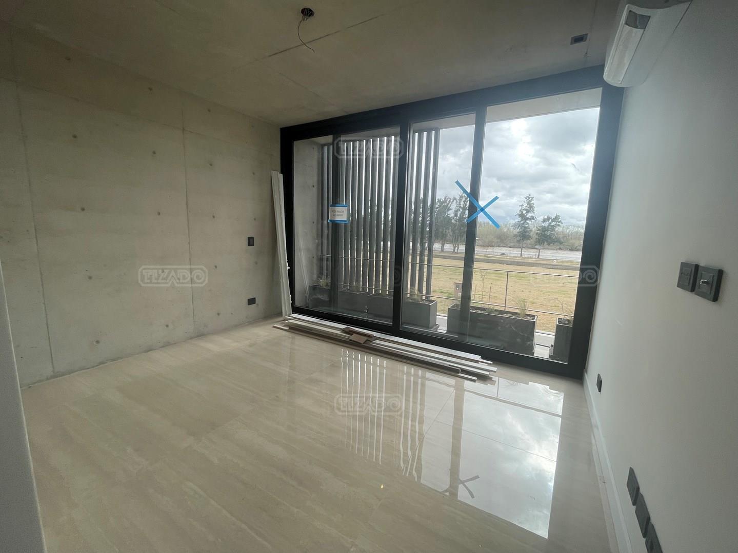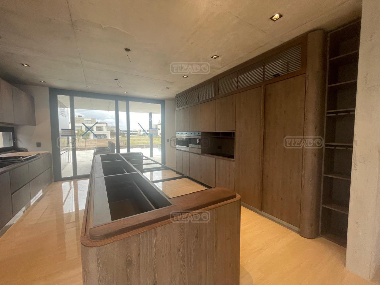 Plana baja: - Hall de entrada con placard de recepción. - Living / Comedor con salida a la galería. - Toilette. - Cocina con isla semi-integrada al living comedor. Salida a la galería. - Family integrado a la cocina - Lavadero independiente con salida al exterior. - Dependencia de servicio con baño completo con ducha. Primer planta: Acceso por escalera. - Hall de distribución. - Dormitorio principal en suite con vestidor. Baño completo con doble bacha y box de ducha. Salida a terraza privada. - 3 habitaciones en suite con placard y baño completo. - Escritorio o playroom Segunda planta: Acceso por escalera. - Sum con gran vista y salida a la terraza. - Cocina. - Baño completo. Exterior: - Galería cubierta con parrilla y barra. - Baño exterior con ducha. - Jardín parquizado con riego automático. - Pileta con revestimiento de venecitas y borde infinito. - Garaje cubierto para tres autos. MEMORIA DESCRIPTIVA: Hormigón visto en tabiques exteriores y cielorrasos. Revestimientos interiores y muebles de madera enchapada lustrada. Puertas de madera a medida. Aberturas en P.V.C. negro con DVH (doble vidrio). Calefacción por piso radiante mediante calderas Aire acondicionado sistema VRV