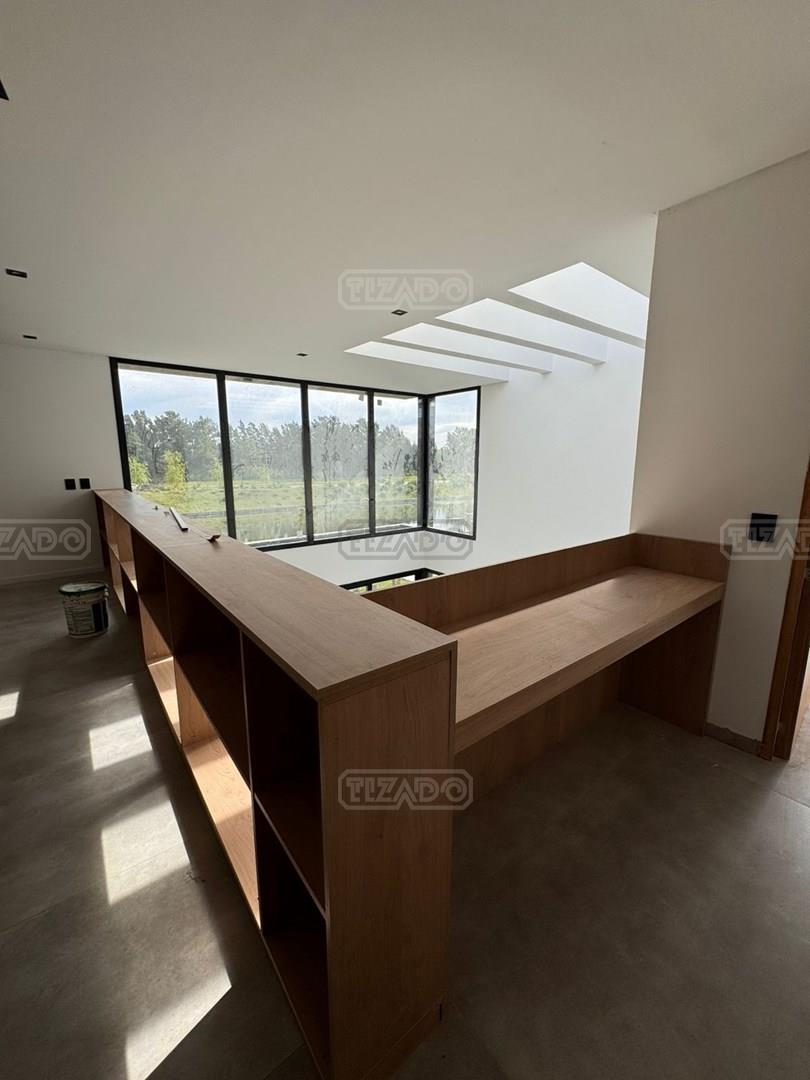 PLANTA BAJA: Living doble altura con aberturas en 2da losa, Dependencia de servicio con baño, escritorio con acceso exterior e interior PLANTA ALTA: 1 Master Suite, 3 Junior Suite, CARACTERISTICAS: Aberturas A40 negras galvanizadas, Sanitarios Roca, Griferías Peirano, Muebles de Mobiline, Puertas en madera altura 2,60 con cerraduras imantadas, Puerta principal en madera con cerradura electrónica wifi y face ID. EXTERIOR: Pileta con jacuzzi, Baño de pileta, parrilla. Se entregan con riego, parquización y paisajismo. La casa se termina para fines de Octubre 2025.