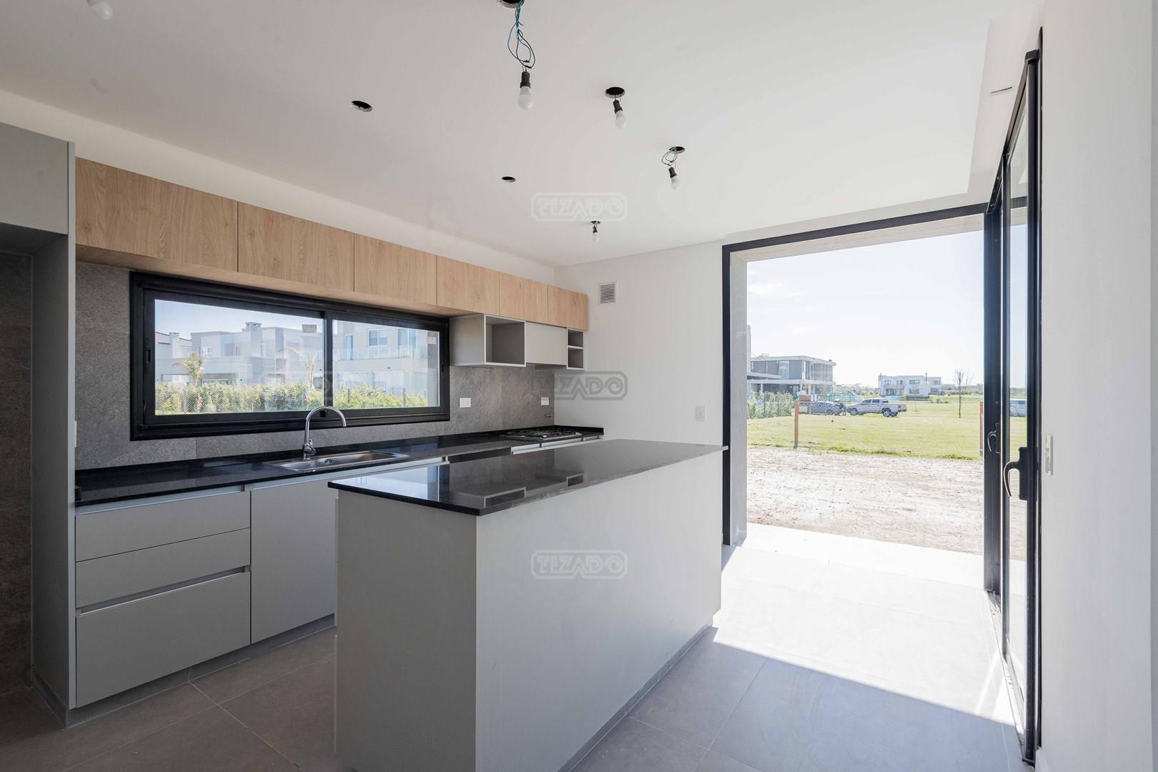 Casa moderna, desarrollada en dos plantas, realizada con construcción tradicional y volumen de hormigón armado, ubicada sobre lote interno de 620 metros, en el Barrio Riberas, Orientación Noreste, super luminosa. Al ingresar a la Planta Baja, Hall de acceso, jardín interno con ventanales que proyectan luz sobre la casa y luminosidad durante todo el día. Toilette de recepción y espacio recibidor, gran living comedor integrado con hogar, cocina con isla incorporada, muebles bajo mesada y alacenas, horno eléctrico y anafe a gas. Acceso a la galería, parrilla y jardín a través de los ventanales del living-comedor o de la cocina. Sobre el lateral derecho y con vista al frente, la casa cuenta con un escritorio o posible cuarto en planta baja, y lavadero y área de servicio con baño con acceso desde el exterior para uso de pileta, sobre el lateral izquierdo de la misma. Al frente, espacio semi-cubierto para dos vehículos y descubierto para dos mas. En la Planta alta, habitación principal en suite, con vestidor, baño y ante baño, terraza accesible y vista hacia el jardín. Sobre el frente, dos dormitorios con baño compartido. Pileta Aprobada en planos. Terminaciones: Cielorraso de galería, escritorio y cochera, de hormigón visto. Calefacción por piso radiante con termostato de ambiente. Agua fría y caliente con subidas independientes a cada baño. Pre instalación de aires acondicionados frío calor. Interiores y frentes de placard completos en los dormitorios. Zócalos de MDF pintados de blanco. Aberturas son A30 de Aluar color negro. La parrilla exterior se entrega con herraje incluido. Cielorrasos de placa de roca de yeso. En la Planta Baja, pisos de porcelanato de 90x90 color gris ILVA y en el interior de Planta Alta porcelanato simil madera ILVA. Acceso peatonal de cemento alisado. Escalera de micro cemento. Exterior tarquini y algunos detalles sobre el frente con simil porcelanato madera. Riberas cuenta con 418 lotes de 650 m2 promedio, lago propio de 7 hectáreas con salida navegable al lago central, Club House con pileta y canchas de tenis y Rápido acceso a la Ruta 25. (Las expensas incluyen Impuesto Municipal, ARBA, Agua y Club Puertos y están sujetas a modificaciones - Actualizadas a Agosto 2025). Vení a conocerla, coordina una visita! - Tizado, Inmobiliaria Oficial de Puertos.