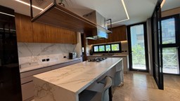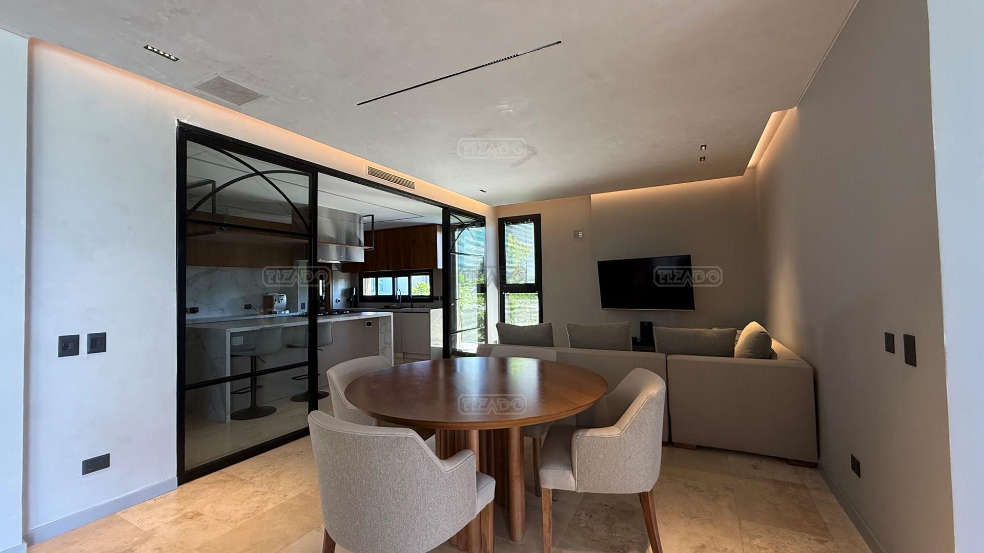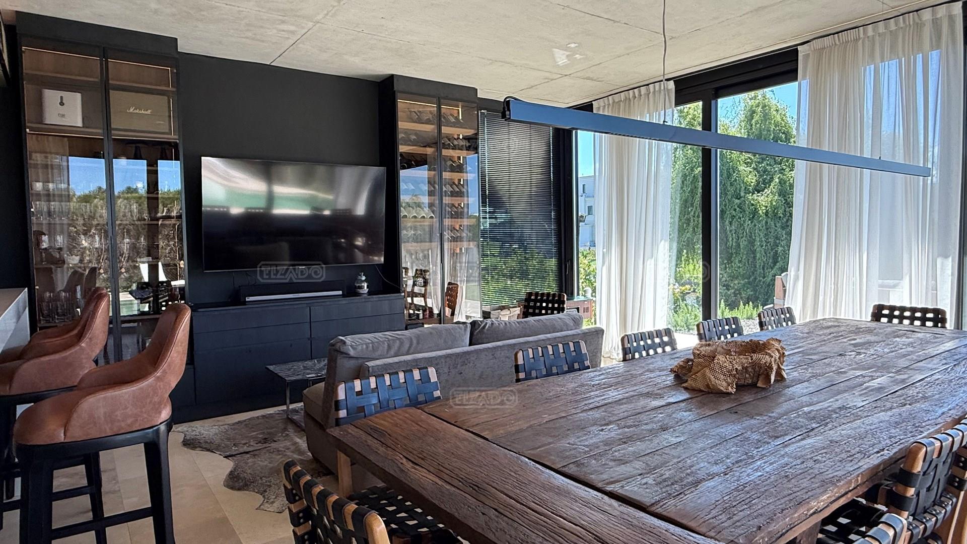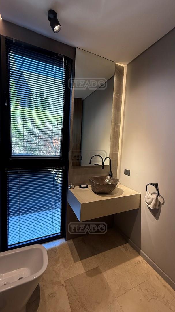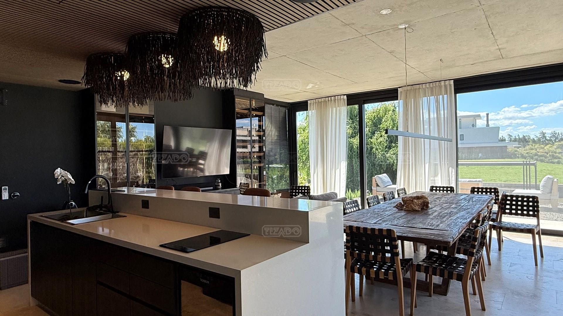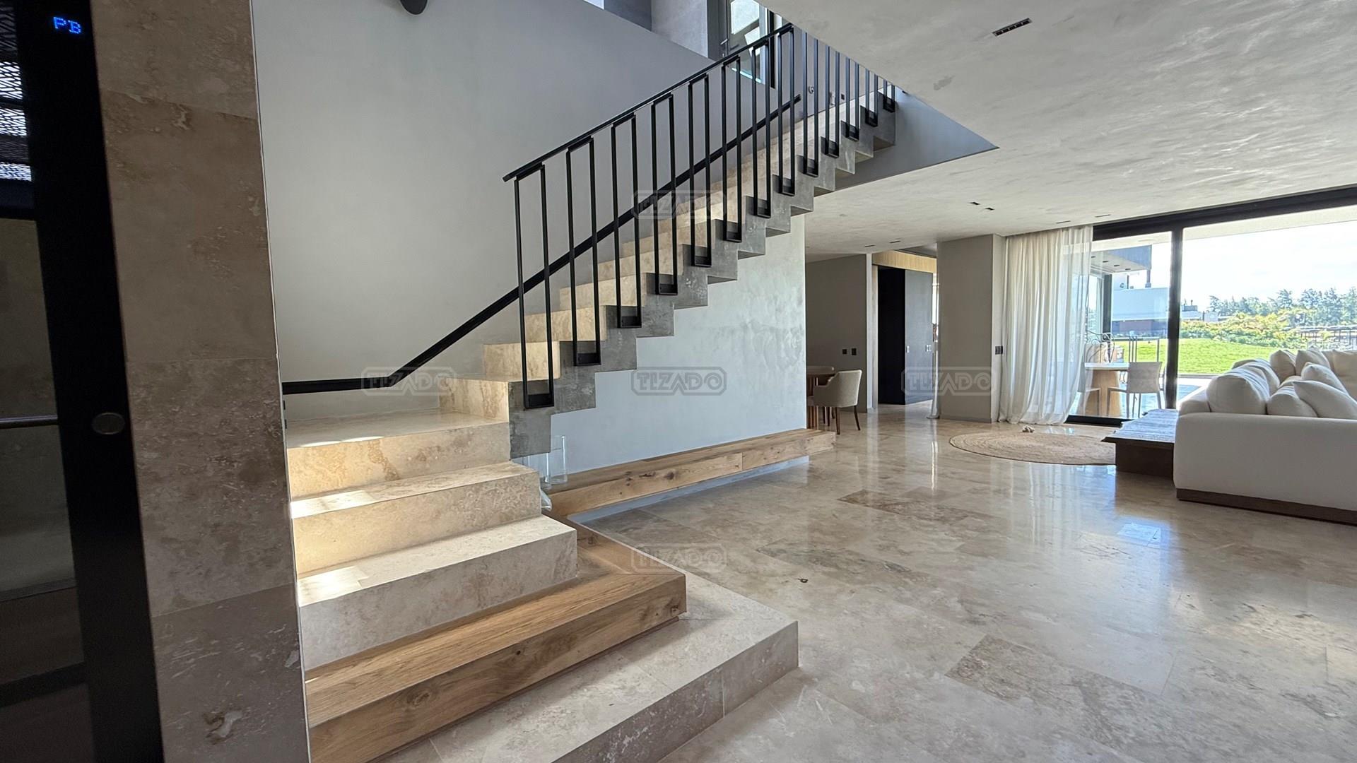 Excelente calidad constructiva y un diseño arquitectónico de excelencia con ASCENSOR PB: Hall de ingreso que accedes al ascensor, dormitorio o escritorio con baño completo importante living comedor escaleras que llevan a las plantas superiores, cocina amplia, y la casa se conecta a un quincha ubicado lateralmente con parrilla, barra , living propio e importante sector de mesada, posibilitando abrir ventanales, en PB también se encuentra el área de servicio PA cuatro dormitorios de los cuales dos son master suite mirando al rio con balcón propio y las otras dos suite mirando al frente de la casa, un play y terraza interna, subiendo un nivel mas que se puede acceder con el ascensor, contamos con una terraza que tiene vista 360 preciosa para el uso que cada uno quiera brindar La propiedad cuenta con losa radiante y Aire acondicionado central en toda la propiedad Materiales y terminaciones: Planta baja: Mármol travertino turco pulido mate en interiores y rústico en exteriores, incluyendo galería y pileta Planta alta: Pisos de madera de ingeniería, roble de Eslavonia en tablas anchas Mesadas DEKTON en toda la casa, garantizando durabilidad, estética y bajo mantenimiento Pileta revestida en mármol travertino, ideal para disfrutar del entorno natural del barrio Jardín parquizado con excelente orientación Noroeste Cocina y equipamiento de alta gama
