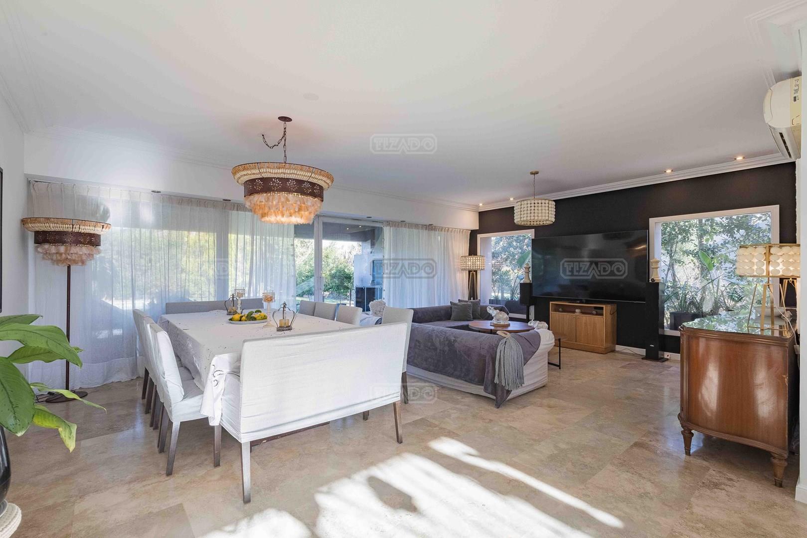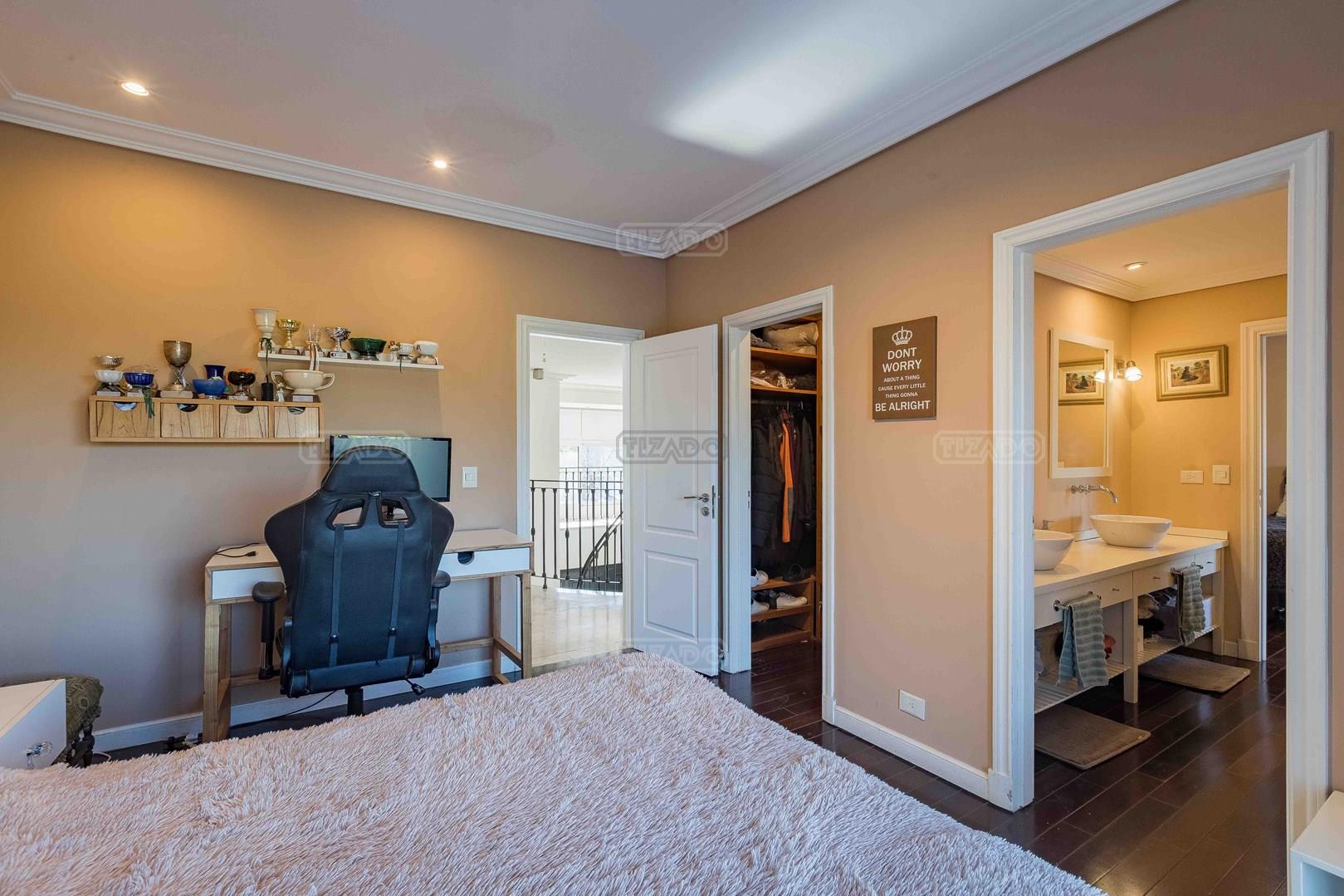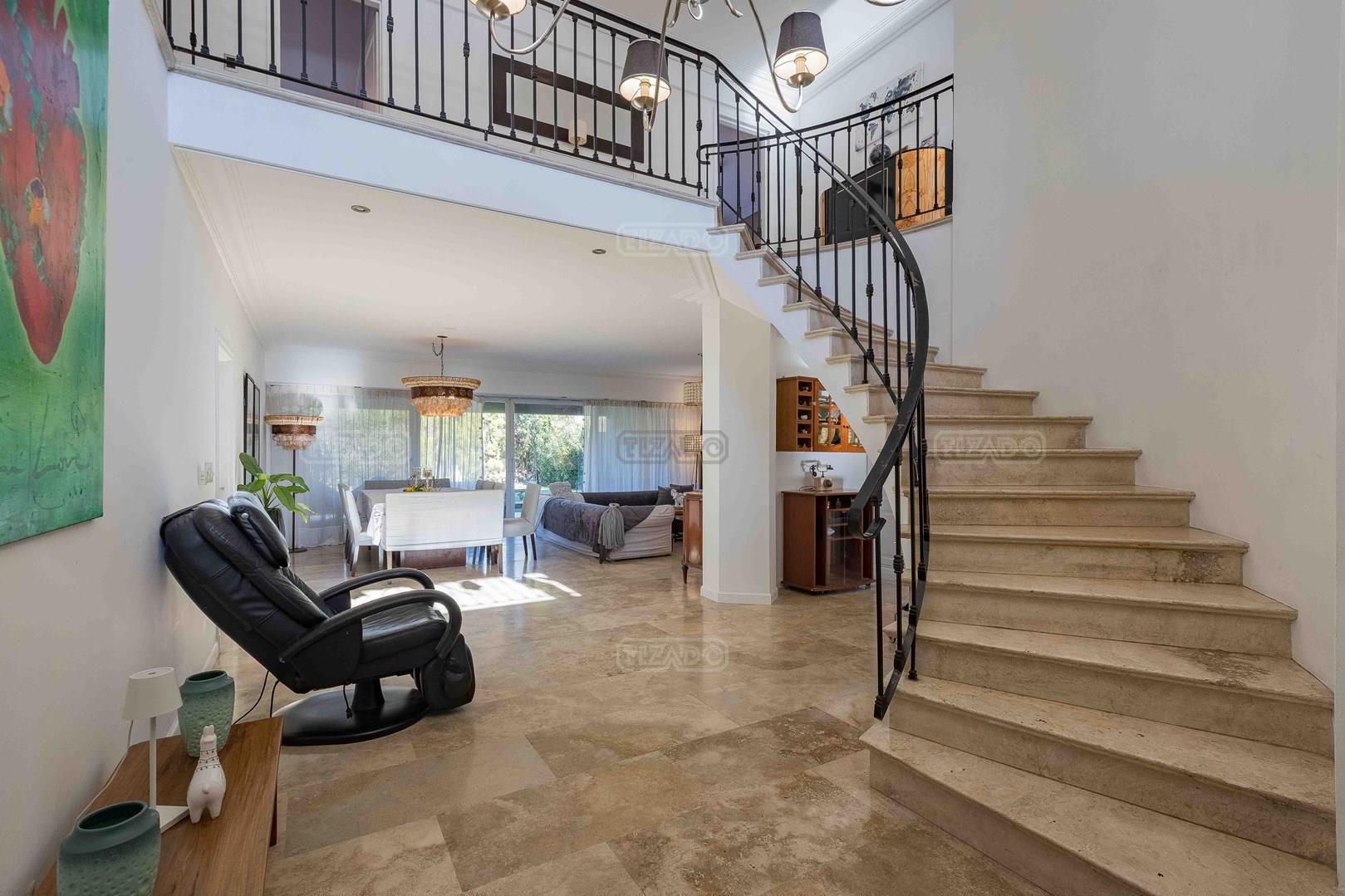 Excelente casa en venta barrio Las Glorietas, Nordelta Hermosa casa de grandes dimensiones y excelente calidad constructiva! Planta Baja: Importante acceso con hermosa escalera de hierro que balconea desde el primer piso al hall de ingreso. Gran Living comedor con ventanales con vista y salida a la galeria y jardin. Toilette. Dormitorio/gran oficina en PB. Cocina con isla muy grande con anafe, con mucho espacio de guardado y horno empotrado. Comedor diario super cómodo. Lavadero. Dependencia de servicio con baño. Planta Alta: Dormitorio principal en suite con gran vestidor y un baño muy importante con jacuzzi y ducha. Dos Suites Junior comparten un baño y otro dormitorio en suite. Segunda Planta: gran altillo con buen lugar de guardado. Detalles Constructivos: Muy buena calidad constructiva. Pisos de mármol. Calefacción por losa radiante. Aires acondicionados. Galería con parrilla. Pileta de natación con sistema de filtro. Muy buena calidad de construcción . Ubicada cerca del ingreso. Sobre el Barrio las Glorietas: Seguridad y servicios de emergencia con tecnología de vanguardia. Deportes: Canchas de tenis, paddle, baloncesto, fútbol, pileta de natación. Club house con vestuarios y quincho, plazas con juegos infantiles, gimnasio. Otras instalaciones: Salón de usos múltiples (SUM), Restaurante.