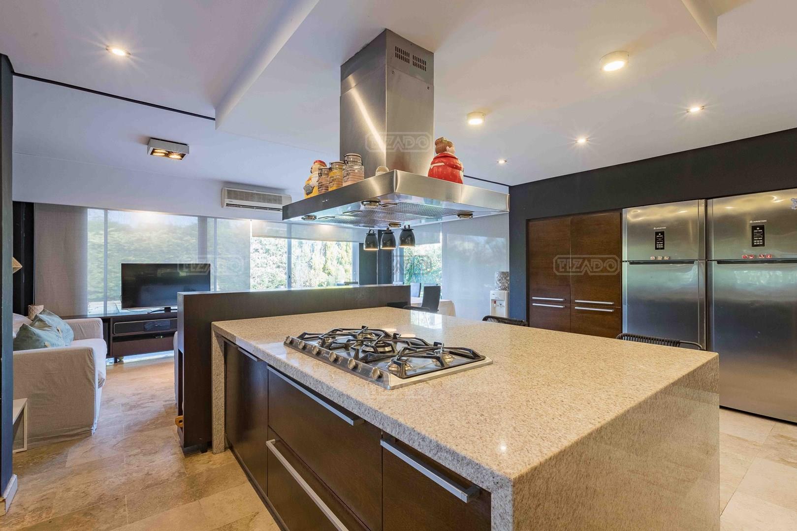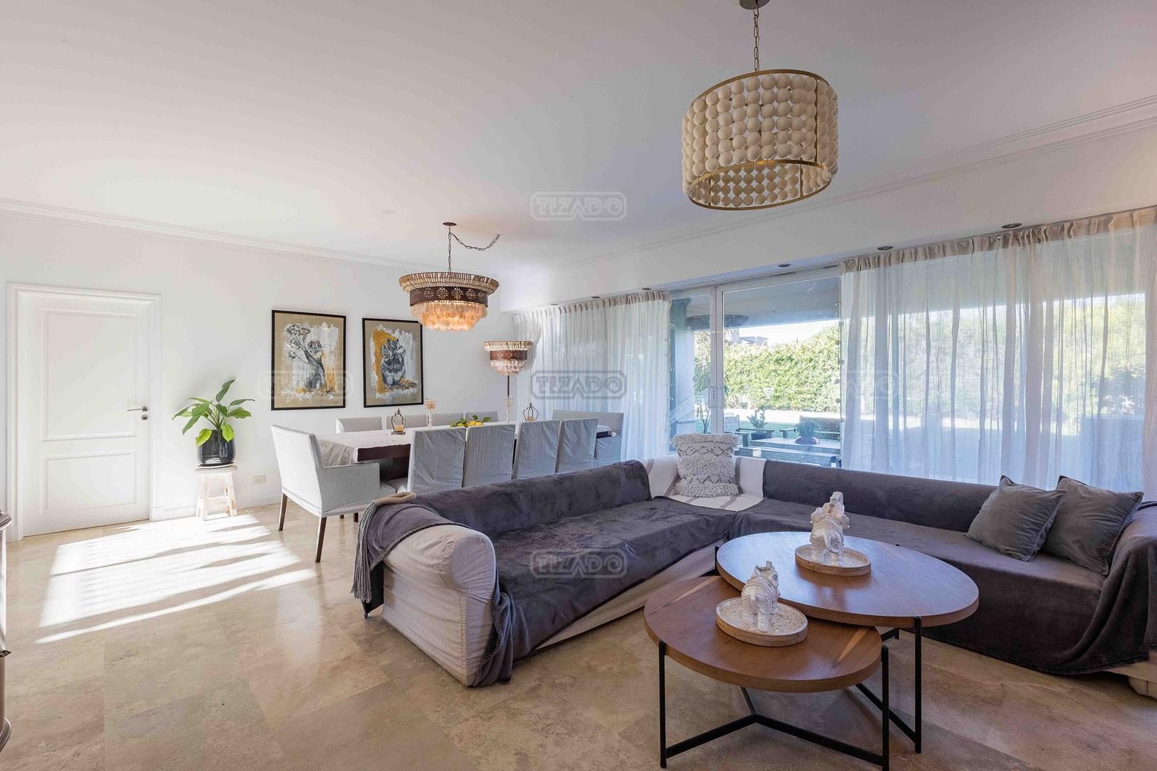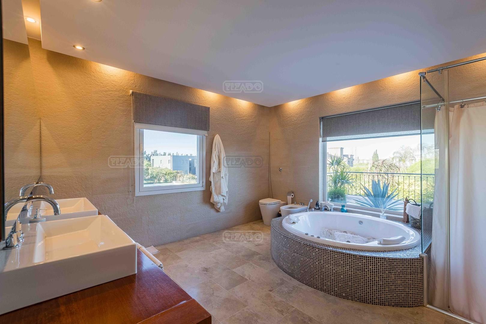 Excelente casa en venta barrio Las Glorietas, Nordelta Hermosa casa de grandes dimensiones y excelente calidad constructiva! Planta Baja: Importante acceso con hermosa escalera de hierro que balconea desde el primer piso al hall de ingreso. Gran Living comedor con ventanales con vista y salida a la galeria y jardin. Toilette. Dormitorio/gran oficina en PB. Cocina con isla muy grande con anafe, con mucho espacio de guardado y horno empotrado. Comedor diario super cómodo. Lavadero. Dependencia de servicio con baño. Planta Alta: Dormitorio principal en suite con gran vestidor y un baño muy importante con jacuzzi y ducha. Dos Suites Junior comparten un baño y otro dormitorio en suite. Segunda Planta: gran altillo con buen lugar de guardado. Detalles Constructivos: Muy buena calidad constructiva. Pisos de mármol. Calefacción por losa radiante. Aires acondicionados. Galería con parrilla. Pileta de natación con sistema de filtro. Muy buena calidad de construcción . Ubicada cerca del ingreso. Sobre el Barrio las Glorietas: Seguridad y servicios de emergencia con tecnología de vanguardia. Deportes: Canchas de tenis, paddle, baloncesto, fútbol, pileta de natación. Club house con vestuarios y quincho, plazas con juegos infantiles, gimnasio. Otras instalaciones: Salón de usos múltiples (SUM), Restaurante.