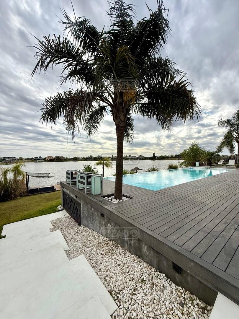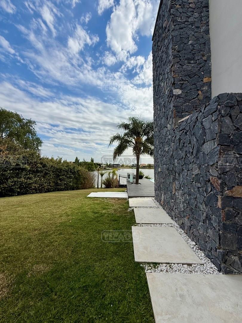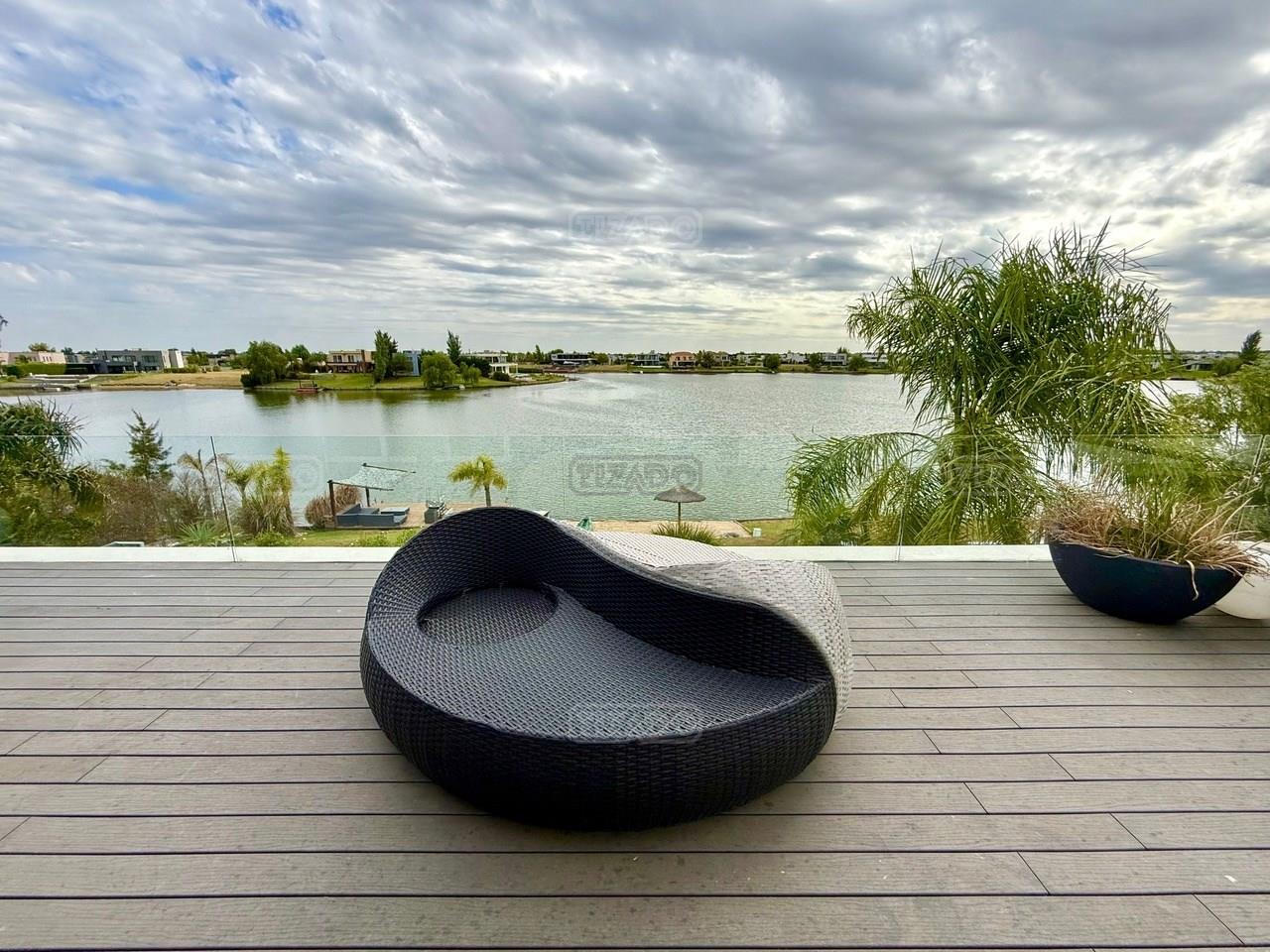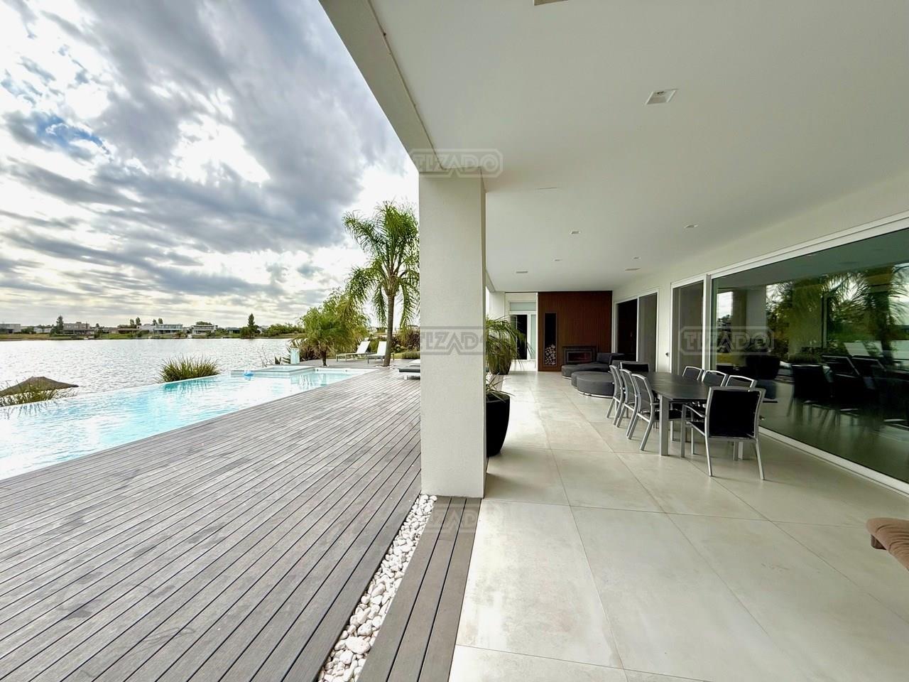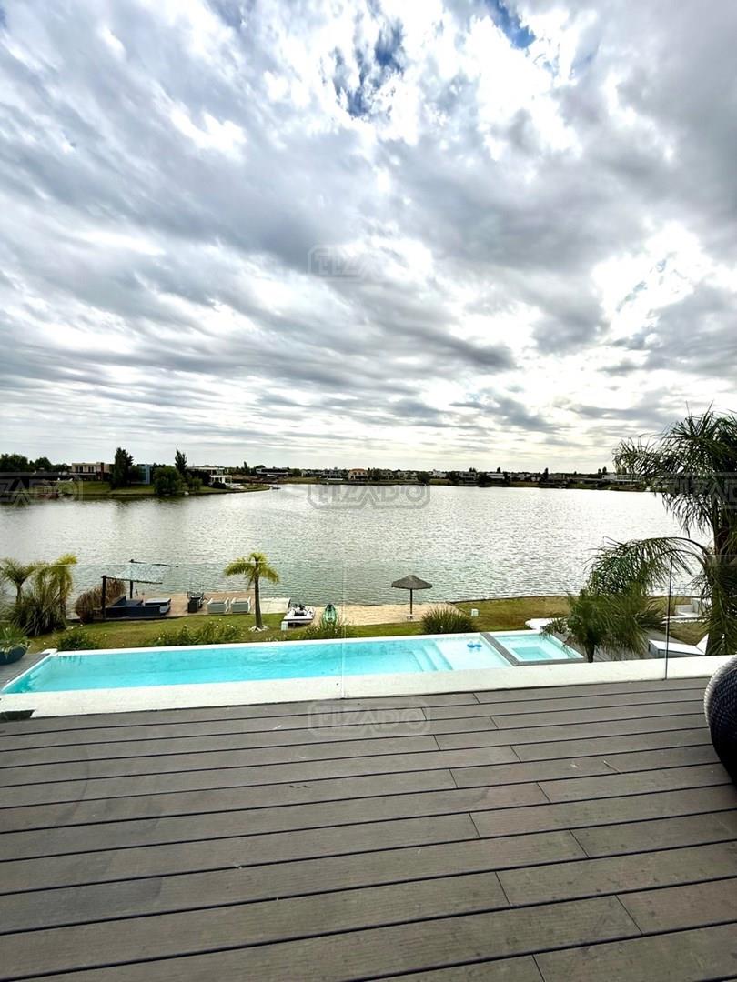 Exclusiva Residencia Premium ubicada en la prestigiosa Área 5 de San Sebastián.— El mayor espejo de agua y vistas panorámicas al Lago Central.— Un diseño arquitectónico contemporáneo, equipado con tecnología de vanguardia, garantizando privacidad y confort.-- ---Comodidades-- Planta baja: - Ingreso al hall de recepción en doble altura,con escalera de diseño , ingresamos al estar y comedor con biohogar y grandes ventanales al lago. - Sala de TV, con inmejorables vista abiertas al exterior.-- - Cocina moderna con isla central, equipamiento de alta calidad y mobiliario a medida con mesada silestone.-- - Comedor diario con pantry-- - Dos dormitorios de huéspedes, toilette de recepción, baño completo y habitación de servicio. - Espacio de trabajo con vista abiertas al lago. - Gran despensa , lavadero, amplia cochera cubierta para tres vehículos. Planta alta: La Master Suite principal cuenta con una terraza privada, vestidor y baño equipado con hidromasaje. Segunda Suite de grandes dimensiones dispone de baño completo , se suman dos dormitorios adicionales que comparten un baño.-- Vistas increíbles al agua donde podrás contemplar los mejores atardeceres ! Exterior: - Piscina de 17 x 5 metros calefaccionada, con playa húmeda, jacuzzi, solárium de arena y bajada con acceso al muelle. - Muelle propio para actividades deportivas y náuticas. - Amplio jardín de gran forestación con riego automático, fogón a gas y cancha de fútbol. - SUM con sala de cine, iluminación , disco , barra y baño completo ideal para disfrutar con amigos y familia. Cuenta con equipamiento de alta gama y confort excepcional.— implantada sobre 2 lotes que suman 2168 mts.— Detalles: Aberturas de PVC con DVH.-- Calefacción por Losa radiante.— AA acondicionado individual.-- Domótica integral.— Riego automatizado.-- Materiales de primerísima calidad y detalles de construcción que veras al visitarla.-- NO DEJES DE CONOCER ESTA MAGNIFICA PROPIEDAD !!