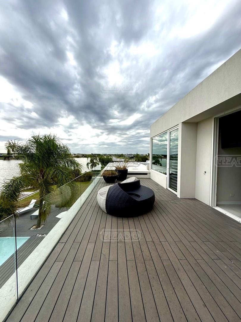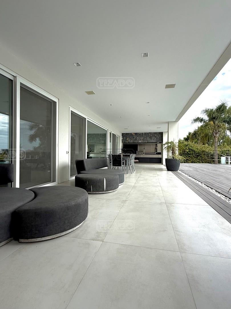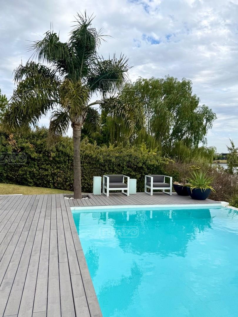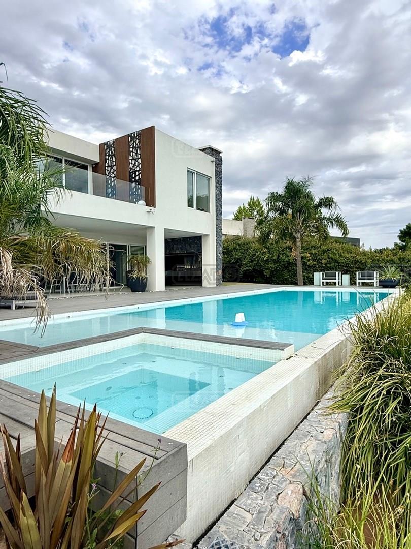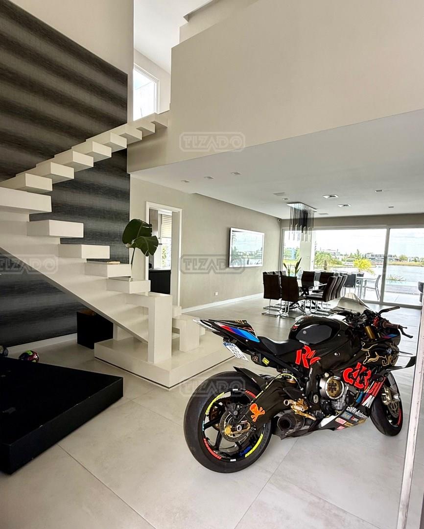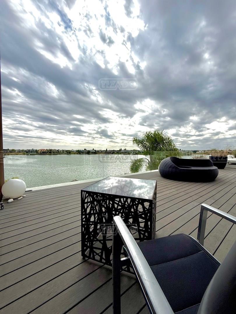 Exclusiva Residencia Premium ubicada en la prestigiosa Área 5 de San Sebastián.— El mayor espejo de agua y vistas panorámicas al Lago Central.— Un diseño arquitectónico contemporáneo, equipado con tecnología de vanguardia, garantizando privacidad y confort.-- ---Comodidades-- Planta baja: - Ingreso al hall de recepción en doble altura,con escalera de diseño , ingresamos al estar y comedor con biohogar y grandes ventanales al lago. - Sala de TV, con inmejorables vista abiertas al exterior.-- - Cocina moderna con isla central, equipamiento de alta calidad y mobiliario a medida con mesada silestone.-- - Comedor diario con pantry-- - Dos dormitorios de huéspedes, toilette de recepción, baño completo y habitación de servicio. - Espacio de trabajo con vista abiertas al lago. - Gran despensa , lavadero, amplia cochera cubierta para tres vehículos. Planta alta: La Master Suite principal cuenta con una terraza privada, vestidor y baño equipado con hidromasaje. Segunda Suite de grandes dimensiones dispone de baño completo , se suman dos dormitorios adicionales que comparten un baño.-- Vistas increíbles al agua donde podrás contemplar los mejores atardeceres ! Exterior: - Piscina de 17 x 5 metros calefaccionada, con playa húmeda, jacuzzi, solárium de arena y bajada con acceso al muelle. - Muelle propio para actividades deportivas y náuticas. - Amplio jardín de gran forestación con riego automático, fogón a gas y cancha de fútbol. - SUM con sala de cine, iluminación , disco , barra y baño completo ideal para disfrutar con amigos y familia. Cuenta con equipamiento de alta gama y confort excepcional.— implantada sobre 2 lotes que suman 2168 mts.— Detalles: Aberturas de PVC con DVH.-- Calefacción por Losa radiante.— AA acondicionado individual.-- Domótica integral.— Riego automatizado.-- Materiales de primerísima calidad y detalles de construcción que veras al visitarla.-- NO DEJES DE CONOCER ESTA MAGNIFICA PROPIEDAD !!