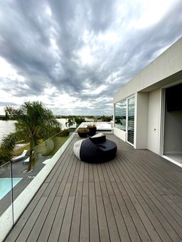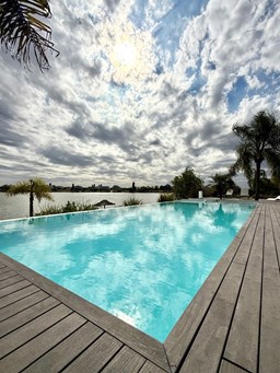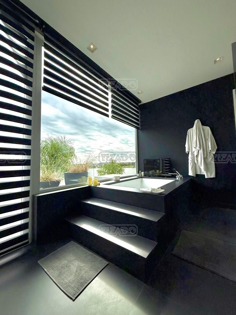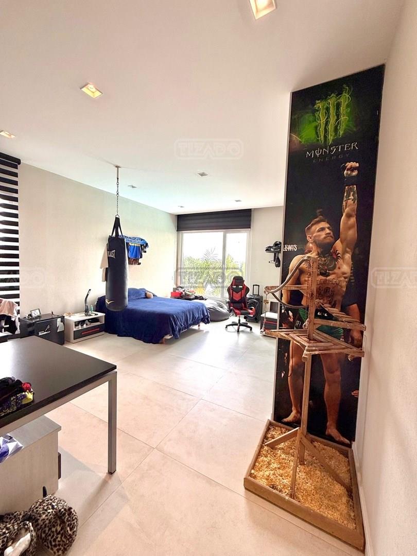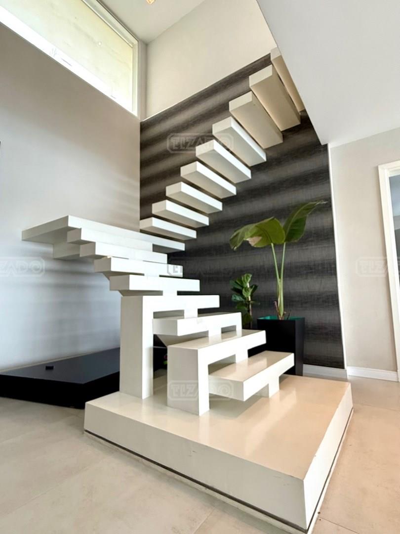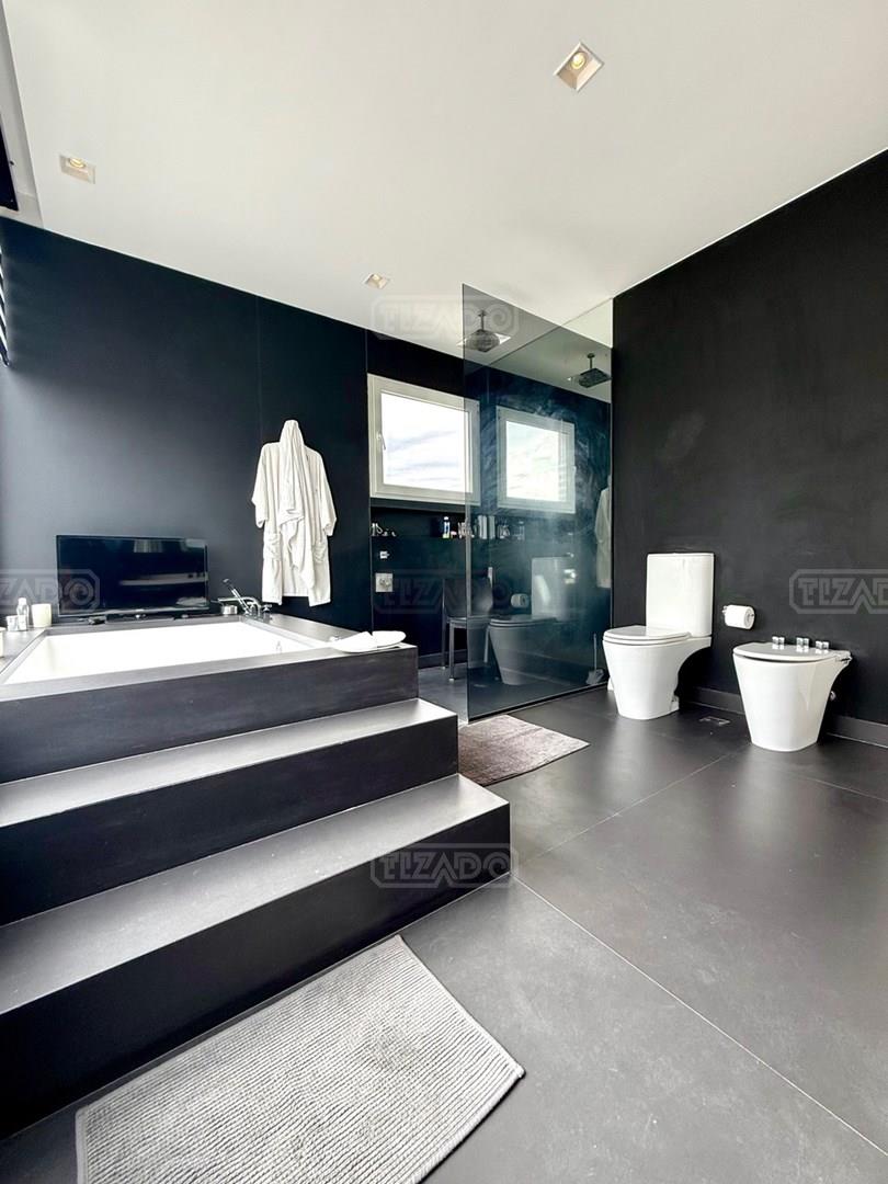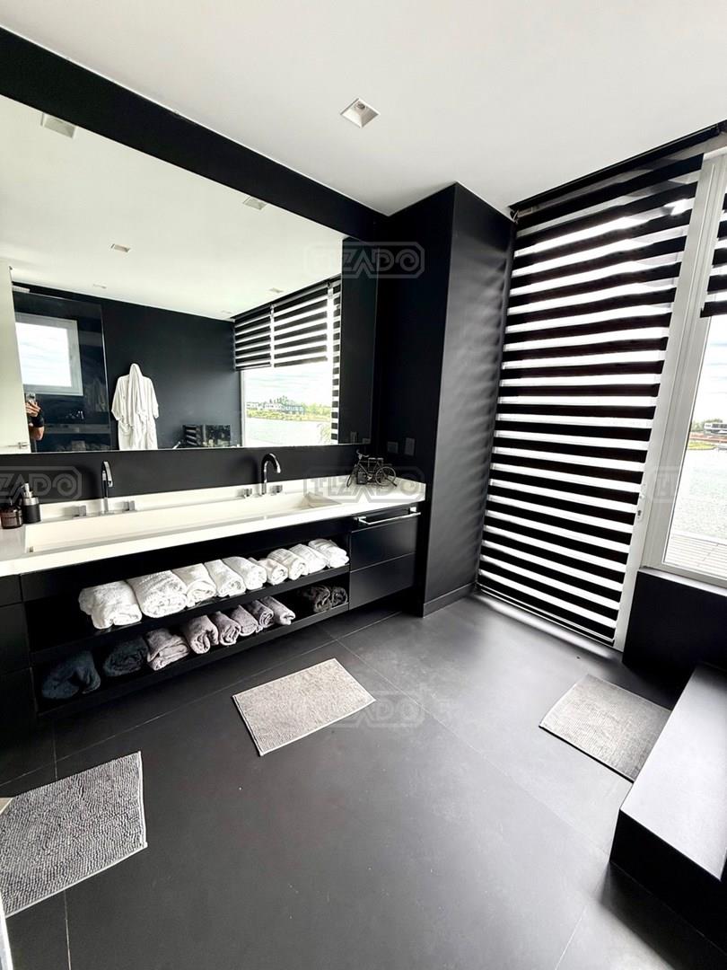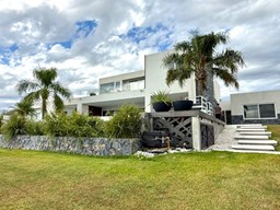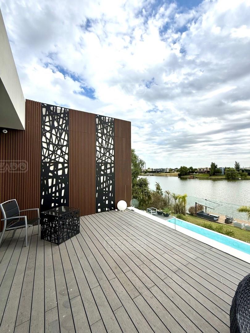Exclusiva Residencia Premium ubicada en la prestigiosa Área 5 de San Sebastián.— El mayor espejo de agua y vistas panorámicas al Lago Central.— Un diseño arquitectónico contemporáneo, equipado con tecnología de vanguardia, garantizando privacidad y confort.-- ---Comodidades-- Planta baja: - Ingreso al hall de recepción en doble altura,con escalera de diseño , ingresamos al estar y comedor con biohogar y grandes ventanales al lago. - Sala de TV, con inmejorables vista abiertas al exterior.-- - Cocina moderna con isla central, equipamiento de alta calidad y mobiliario a medida con mesada silestone.-- - Comedor diario con pantry-- - Dos dormitorios de huéspedes, toilette de recepción, baño completo y habitación de servicio. - Espacio de trabajo con vista abiertas al lago. - Gran despensa , lavadero, amplia cochera cubierta para tres vehículos. Planta alta: La Master Suite principal cuenta con una terraza privada, vestidor y baño equipado con hidromasaje. Segunda Suite de grandes dimensiones dispone de baño completo , se suman dos dormitorios adicionales que comparten un baño.-- Vistas increíbles al agua donde podrás contemplar los mejores atardeceres ! Exterior: - Piscina de 17 x 5 metros calefaccionada, con playa húmeda, jacuzzi, solárium de arena y bajada con acceso al muelle. - Muelle propio para actividades deportivas y náuticas. - Amplio jardín de gran forestación con riego automático, fogón a gas y cancha de fútbol. - SUM con sala de cine, iluminación , disco , barra y baño completo ideal para disfrutar con amigos y familia. Cuenta con equipamiento de alta gama y confort excepcional.— implantada sobre 2 lotes que suman 2168 mts.— Detalles: Aberturas de PVC con DVH.-- Calefacción por Losa radiante.— AA acondicionado individual.-- Domótica integral.— Riego automatizado.-- Materiales de primerísima calidad y detalles de construcción que veras al visitarla.-- NO DEJES DE CONOCER ESTA MAGNIFICA PROPIEDAD !!