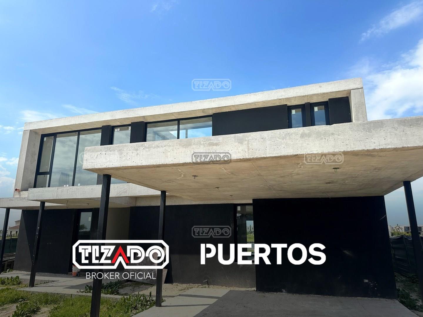 Casa en barrio Costas, diseño moderna con hormigon a la vista. La casa se encuentra en la etapa final de obra. desarrollada en dos plantas con una gran vista sobre la bahia de Costas y el lago central. Ubicada en cul de sac, eso le da una tranquilidad a la casa y no concurren autos que no sean los vecinos de los lotes linderos. Todas Las habitaciones y espacios comunes tienen vista al lago, la casa se diseño para poder aprovechar el gran espejo de agua que posee. Entrando a la casa se puede ver un jardin interno el cual le da luminosidad a toda la casa tanto a la planta baja como alta. La casa en planta baja tiene un cuarto el cual puede ser utilizado como escritorio, micro cine o como una habitacion mas ya que al lado tiene el toilette de recepcion. Luego el living, cocina, comedor todo incluido y en la otra ala de la casa podemos encontrar el lavadero con la dependencia completa con entrada independiente a la casa. La casa tiene una amplia galeria de 12 mts incluido un espacio para colocarle un deck con un juego de sillones o una mesa dependiendo el uso que se le quiera dar. La pileta tiene mas de 10mts con un borde infinito y Jacuzzi, cuenta con un sistema para nivelarla y poder manejar la temperatura de la misma. Tiene baño de pileta. Si subimos a la planta alta lo primero que vemos es el jardin interno que le da una total luminosidad a la casa luego tenemos 4 dormitorios, 3 en Suite, con vestidor y vista al lago. Y luego la master Suite, super espaciosa con un gran vestidor y un amplio baño. Cabe destacar la vista de la misma. La casa cuenta con detalles de calidad que realmente vale la pena ver. EL equipamiento final de la casa se puede ver en las fotos junto con las terminaciones, estan en el listado.