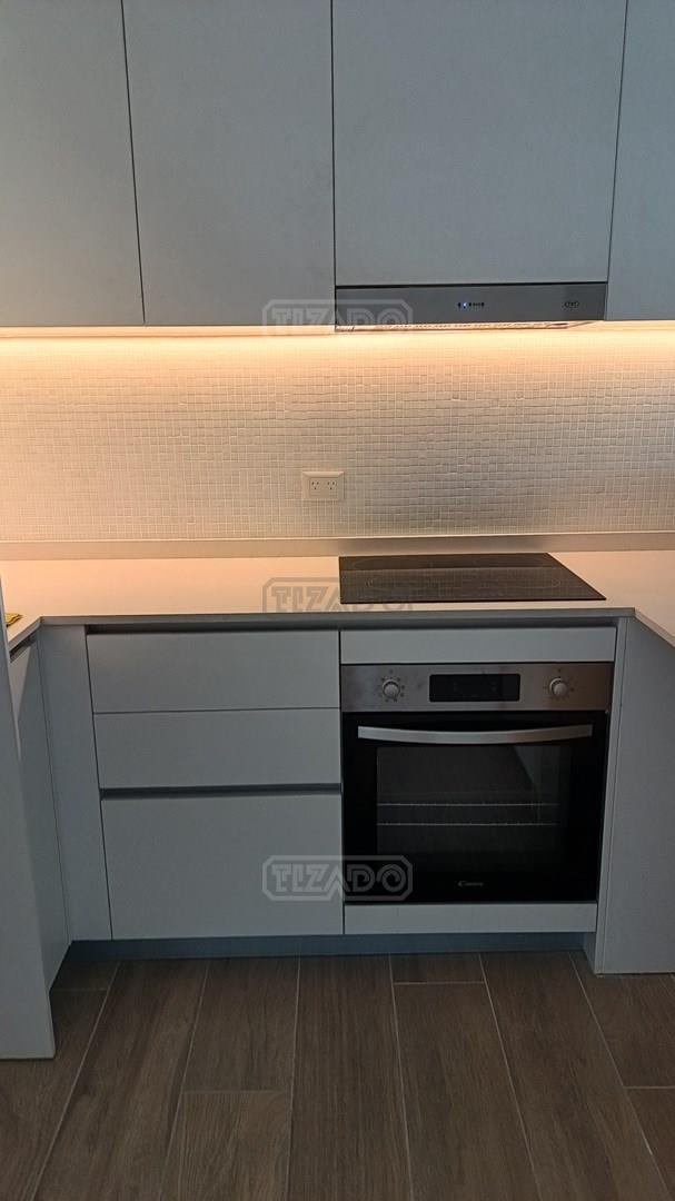 Excelente edificio doble frente, 2 ambientes 62m2, al frente con balcón aterrazado, deck, vista abierta, cochera fija, todos los amenities, 1 dormitorio en suite con amplio vestidor toilette, calefacción por losa, agua caliente caldera central, bicicletero, Cocina con doble mesada de selistone blanco, integrada al living. 2 SPLIT Contrato en dólares U$S1.200,No apto mascotas Demostración de ingresos, garantía propietaria. Expensas $230.000