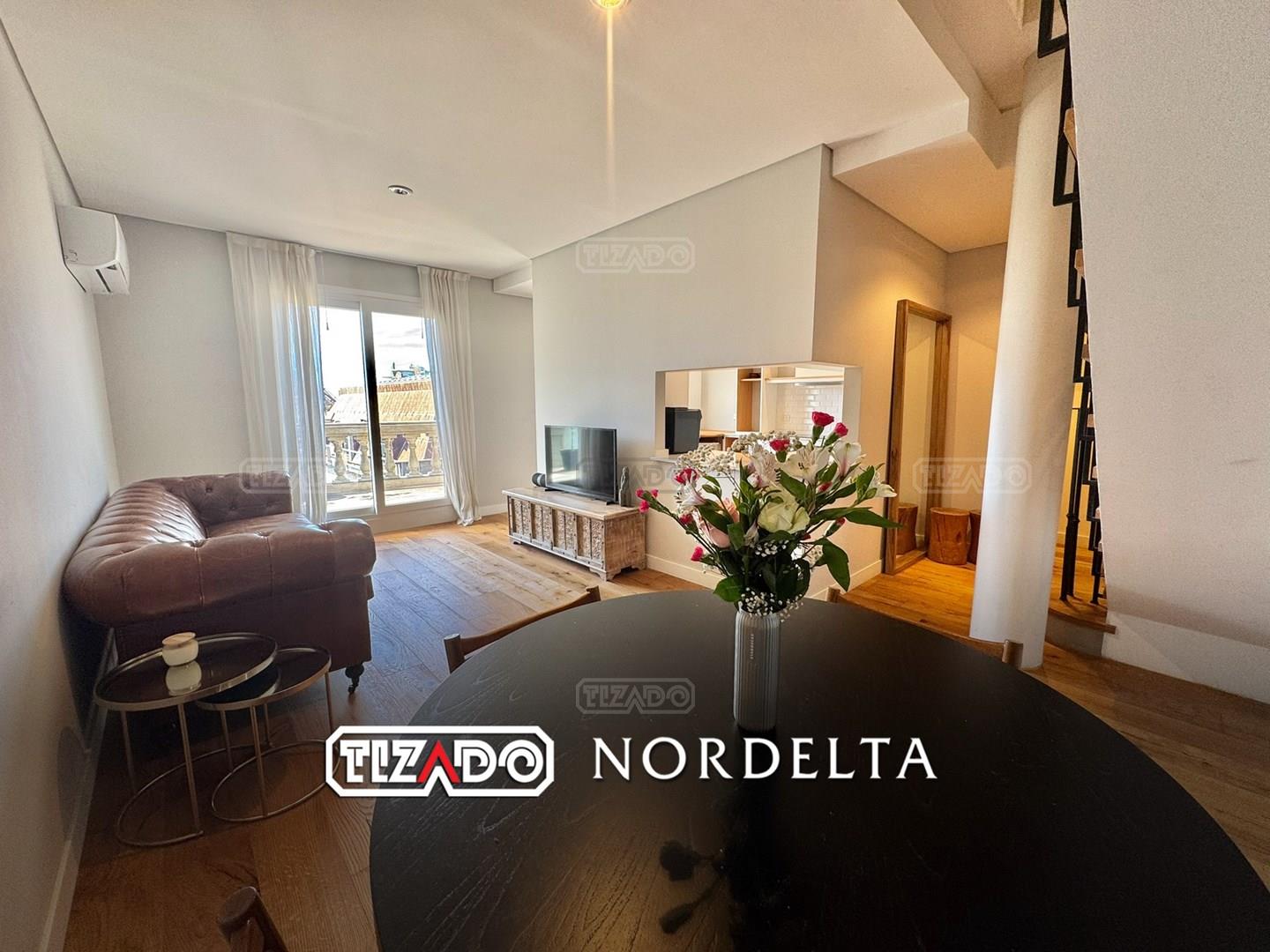 Venta Depto 4 ambientes en Duplex en Chateau Portal Nordelta, a pasos del centro comercial. APTO PROFESIONAL. PB: Living comedor con cocina intergrada toilette y balcon PA: Matersuite y dos dormitorios que comparten un un baño completo. Aire acondicionado frio calor en todos los ambientes. Edificio apto profesional con una cochera cubierta.