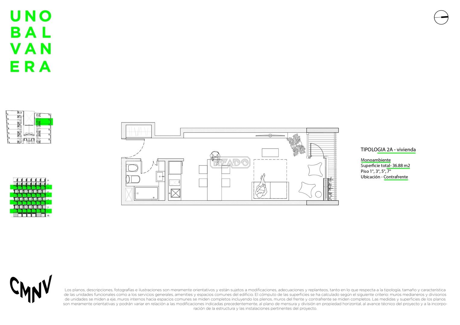 UNO BALVANERA, En el corazón de Buenos Aires, a 50 metros de la nueva plaza Manzana 66, se desarrollará un edificio único en un barrio donde convergen la historia, la cultura y el futuro. Un área caracterizado por un tejido urbano consolidado con centros de salud y educativos de todos los niveles, edificios históricos de valor arquitectónico y patrimonial. Espacios verdes renovados y una amplia red de transporte público y nueva estructura, que ofrece conexiones con toda la ciudad en pocos minutos. UNO BLV contará con 10 pisos, 1 subsuelo con acceso por rampa con 45 cocheras, 3 locales comerciales, Unidades de 1, 2 Y 3 ambientes, lofts y estudios profesionales. Jardines y espacios abiertos de uso común, techo verde, huerta urbana, piscina, solárium, vestuarios, SUM, Laboratorio de café, Centro de entrenamiento, bicicleteros, lavadero, pequeño taller de herramientas, wifi central en espacios comunes, Monitoreo CCTV y control de accesos 24 hs. Carpinterías exteriores con doble vidrio laminado, piso vinílico, agua caliente central, aire acondicionado individual en cada unidad, cocinas y baños equipados con muebles, espacio de ducha con mampara. Financiación!!! Matrícula Cucicba : 1053 Los planos, descripciones fotografías e ilustraciones son meramente orientativos y están sujetos a modificaciones, adecuaciones y replanteos, tanto en lo que respecta a la tipología, tamaño y característica de las unidades funcionales como a los servicios generales, aménities y espacios comunes del edificio. El computo de las superficies se ha calculado según el siguiente criterio: muros, medianeros y divisorios de unidades se miden a eje, muros internos hacia espacios comunes se miden completos incluyendo los plenos, muros de frente y contrafrente se miden completos. Las medidas y superficies de los planos son meramente orientativas y podrán variar en relación a las modificaciones indicadas precedentemente al plano de mensura y división en propiedad horizontal, al avance técnico del proyecto y a la incorporación de la estructura y las instalaciones pertinentes del proyecto.