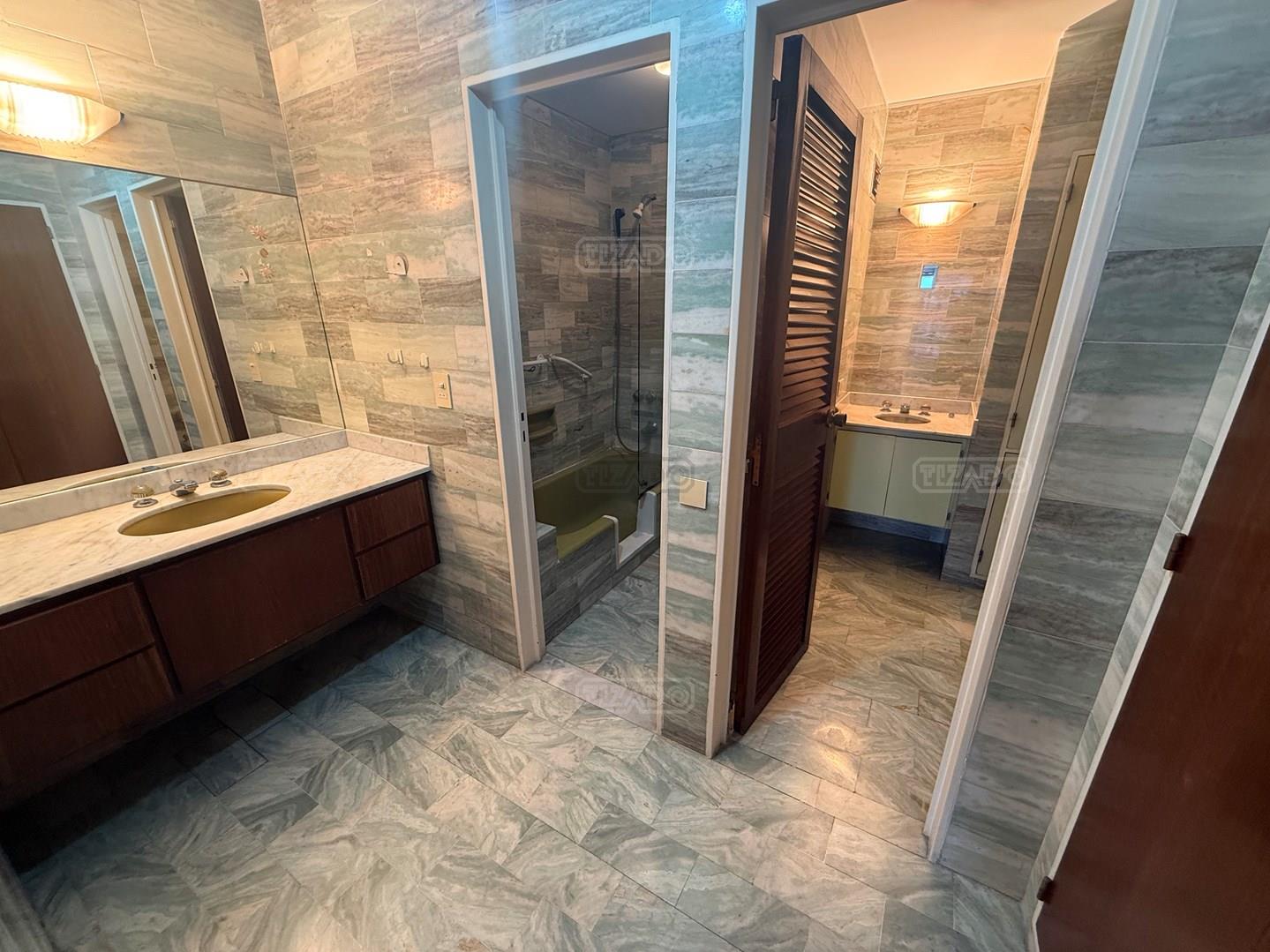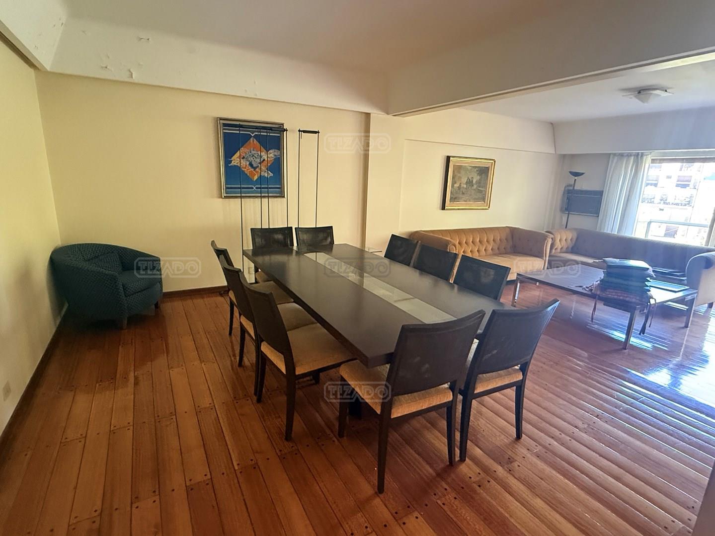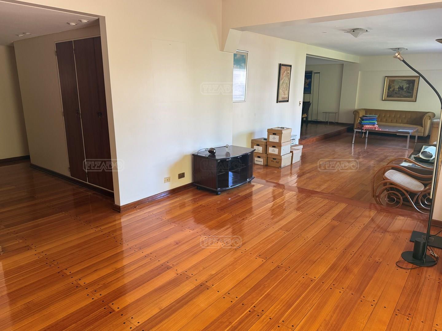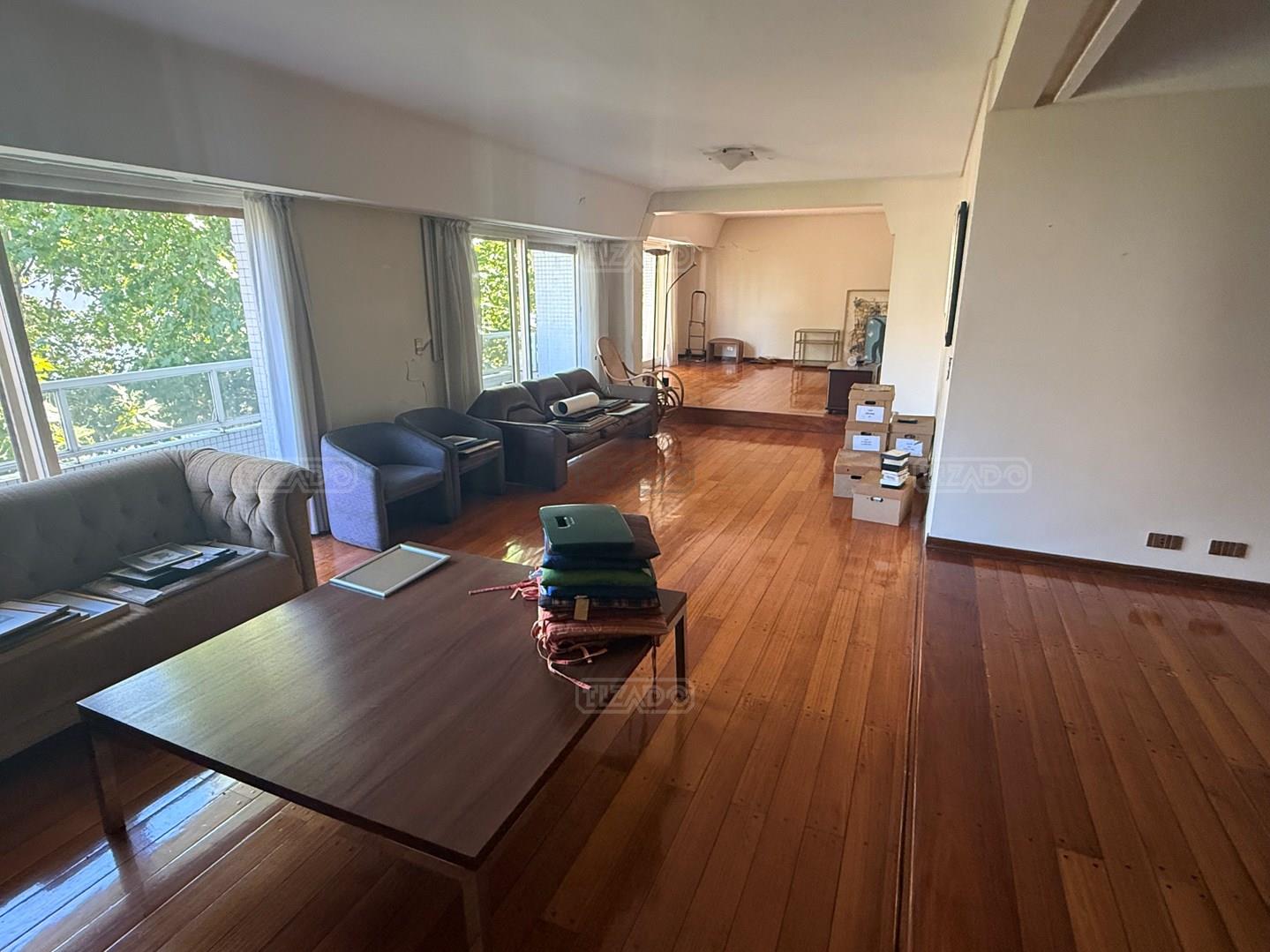 Ubicado sobre la calle Larrea, entre Beruti y Juncal, en un entorno residencial consolidado y de excelente categoría, se ofrece este impactante piso de 313 m² totales, emplazado en piso alto, con destacada luminosidad, vista y ventilación cruzada en todos sus ambientes. La unidad cuenta con palier privado y palier de servicio, y se desarrolla con doble circulación, permitiendo un funcionamiento independiente entre el área social y el área de servicio. El sector de recepción se compone de gran living apaisado con salida a balcón al frente, donde se destacan los pisos entarugados de madera en excelente estado de conservación. Al contrafrente, la propiedad también dispone de balcones, asegurando luz natural tanto en el área social como en el sector íntimo. En el área privada se desarrollan cinco dormitorios. Cuatro de ellos comparten dos baños completos, mientras que la suite principal cuenta con baño en suite, vestidor y balcon. La cocina es de generosas dimensiones, con comedor diario y un family o escritorio independiente, ideal para el uso cotidiano. El área de servicio se completa con dos dependencias, lavadero independiente y acceso de servicio. La propiedad se encuentra en estado de época, funcional y utilizable, con gran potencial de actualización según proyecto y estilo del comprador. Cuenta con calefacción central por piso radiante y dos cocheras: una fija y una móvil. El edificio, de sólida construcción y excelente mantenimiento, dispone de encargado con vivienda permanente y sistema de cámaras de seguridad. Ofrece amenities: SUM en terraza con parrilla y muy buenas dimensiones, y un muy amplio SUM en el subsuelo equipado con gimnasio, sector de juegos para niños, mesa de pool y proyector, entre otros espacios de uso común. Una propiedad de gran escala, ideal para quienes buscan amplitud, ubicación estratégica y potencial de puesta en valor en una de las zonas más demandadas de la ciudad. CUCICBA 1886