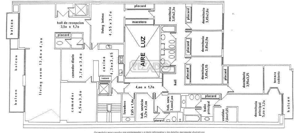 - Dormitorio: 5.00 x 3.20 suite y balcon