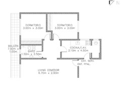 - Dormitorio: 2,97 x 3 con placard