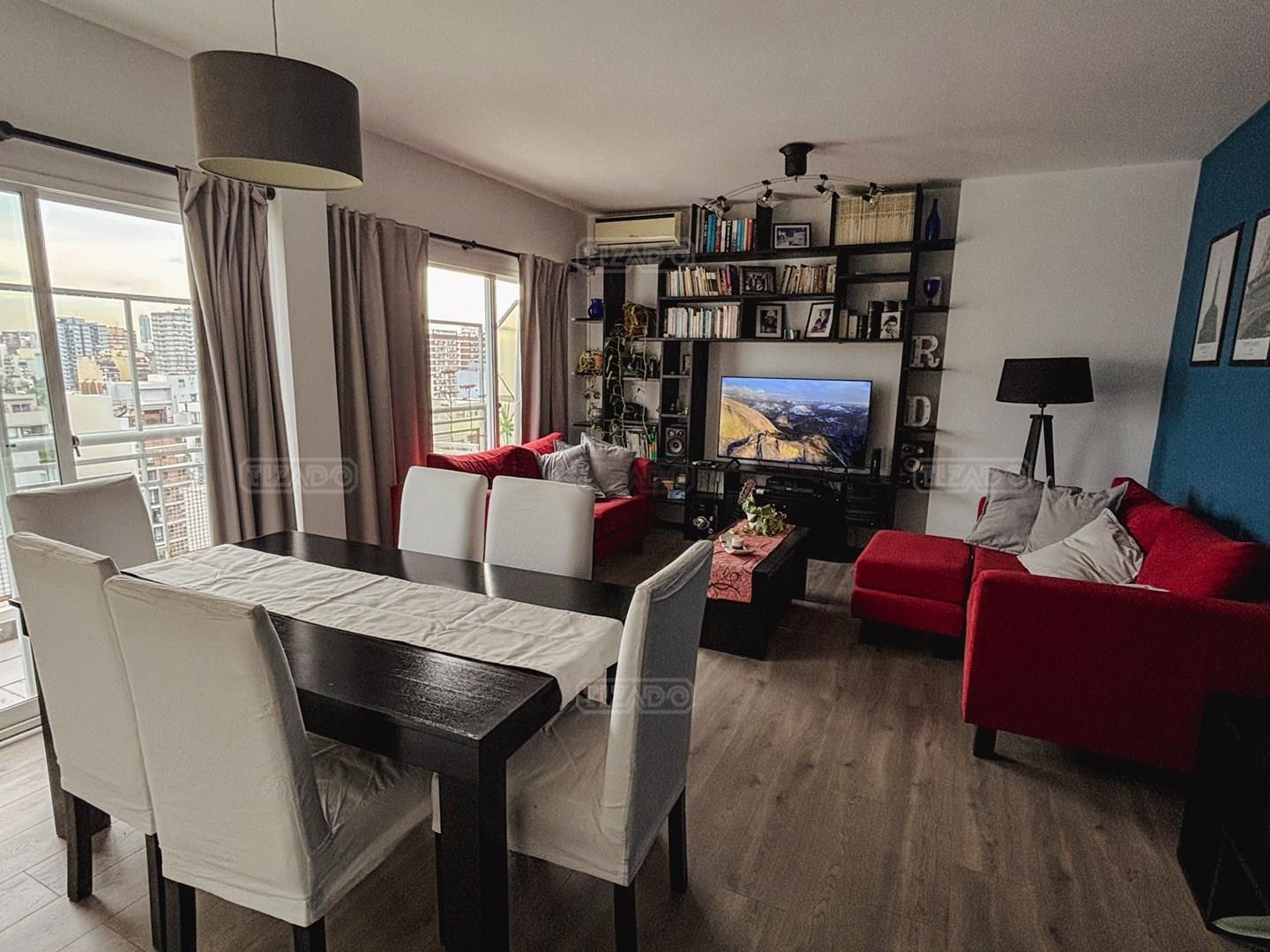 Triplex en muy buen estado , Terraza propia , cochera fija, ubicado en Colegiales, uno de los mejores barrios para vivir , con grandes espacios verdes; zona donde predominan las casas bajas, con algunos edificios de poca altura que se están construyendo, sin perder la tranquilidad del Barrio, en franco crecimiento , con gran propuesta cultural y gastronómica, dentro de Polo Audiovisual. Cercano a las Avenidas :Lacroze, Alvarez Thomas, Avda.Cabildo, En el piso 12 se encuentra un amplio living-comedor, salida a balcón corrido vista panorámica, toilette, cocina , en la siguiente planta hay 3 dormitorios (1 en suite), family con otro baño completo (en total hay 3 baños completos y un toilette. Cerradura del inmueble electrónica. Se puede colocar parrilla en la terraza propia.
