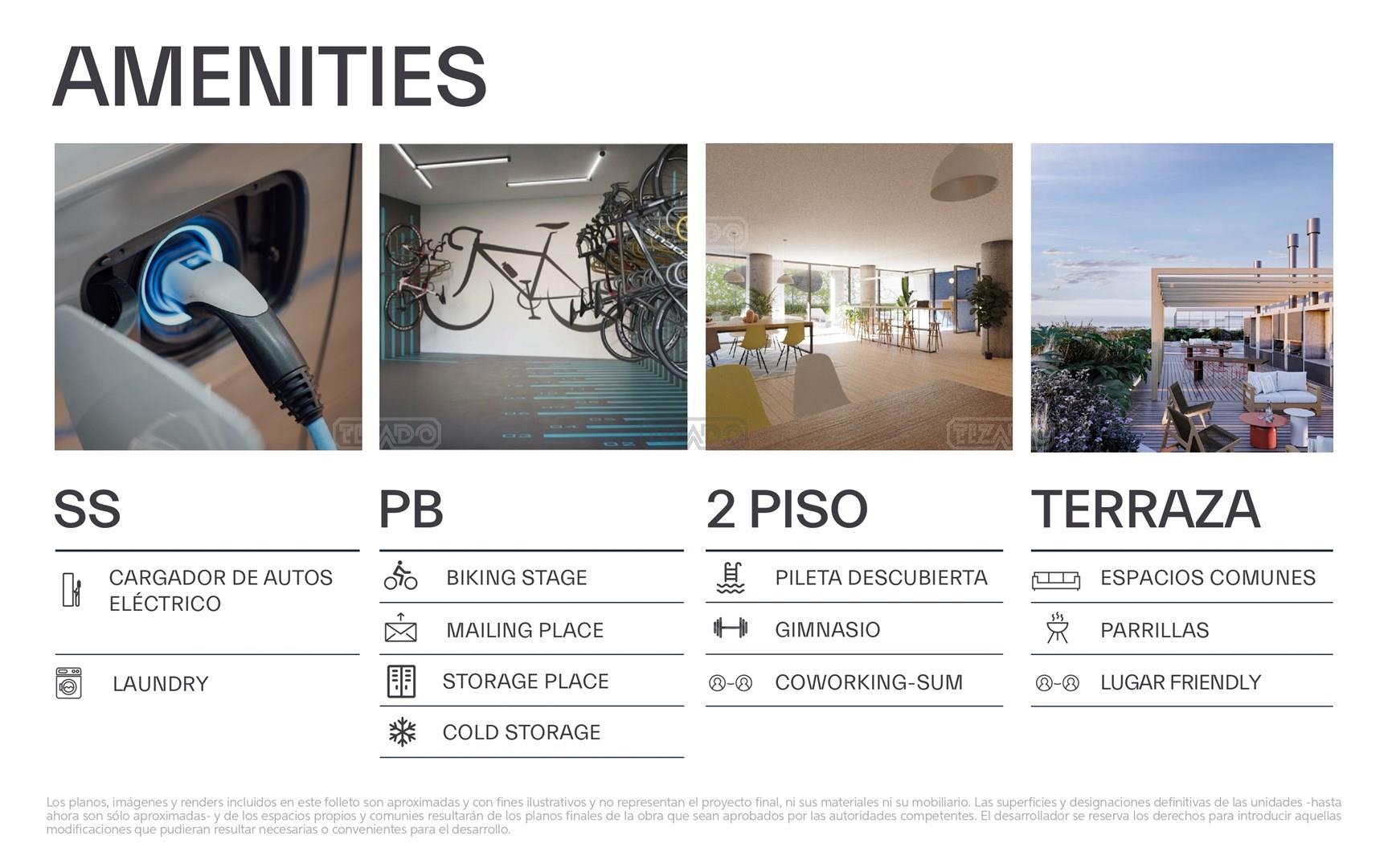 Oportunidad! Excelente 3 ambientes, con cochera en uno de los proyectos más buscados de Núñez. E6. NUEVO BARRIO, donde se encontraba el Club Tiro Federal, se levanta el Parque de la Innovación. Un polo científico tecnológico para desarrollar la economía del conocimiento. Cuenta en planta baja con locales comerciales, hall de acceso y en subsuelos cocheras; 12 pisos de viviendas de 1, 2 y 3 ambientes. AMENITIES: Pileta, Gimnasio, SUM, Espacio Co- Working, Parrillas y Terraza. DETALLES DE TERMINACIÓN: COCINA Muebles de cocina con bajo mesada y alacena Horno y anafe eléctrico Grifería monocomando FV, Piazza o simi lar Mesada y alzada de granito o similar Pileta de acero inoxidable marca Mi Pileta o similar Piso SPC, porcellanato ó similar CARPINTERIAS EXTERIORES Carpintería de aluminio / PVC Vidrios DVH PISOS DE LOS AMBIENTES Piso SPC, porcellanato ó similar PLACARDS Frente de placard corredizo con placa de melamina en dormitorios CLIMATIZACION Provisión de equipos de AA frío / calor en living y dormitorio principal Provisión de preinstalación de AA (no incluye equipos) en dormitorio secundario PROVISION DE AGUA Sistema central BAÑOS Piso y pared de porcellanato Lavatorio marca Ferrum, Piazza o similar Receptáculo y/o Bañera marca Ferrum, Piazza o similar Griferías monocomando FV, Piazza o similar Artefactos sanitarios Ferrum, Piazza o similar TERRAZAS / BALCONES Pisos y zócalos de porcellanato Barandas de aluminio vidriadas Artefactos de luz en cielorrasos
