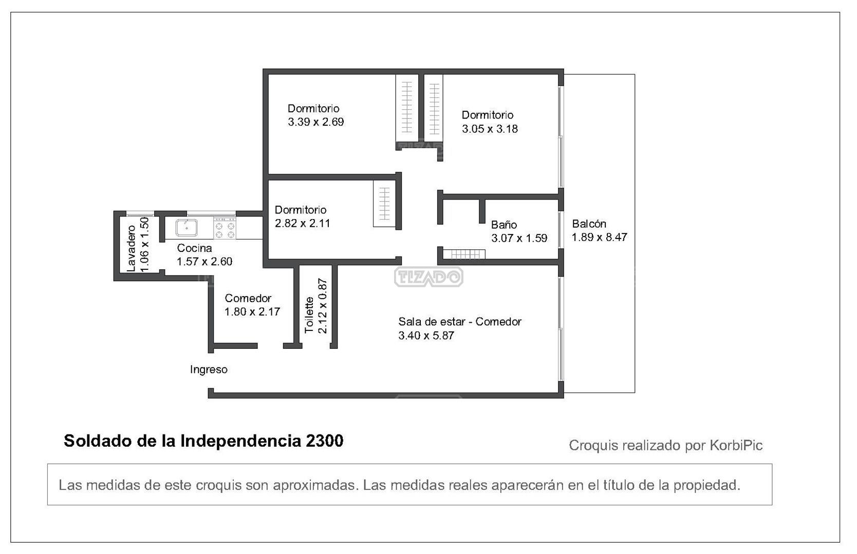 - Dormitorio: 3.39 X 2,7 CON PLACARD