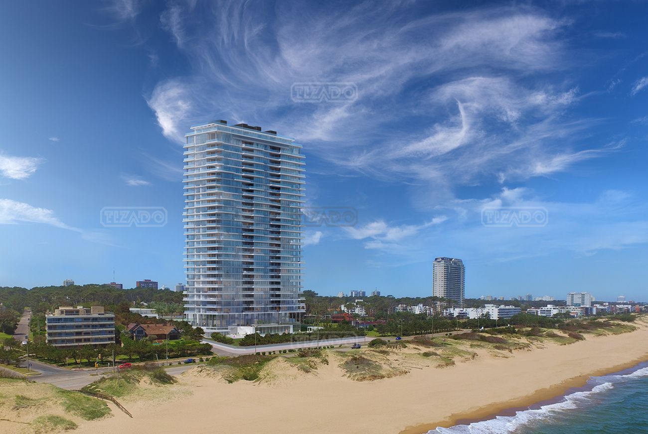 Una sola torre, todas las miradas!!! Ubicada a la distancia justa del centro de la península de Punta del Este, en la parada 18 de rambla mansa, sobre una manzana de 14.000 m² en primera línea al mar. Una torre diseñada para mantener la privacidad a la hora de disfrutar de los amenities y servicios que ofrece, combinando lo más exclusivo del lujo con el mayor confort. Única en el balneario, con sus 27 pisos distribuidos en apartamentos desde 163 m², de 2 a 4 dormitorios en suite, toilette y dependencia de servicio. Coronando con 6 penthouse de 4 dormitorios en suite, toilette, dependencia de servicio y barbacoa. Amenities & Servicios: Snack Bar, piscina abierta de 25 metros de largo, piscina cerrada climatizada para adultos y niños, piscina cerrada sólo para adultos, sauna seco y húmedo, sala de masajes, gimnasio, salón de juegos para niños, adolescentes y adultos, microcine, sala de reuniones, 12 barbacoas, un salón de fiestas, 2 canchas de tenis, 1 cancha multipropósito, juegos exteriores para niños. Gasto de ocupación 5%, reglamento y planos 2,5%