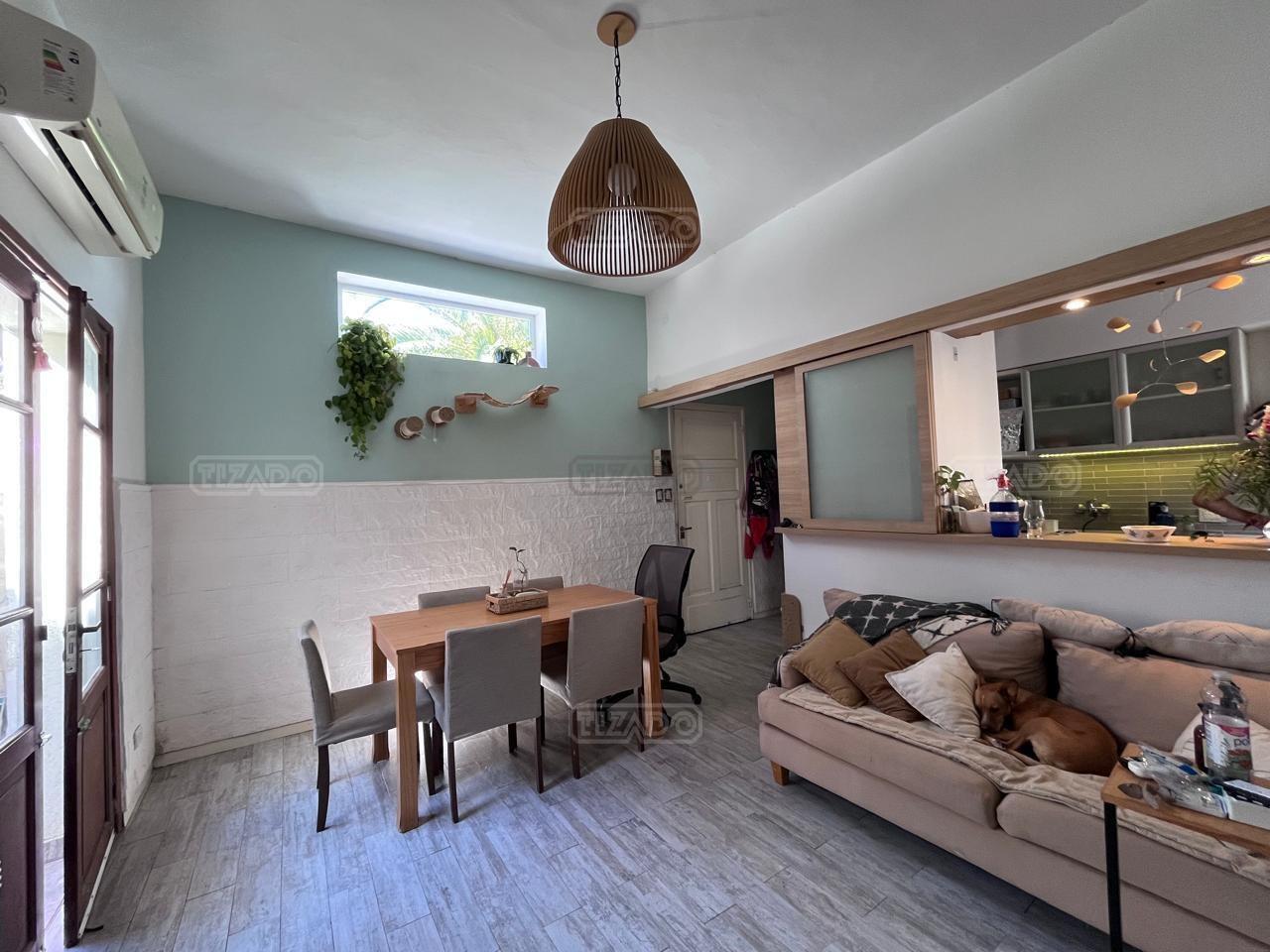 Impecable PH tipo casa, sin expensas, excelente ubicación Ubicado a tan solo 4 cuadras de Av. Maipú y a 3 de Ugarte, en una zona residencial muy bien conectada, con cercanía a múltiples medios de transporte, comercios y servicios. La propiedad se desarrolla en planta baja con ingreso por pasillo, brindando mayor privacidad y tranquilidad. Cuenta con una pequeña recepción con biblioteca integrada, que da paso a un luminoso living comedor, con salida a uno de los patios. La cocina se encuentra equipada con muebles bajo y sobre mesada, y dispone de una práctica barra desayunadora con cerramiento por si se desea independizar los ambientes. Desde la cocina se accede al segundo patio, que cuenta con sector de lavadero. Posee baño completo y un amplio dormitorio con placard y piso de madera, que aporta calidez al ambiente. Muy buen estado general Excelente distribución Ambientes cómodos y funcionales SIN EXPENSAS