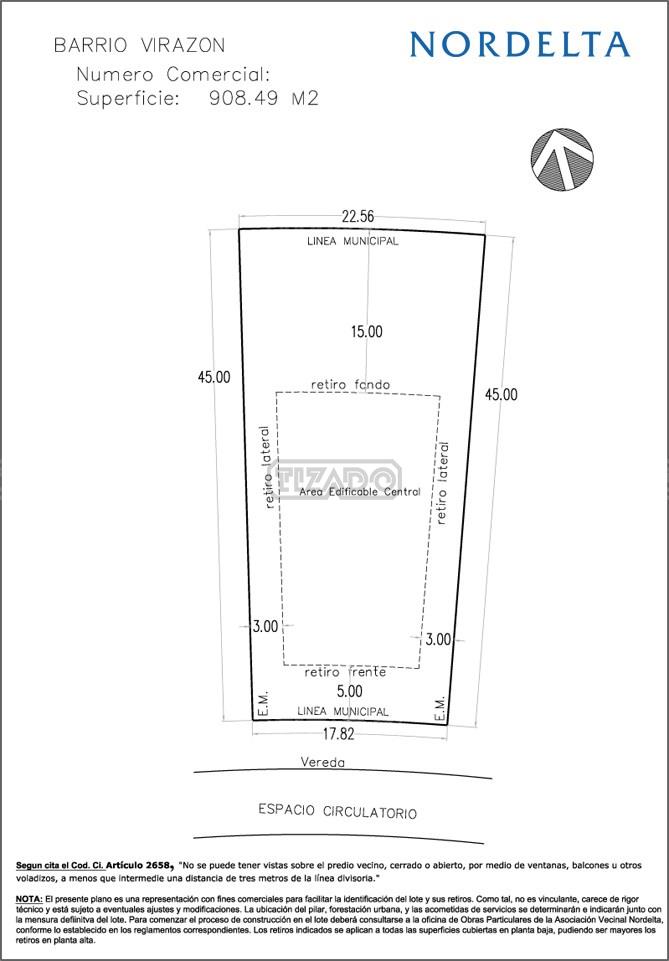 Lote AL AGUA en el exclusivo Barrio Virazón de Nordelta. Tiene 909 m2. de superficie. ORIENTACIÓN NORTE. VIRAZÓN es uno de los barrios PREMIUM. Posee ubicación y vistas privilegiadas. El Barrio posee una completa infraestructura deportiva: 4 canchas de tenis, cancha de fútbol, playón deportivo, club house con pileta y plaza con juegos infantiles. Un barrio super consolidado y listo para construir !!!!!!