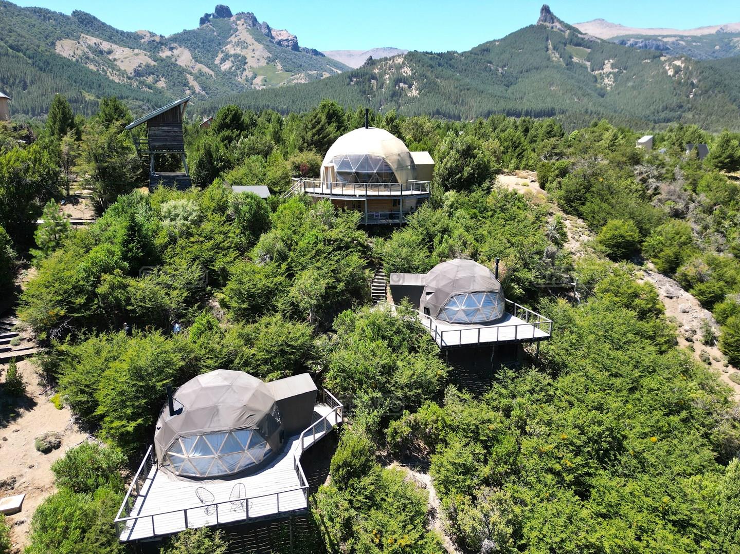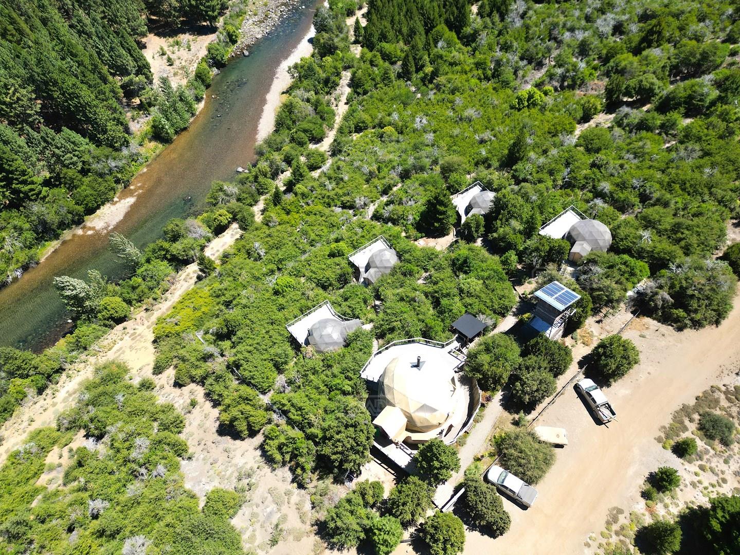 Impresionante complejo de Domos en Villa Lago Meliquina. Se trata de un complejo de 4 domos y un domo principal donde funciona toda la parte de servicios. El complejo está emplazado sobre un terreno especial de Meliquina de 3.200 m2 y con una pendiente que le da unas vistas tanto al río Meliquina como el Lago, en un rincón con una privacidad única. Los domos tienen 3 temporadas, están totalmente equipados y son de una excelente calidad constructiva, con muchos detalles y con excelente mantenimiento. Para lograr que los domos tengan todos sus impresionantes vistas, se han realizado movimientos de suelo y contenciones muy buenas, con caminería a cada domo que le da privacidad y la sensación de estar solos en el medio de la montaña. El domo principal, además de ser el lugar de servicios para el complejo, es la casa principal, con todas las comodidades. El complejo tiene una explotación muy rendidora por tratarse de una novedad en la zona y por su tremenda ubicación. Vale la pena conocerlo! Ideal para quien quiera invertir y tener a la vez una calidad de vida muy buena, en un lugar único.