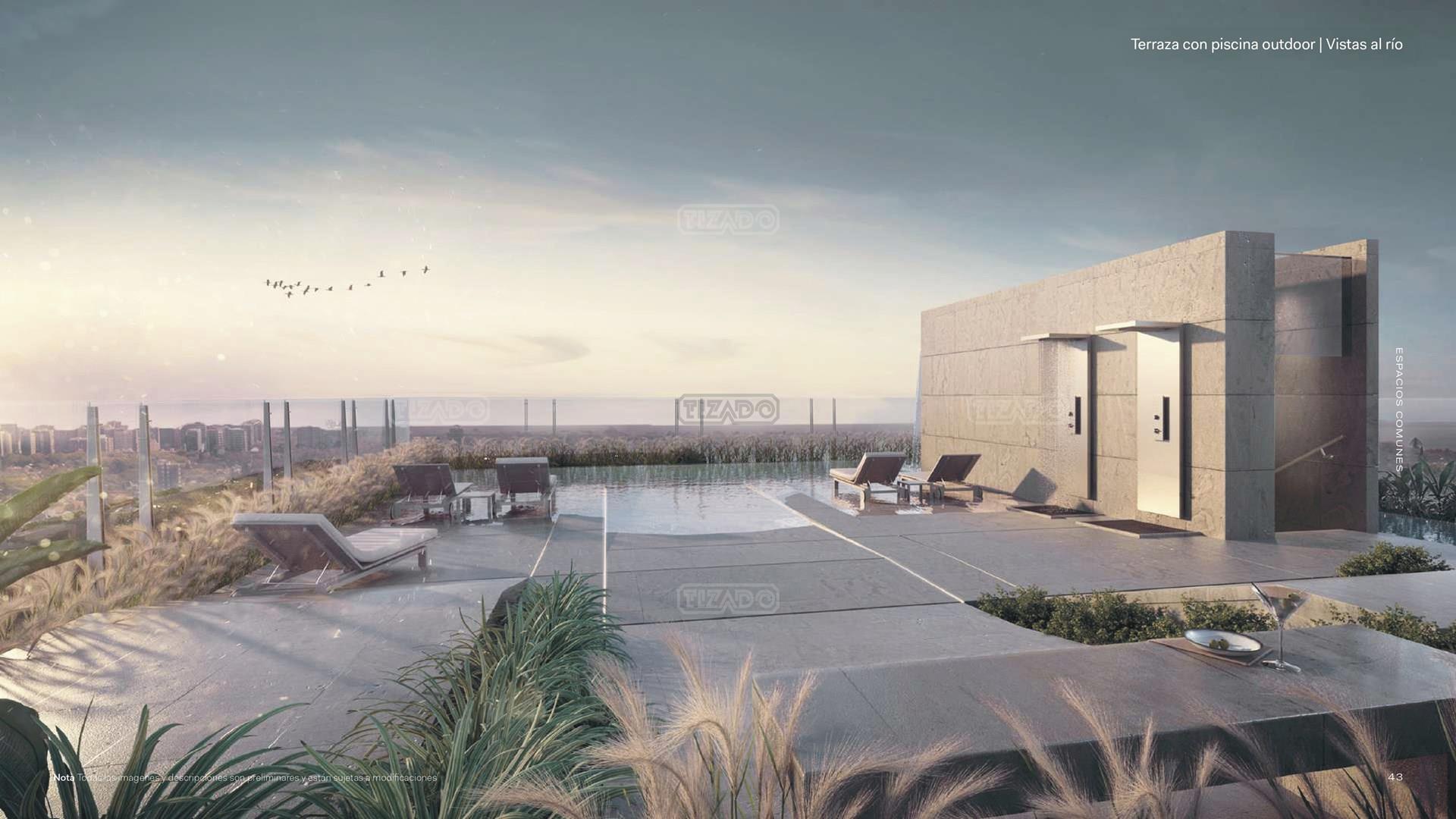 El proyecto de arquitectura del prestigioso estudio MSGSSV, conjuga líneas dinámicas de arquitectura, con una clara convivencia de visuales hacia los espacios verdes; con balcones terraza que va modificando el volumen de su disruptiva fachada.
