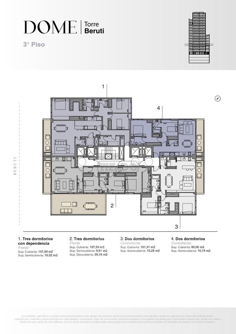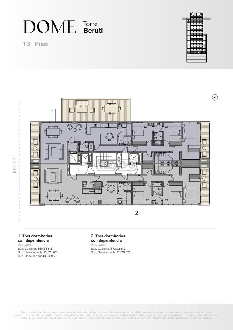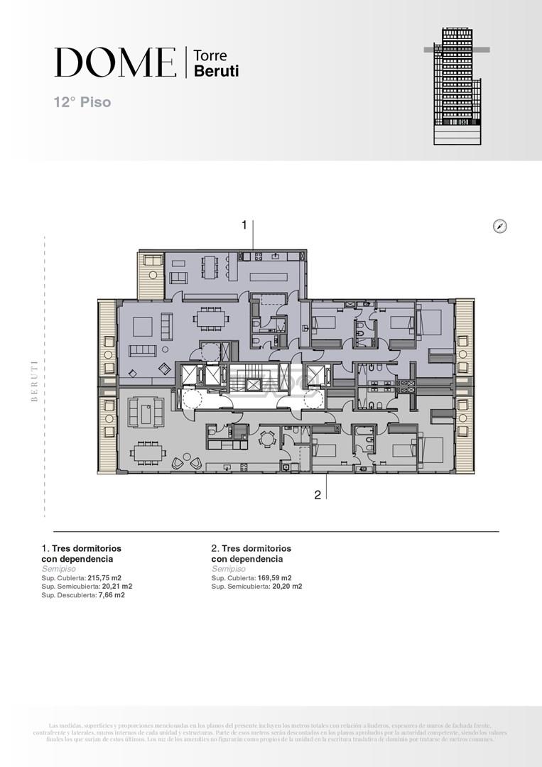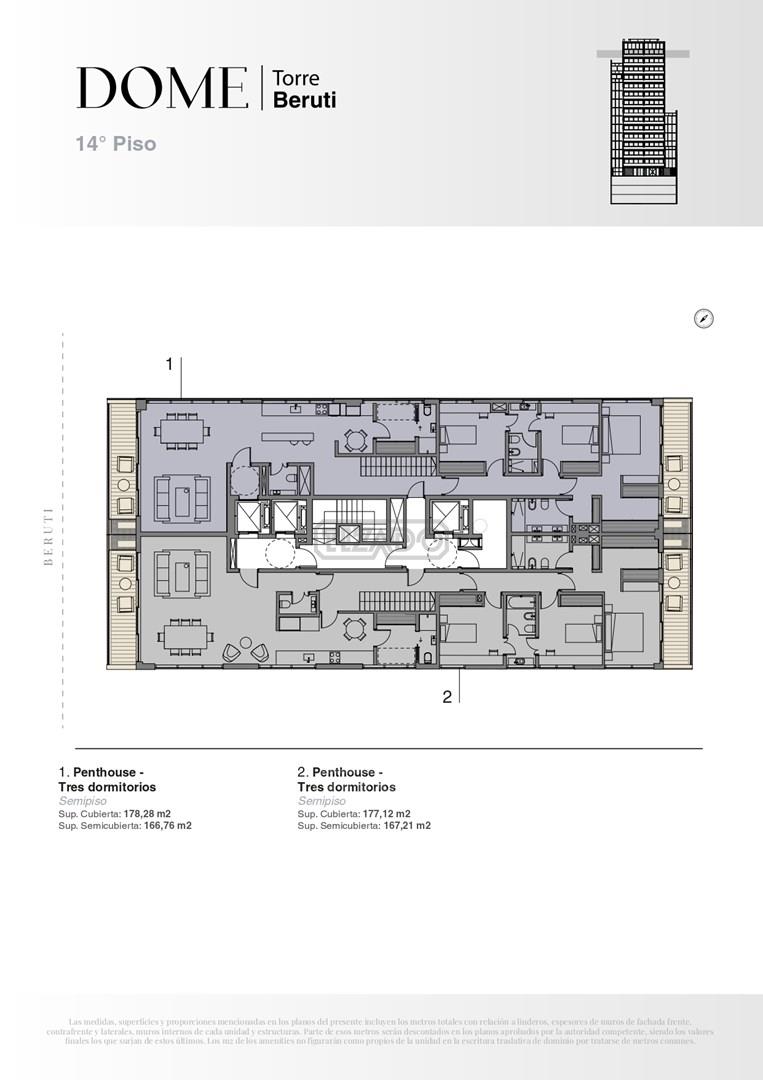 Emprendimiento premium en una torre de primera categoría que eleva el estándar de cómo vivir en la ciudad. Ubicado en Beruti 4540 entre las calles Godoy Cruz y Fray Justo Sta. María de oro. El edificio contará con 14 niveles y unidades de 3 y 4 ambientes con y sin dependencia. Townhouses y Penthouses en dúplex.