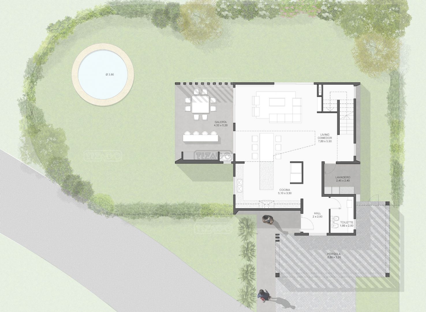 - Cochera: pergola 8,80x3,20