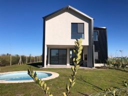 Hermosa casa en Ceibos sobre un lote en esquina de 589 metros con espectacular ubicación del barrio y orientación de sol. Se trata de una hermosa casa de construcción en seco (Steel frame), concepto que propone una vida sustentable, ahorro de energía para climatizar los ambientes y un aislamiento acústico muy importante. La casa esta desarrollada en dos plantas con muy buena iluminación en todos sus ambientes. Desde el ingreso se accede una doble circulación. Por un lado se accede a la cocina con mesa da en L e isla que integra al living comedor. Desde el otro sentido, se aprecia un toillete de recepción y el ingreso directo al living. Este ambiente principal es muy luminoso y posee salida a la galería semicubierta donde está ubicada la parrilla y bacha y sobre el jardín se desplaza una piscina recubierta con venecitas, redonda y escalonada que permite estar sentado dentro del agua disfrutando la perfecta ubicación del sol durante todo el dia. Hacia el lado opuesto de la casa se encuentra un lavadero pensado de modo semicubierto, que permite llegar de la calle, despojar bicicletas y otros bultos, y acceder directamente al ambiente principal. La escalera es de doble altura y comunica al primer piso donde se desplazan dos habitaciones con vista al lago de Ceibos, un baño completo y la suite principal de dimensiones generosas, con vestidor. En planta baja la casa posee losa radiante sectorizada, y Aire acondicionado central; en planta alta ; todas las habitaciones poseen AA frio -calor. Los pisos son simil madera en PVC, super térmicos y duraderos. La casa se destaca tanto por su diseño como por la calidad constructiva que la convierte en una sólida propuesta, de excelente calidad en un lote impecable por ubicación y orientación. Es una propuesta imperdible. Llamános para visitarla juntos. Coordinar visita Tizado Puertos