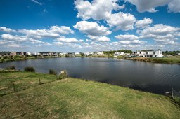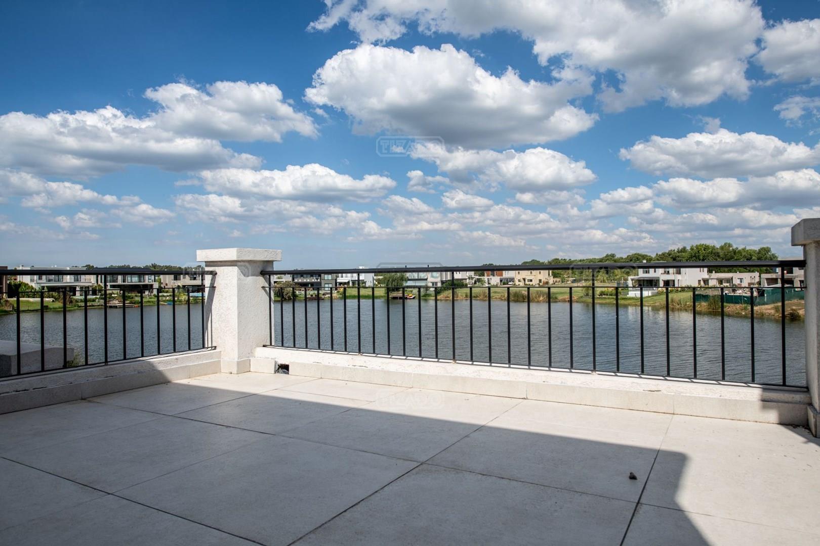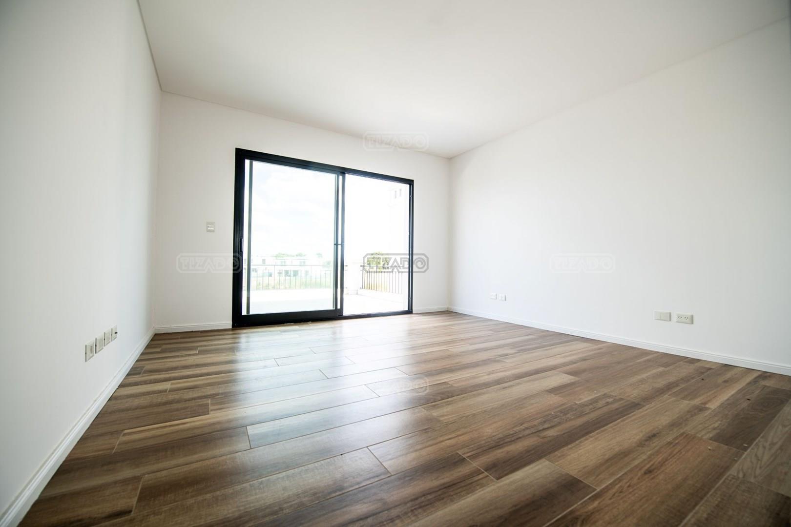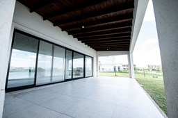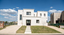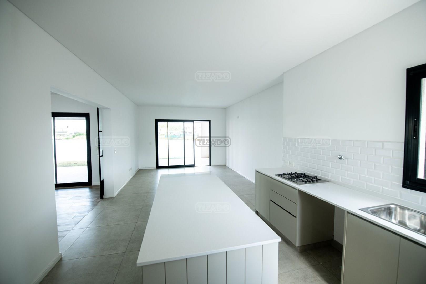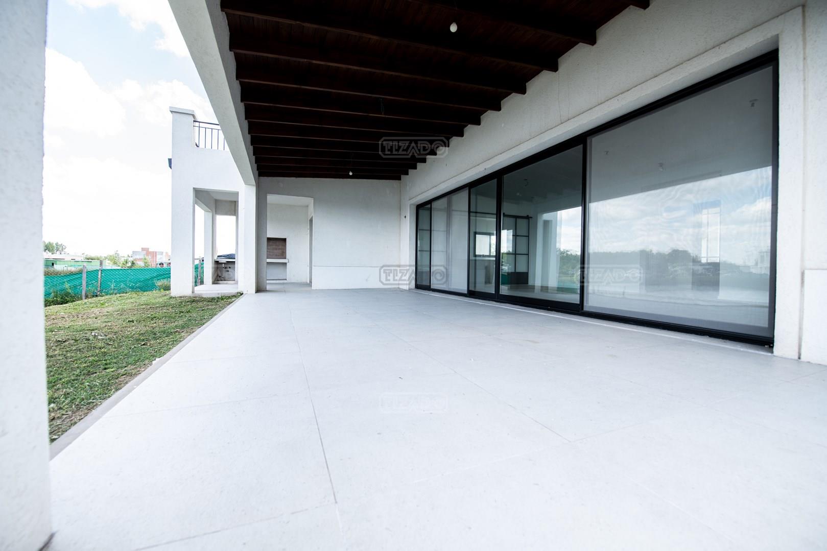 Hermosa casa desarrollada en dos plantas, con un excelente diseño moderno, práctica y luminosa, con fondo a laguna Muy buenas vistas desde todos los ambientes. Amplio hall de recepción. Toilette. Living con hogar separado de la cocina comedor por una mampara corrediza con marco de hierro y grandes ventanas corredizas a la galería La cocina se presenta con muebles bajo y sobre mesada de excelente calidad En el exterior una amplia galería que a través de sus ventanales se integra al living, además otra galería independiente en la zona de la parrilla, que comunica a la cocina comedor Completan el área de servicio, el lavadero con salida al exterior y habitación de servicio con placard y baño completo En la planta alta se encuentran dos amplios dormitorios con placares de piso a techo, totalmente equipados con cajoneras y espacios de guardado Un baño de generosas dimensiones que da servicio a los cuartos Completa la distribución de planta alta, un amplio playroom o escritorio con doble puerta de ingreso Integran la suite, un ante baño y baño completo, vestidor y terraza con hermosas vistas que invitan a disfrutar del paisaje. Detalle de terminacion: *Pisos de porcelanato *Preinstalación de AA en todos los ambientes, calefacción por losa radiante con caldera dual *Carpintería de aluminio pre pintado en negro con DVH *Sanitarios y grifería de primera calidad *Todas las puertas de interior con molduras *Mesada y muebles de cocina también de primera calidad SANTA ANA * Localidad: Villa Nueva * Hectáreas totales: 70 ha * Cantidad unidades: 381 * Superficie promedio por unidad: 600 m² * Atributos: lagunas; pilares de servicios; redes subterráneas de electricidad, agua, cloaca y gas