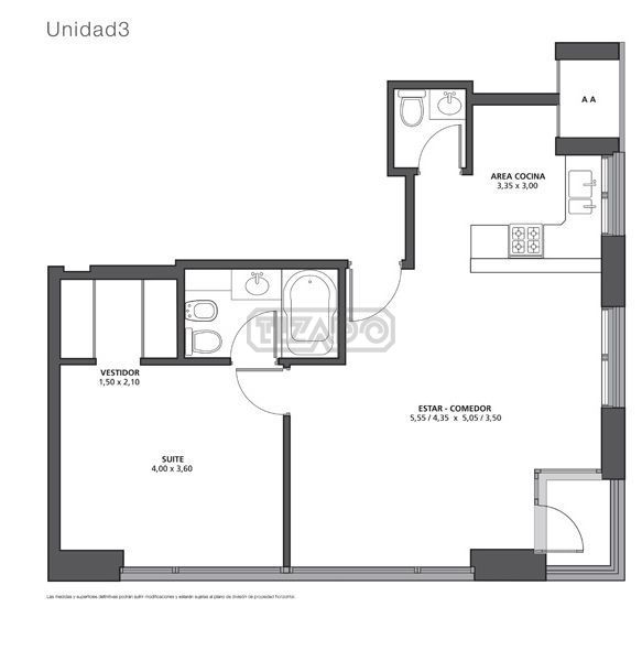 - Dormitorio: 4.00 x 3.60 suite c/vest