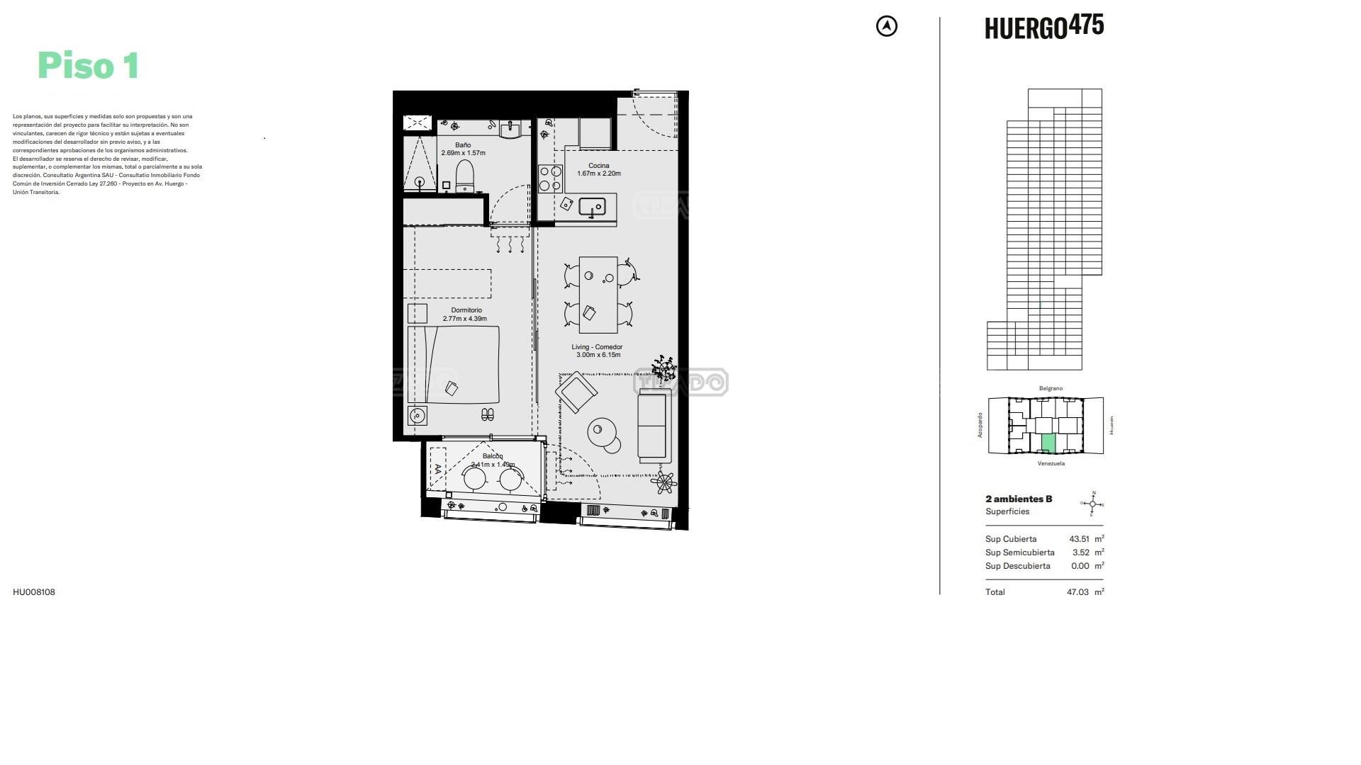 Frente al Paseo del Bajo y con vistas únicas de Buenos Aires, rodeado de los mejores centros de estudio en un radio de 2 kilómetros. A diez cuadras de la Reserva Ecológica de Puerto Madero, a 750 metros del Puente de la Mujer. Nace HUERGO 475, un emprendimiento de 38 pisos, con 3 niveles de subsuelo, diseñada por el estudio Adamo Faiden, responde con su morfología a las características del entorno. Mediante una serie de desplazamientos horizontales, logra capturar las mejores vistas del río y la ciudad. El proyecto asume el desafío que proponen los nuevos modos de habitar los espacios. Con ámbitos destinados al encuentro social, y por su cercanía a puntos relevantes de Buenos Aires, refuerza el vínculo de sus habitantes dentro y fuera del edificio. 1500 m 2 de espacios comunes totalmente equipados distribuidos en 5 sectores: Gimnasio Sala de yoga y relajación, Pista de running, Espacios para fitness. Equipos de última generación, circuito de running exterior. Biblioteca Sala de estudio Co-working. Salas adaptables a modalidades de trabajo grupal, o individual. Biblioteca. Community: Espacio en doble altura para el encuentro de la comunidad Huergo. Cocina comunitaria conectada al laundry, playroom y SUM en doble altura. Terraza. Sala de juegos. Rooftop: En la cima del confort. Acceder por jardines a una piscina climatizada con cubierta vidriada retráctil. Terraza con parrillas exteriores y miradores para descubrir la postal perfecta de la ciudad y el río desde el piso 38. 2800 m2 de parque. Gastronomía, Pasaje de arte, Lugar de encuentro. Parque Central. Acceso concebido como galería de arte. Café, bar, resto. Vegetación, espejo de agua, biodiversidad Unidades: Studios, lofts, departamentos 1, 2 y 3 ambientes Cuatro orientaciones que proponen vistas diferentes e impactantes. El río y la naturaleza de la reserva, o la ciudad y sus rascacielos. Todas las unidades con balcón y tres niveles de bauleras y cocheras para autos y motos. Espacio para bicicletas. Los planos, fotos, ilustraciones, renders, superficies, dimensiones y medidas de este folleto son propuestas indicativas y una representación del proyecto para facilitar su interpretación. No son vinculantes, carecen de rigor técnico y son pasibles de eventuales modificaciones del desarrollador sin previo aviso, quien se reserva el derecho de revisar, modificar, complementar o retirar las mismas, total o parcialmente a su sola discreción; y están sujetas a la aprobación de los órganos administrativos correspondientes. Las amenidades, facilidades y atracciones de este folleto están sujetas a cambios del desarrollador sin previo aviso. La información inserta en estos folletos se considera confiable, pero no está garantizada y debe ser verificada de forma independiente.