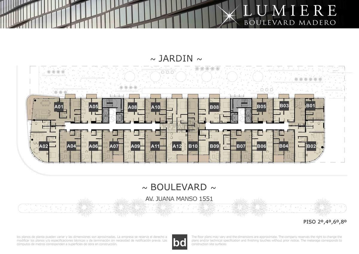 Muy lindo departamento de 2 ambientes A ESTRENAR en el edificio Lumiere Boulevard!!!!!!, un exclusivo edificio que se ubica en la parte central del dique 2, sobre el Boulevard Juana Manso, esta zona es la mas consolidada de Puerto Madero, ofrece residencias de altura, oficinas comerciales, actividades cultuales y artísticas. Lumiere Boulevard goza de una arquitectura moderna, donde abundan los amplios ventanales, logrando que todas las unidades tengan mucha luz. El edificio cuenta con una gran variedad de amenities, como gimnasio, piscina en la terraza, micro cine, sala de juegos, lounge mirador, entre otros servicios comunes. También contará con amplios locales comerciales a la calle. El departamento es pasante lo que hace que tenga mucha luz y ventilación cruzada, tiene un living comedor muy amplio con un gran ventanal con vista hacia Juana Manso, cocina integrada, toilette de recepción, gran placard de recepción, suite de gran tamaño con baño y vestidor grandes y salida al balcón con vista a los jardines.